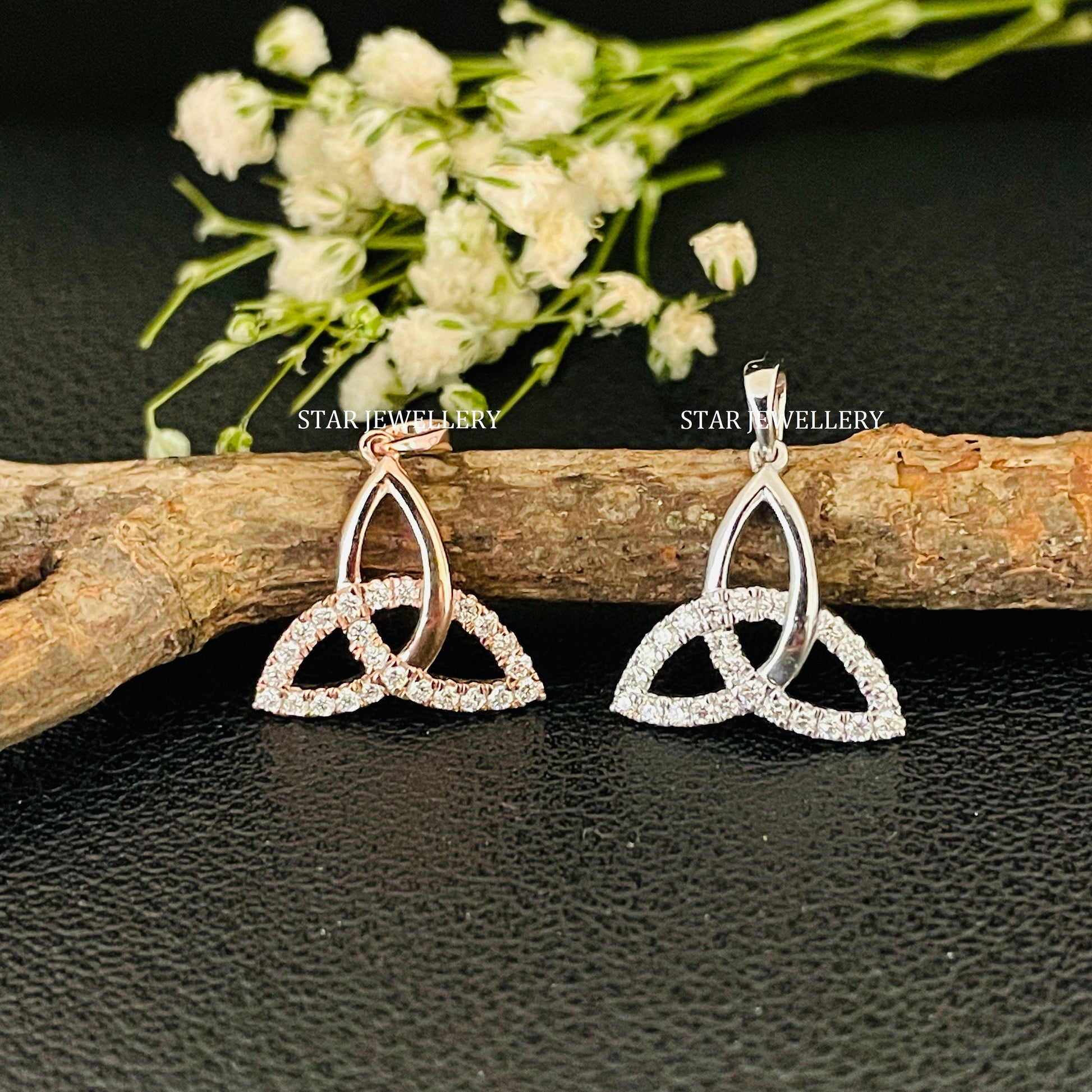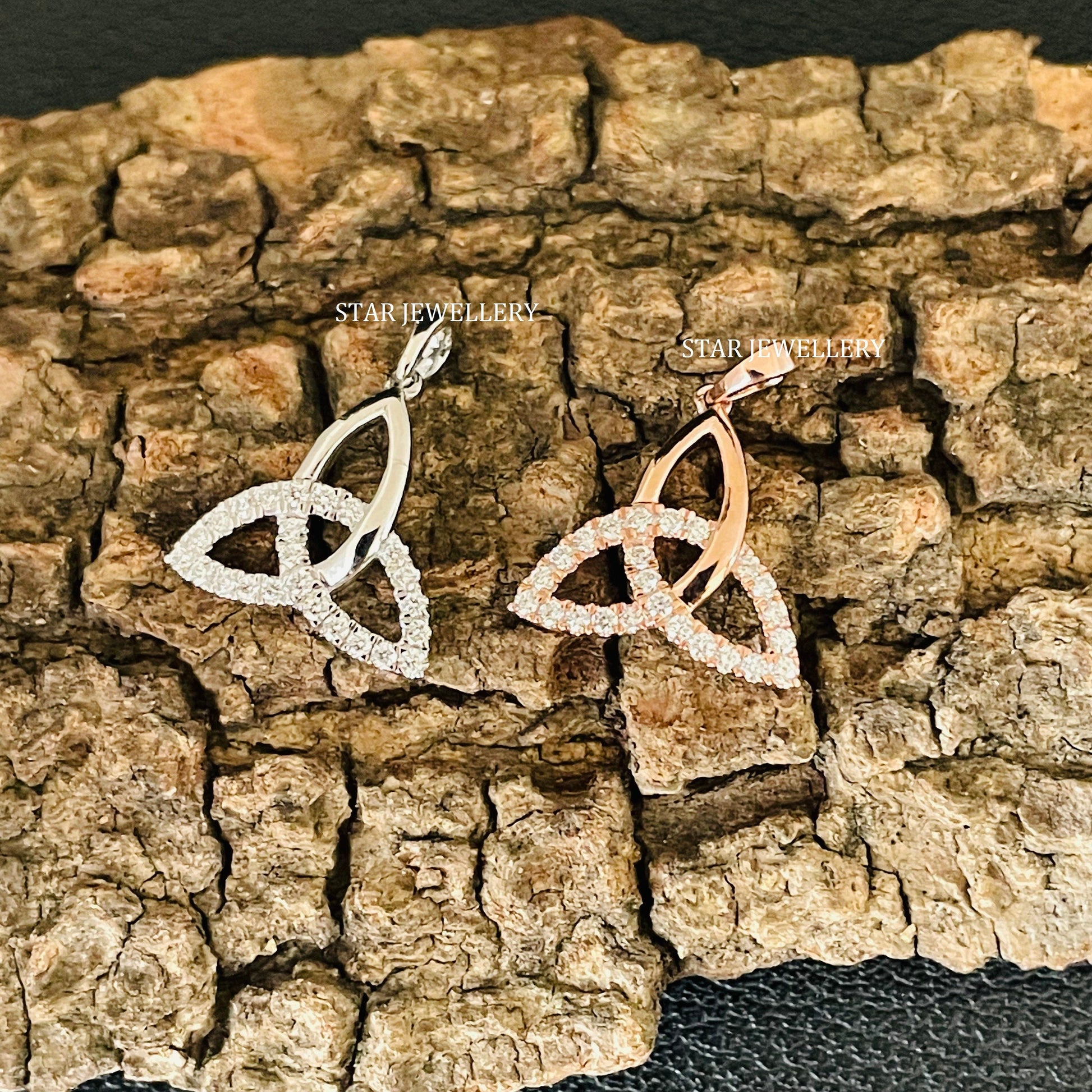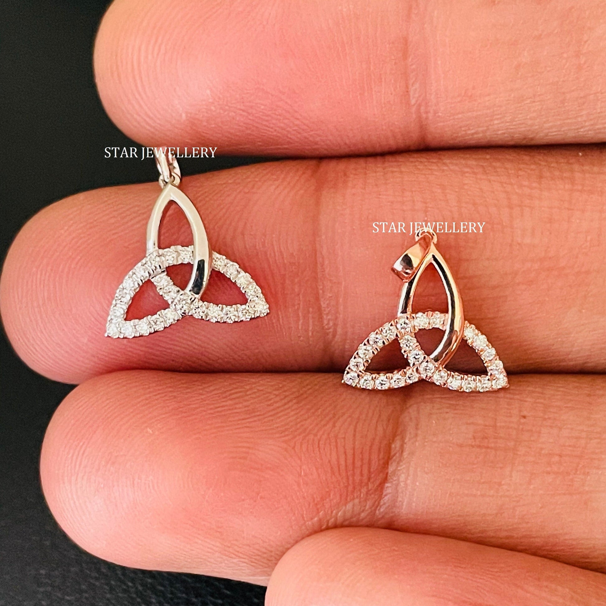 0.14 Ct Diamond Celtic-Inspired Trinity Pendant, Diamond Celtic Triangle Pendant, 14 k White Solid Gold Diamond Celtic Triangle Pendant for her Woman