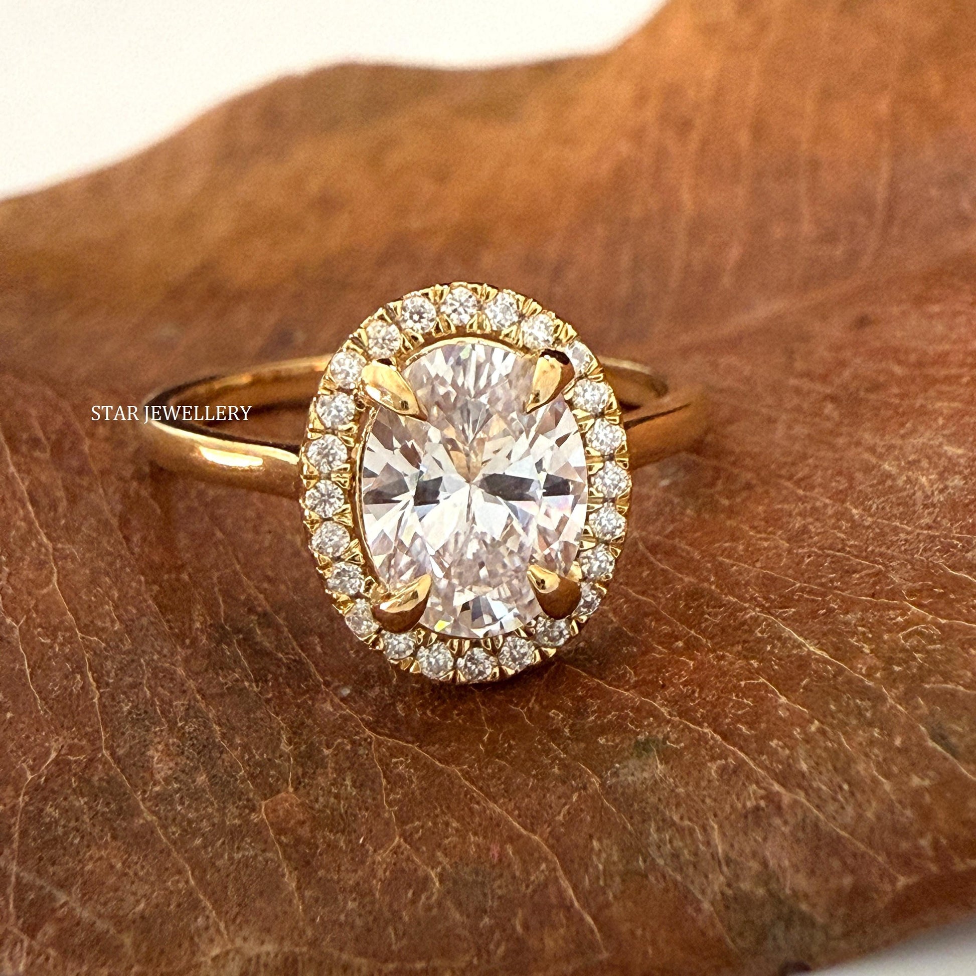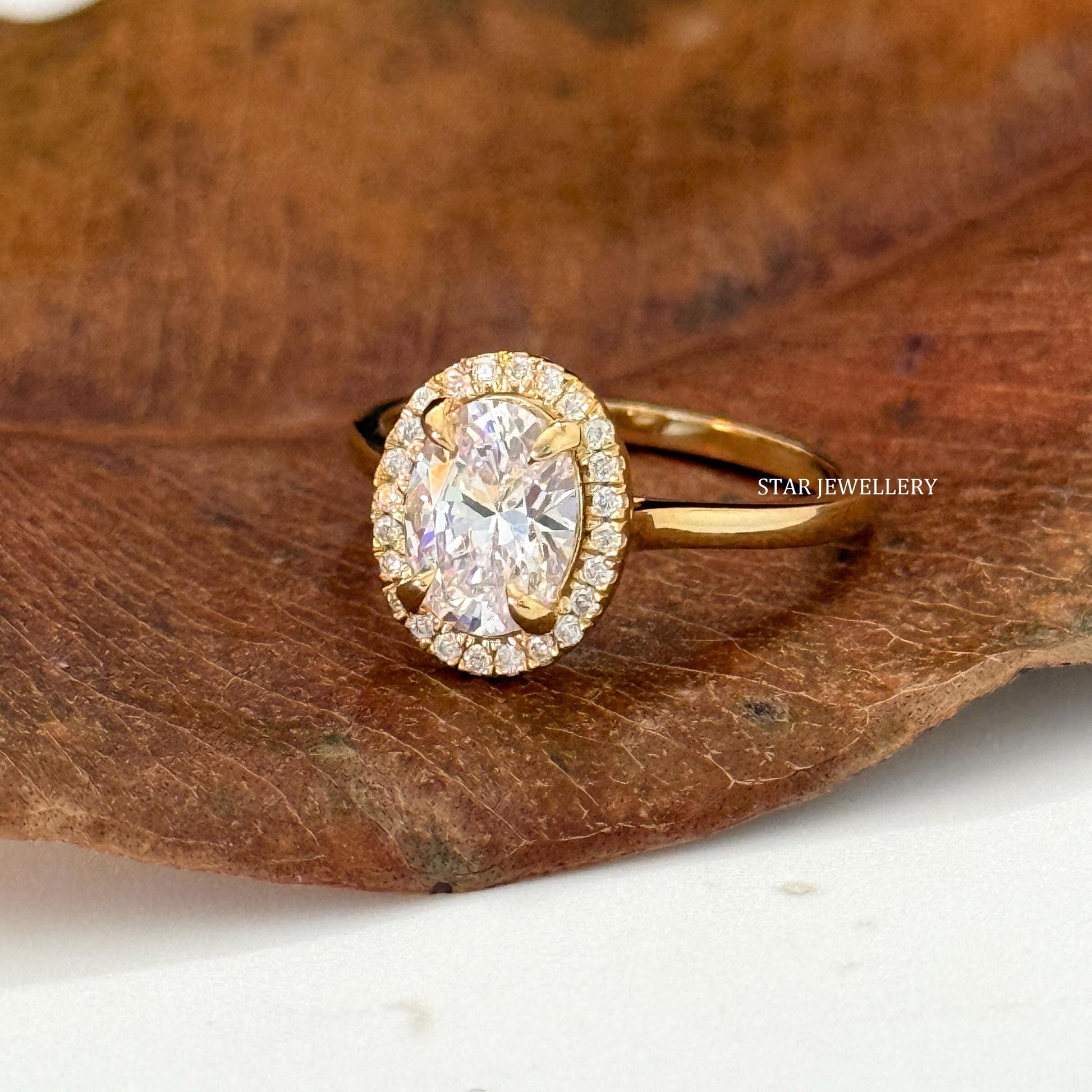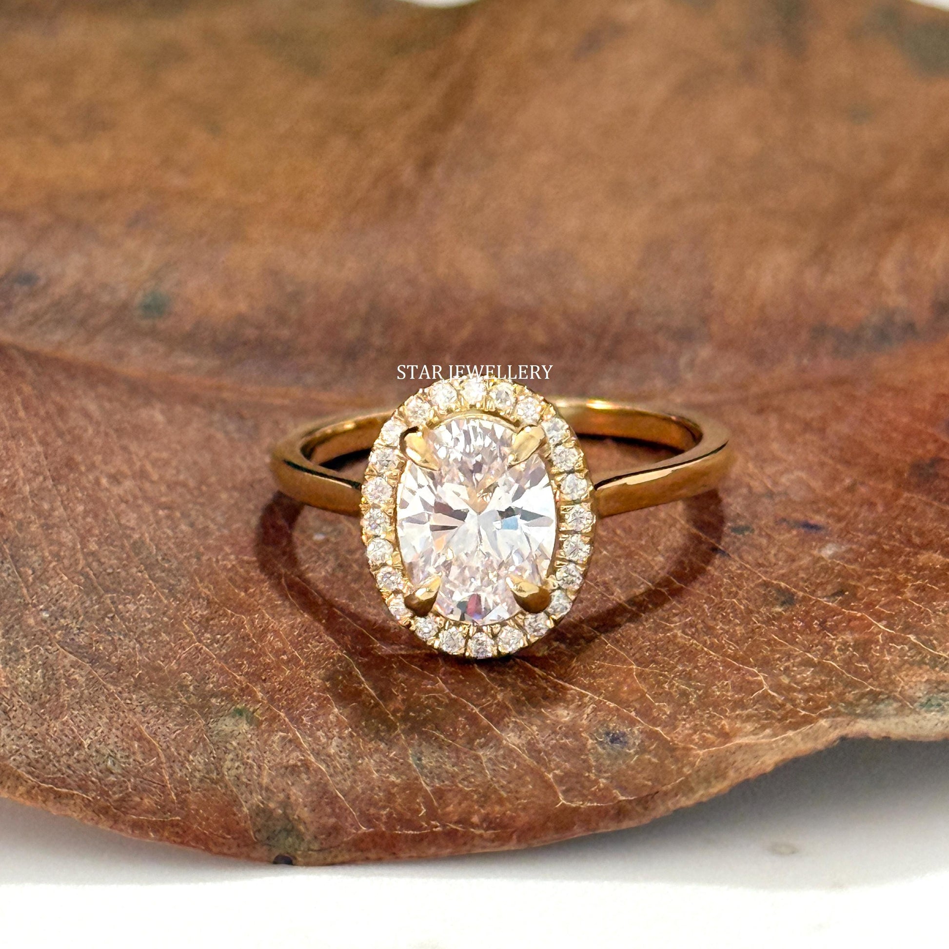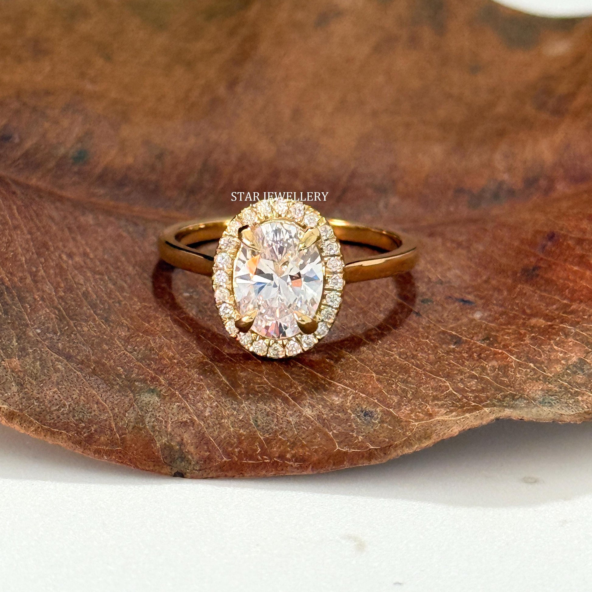 1.00 Ct - 3.00 Ct IGI Certified Oval Cut Lab Grown Diamond Engagement Ring, Halo CVD Solitaire Oval Diamond Ring for her, Oval Halo Ring