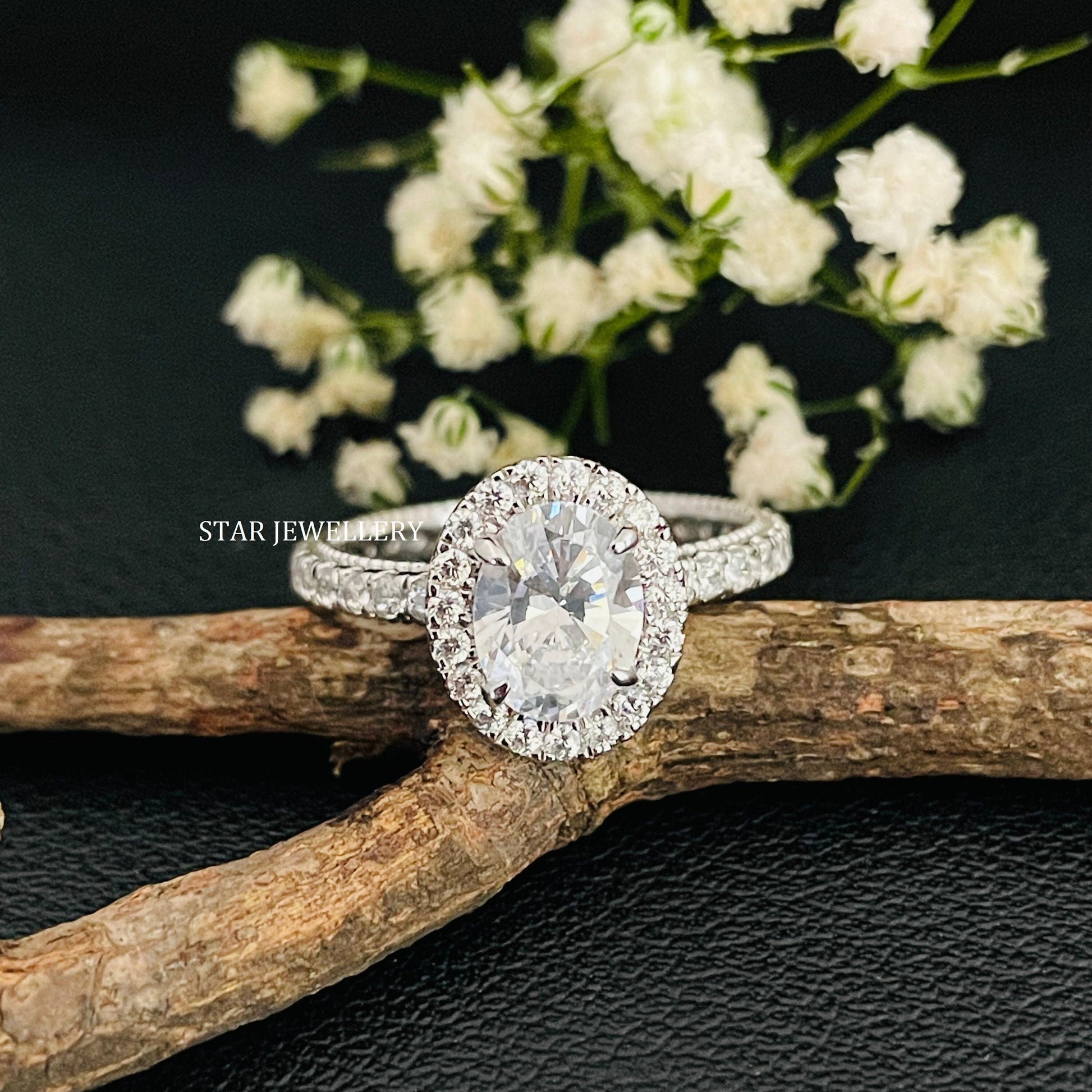 1.00 Ct IGI Certified Oval Cut White Gold lab Grown Diamond Engagement Ring, Halo CVD Solitaire Engagement Ring for her, Oval Cut Halo Ring