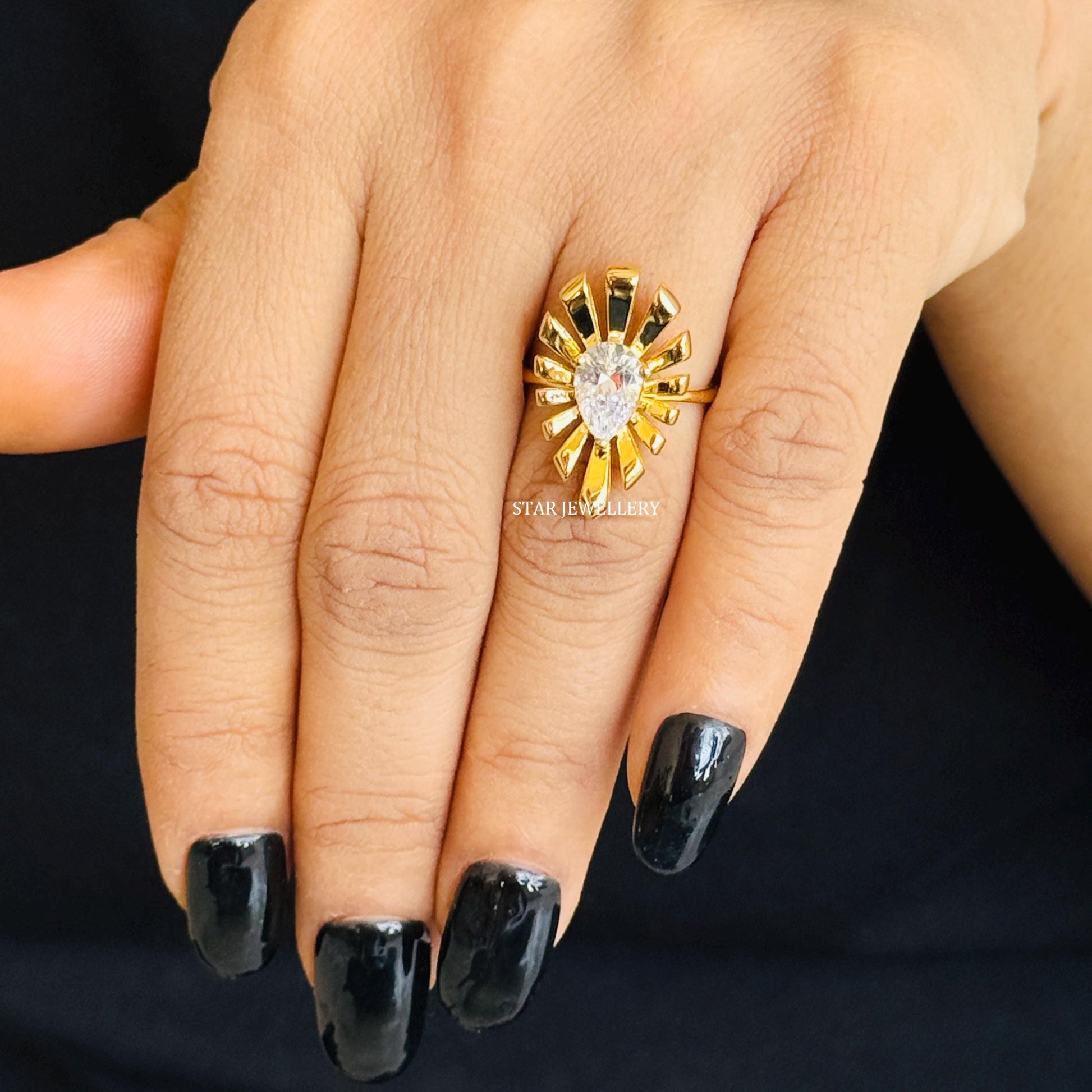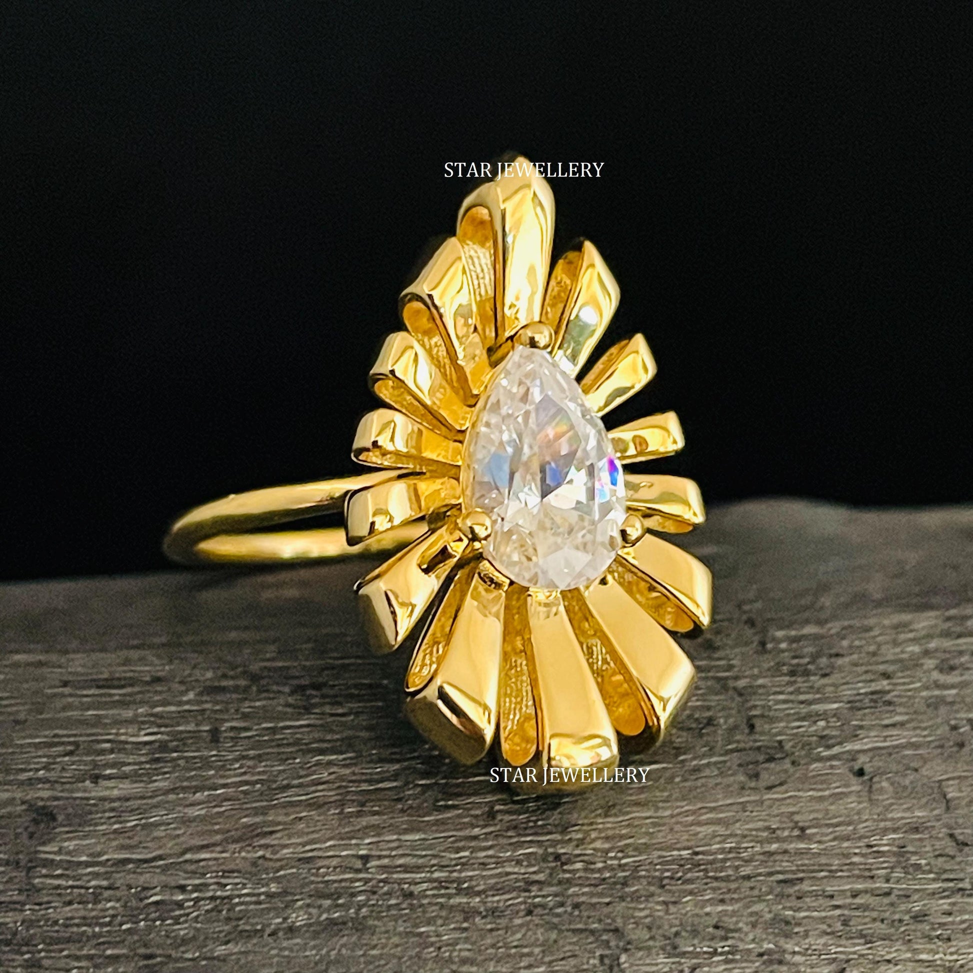 1.50 CT IGI Certified Pear Cut Lab Grown Diamond Ring, Pear Shaped Ring, Drop Diamond CVD Engagement Ring, 1.50 Ct Cvd Art Deco Style Ring.