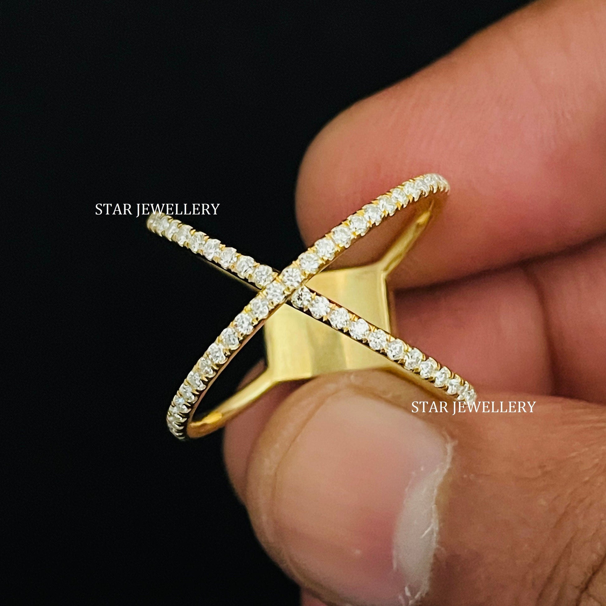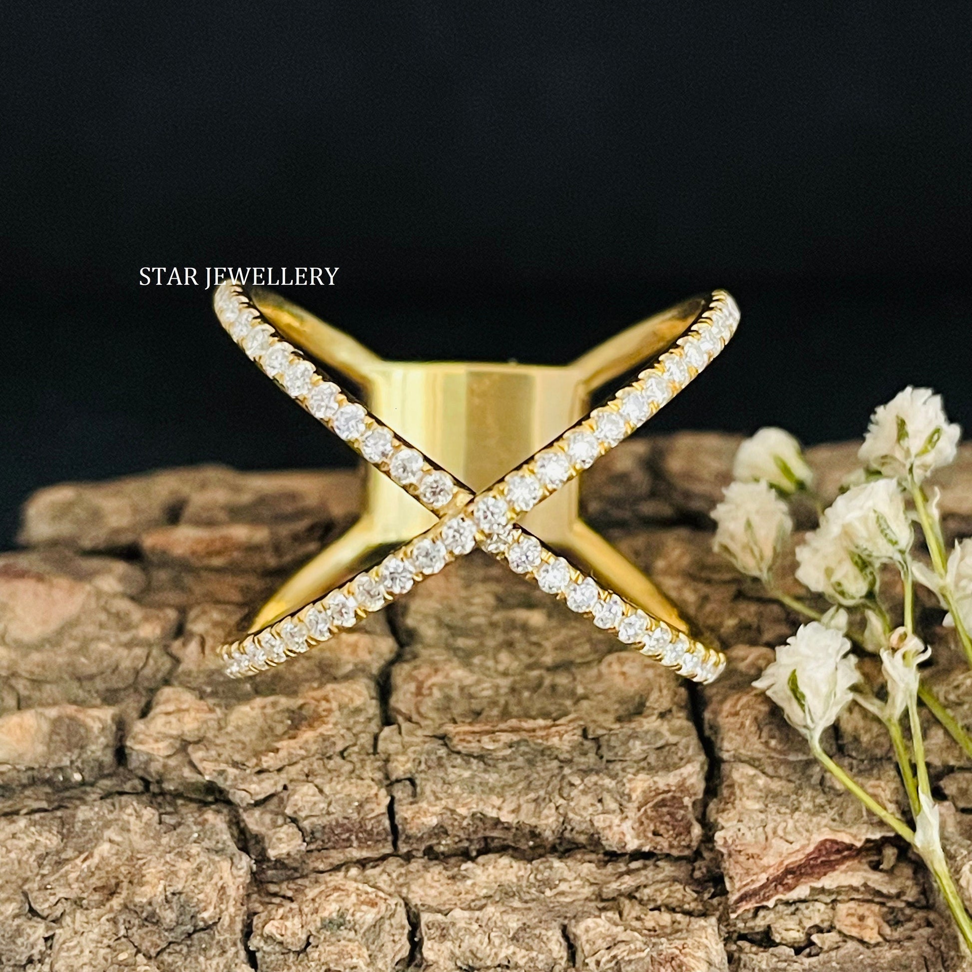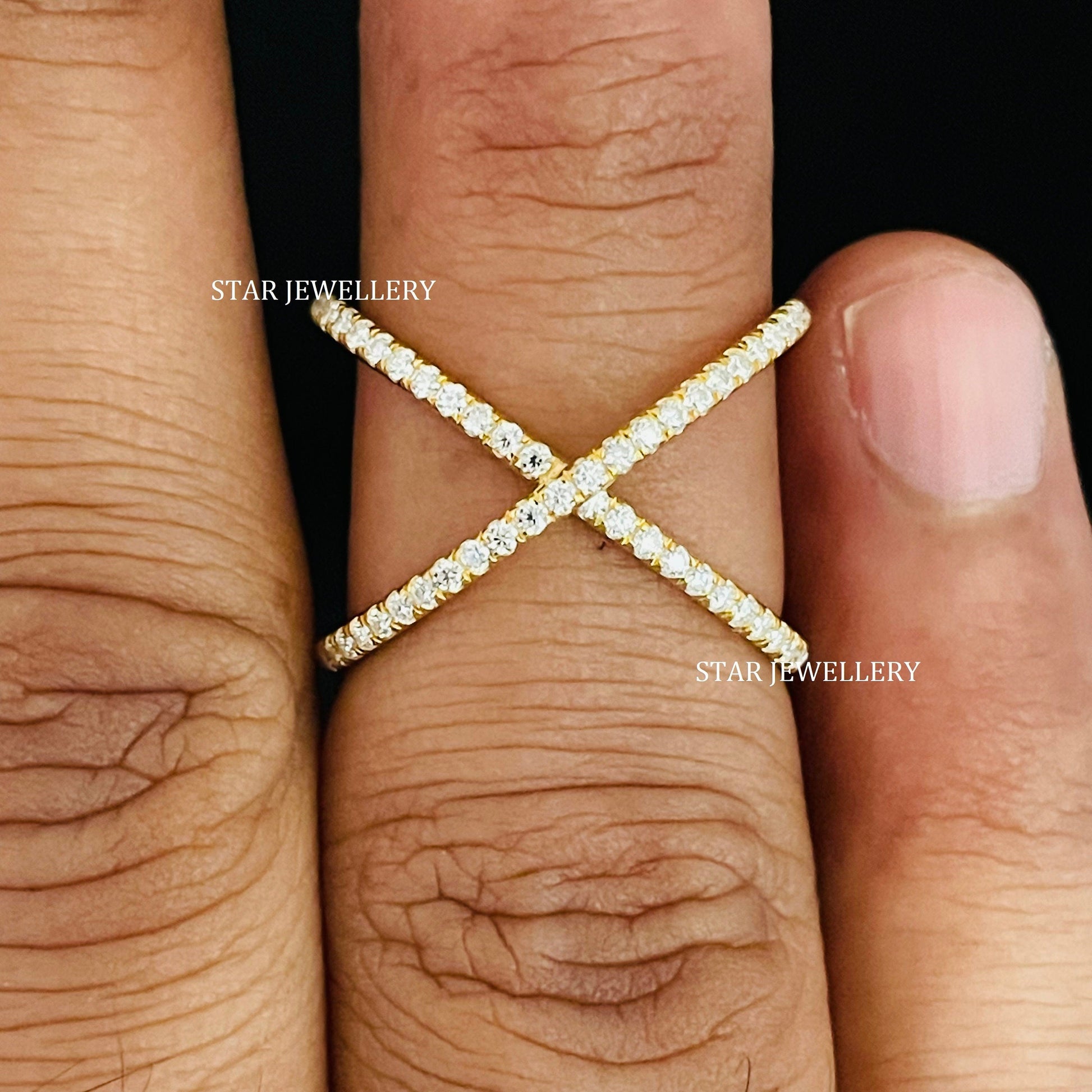 14 K Solid Gold Criss Cross Diamond Infinity Ring, LAB Diamond Criss Cross Diamond Twist Ring for her, Pave Set LAB Diamond X Ring