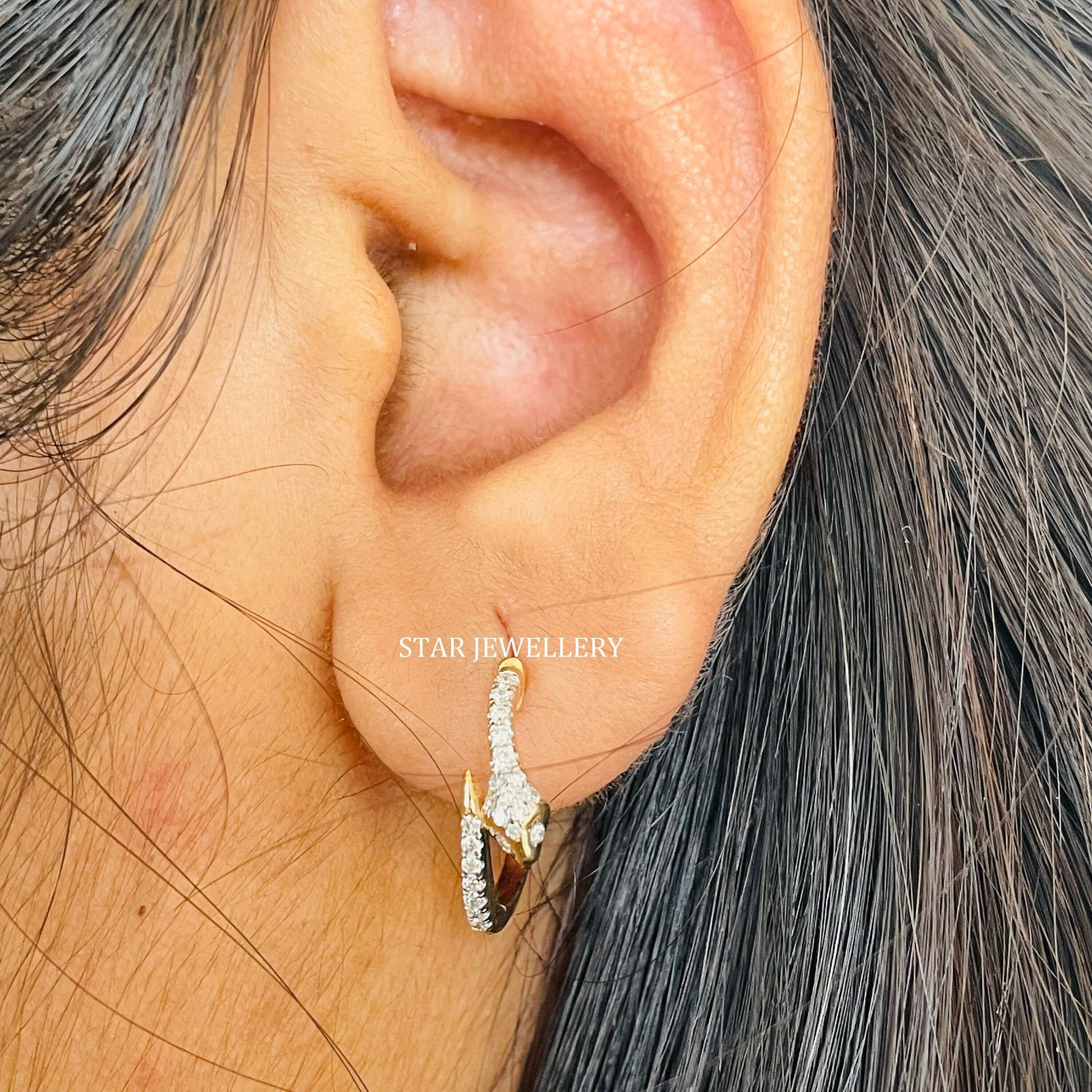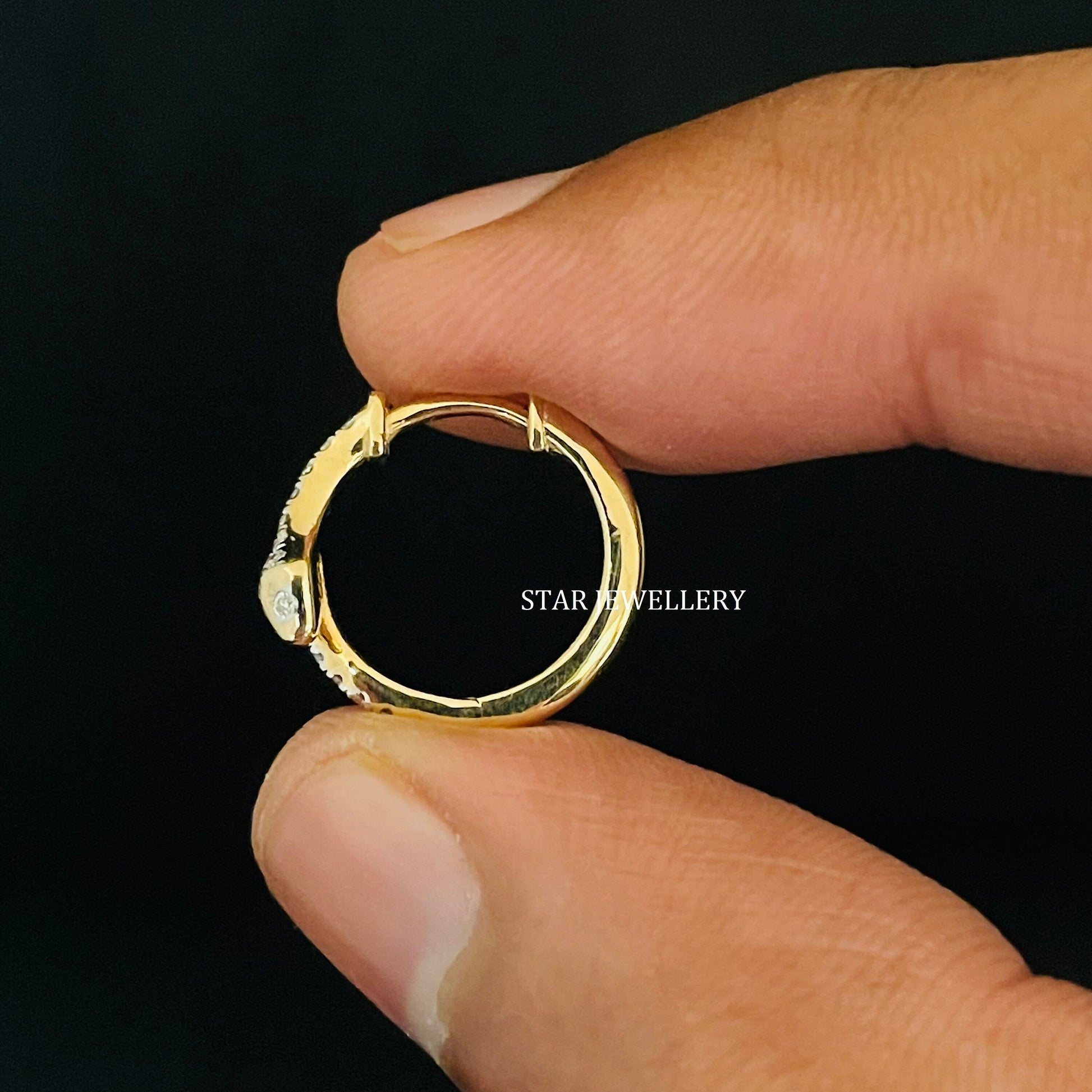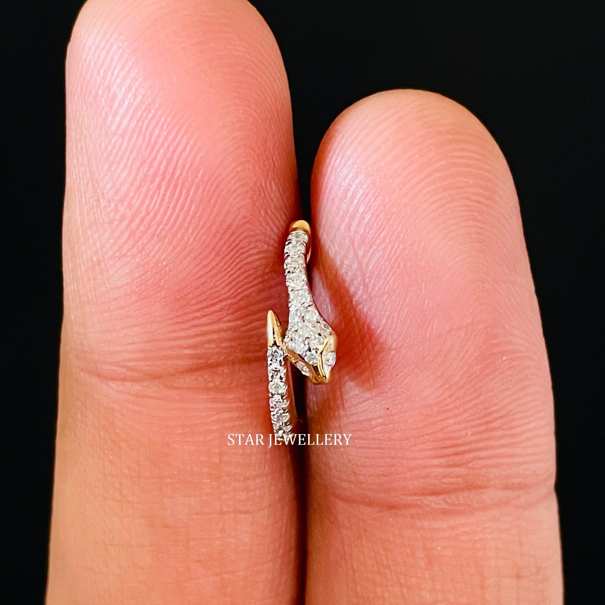 14 K Solid Gold Natural Diamond Snake Hoop Earring, 12 mm Inner Diameter Diamond Snake Hoop Earring, Diamond Serpentis Hoop Earring for her, Sold as Pair