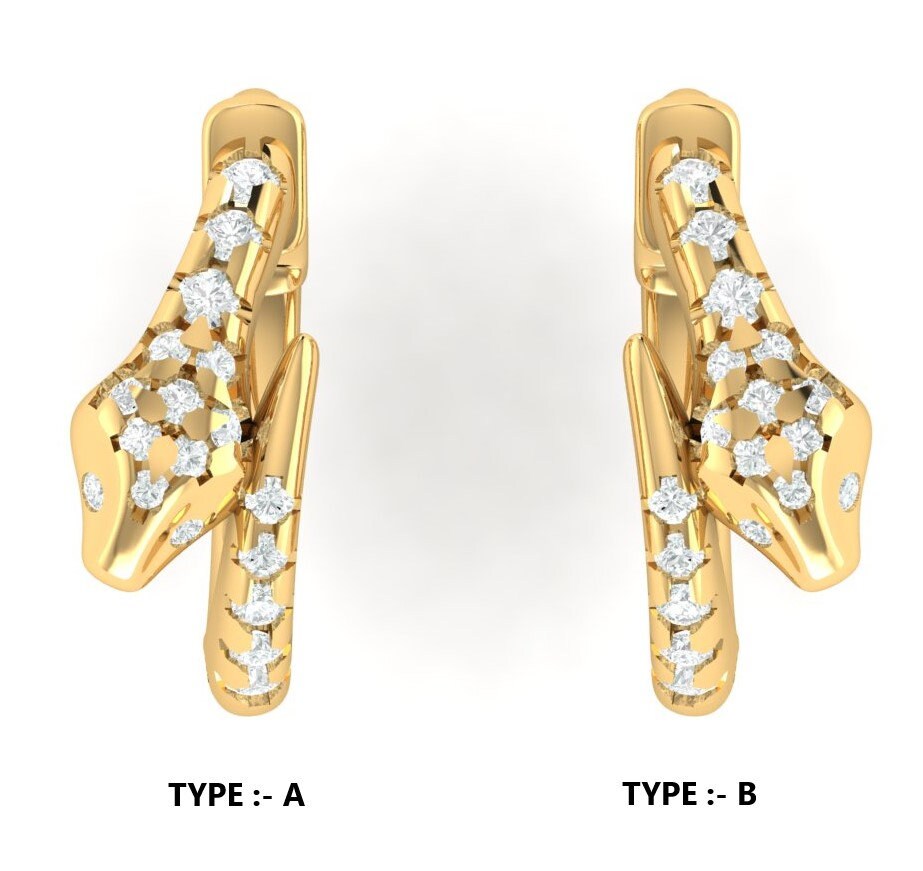 14 K Solid Gold Natural Diamond Snake Hoop Earring