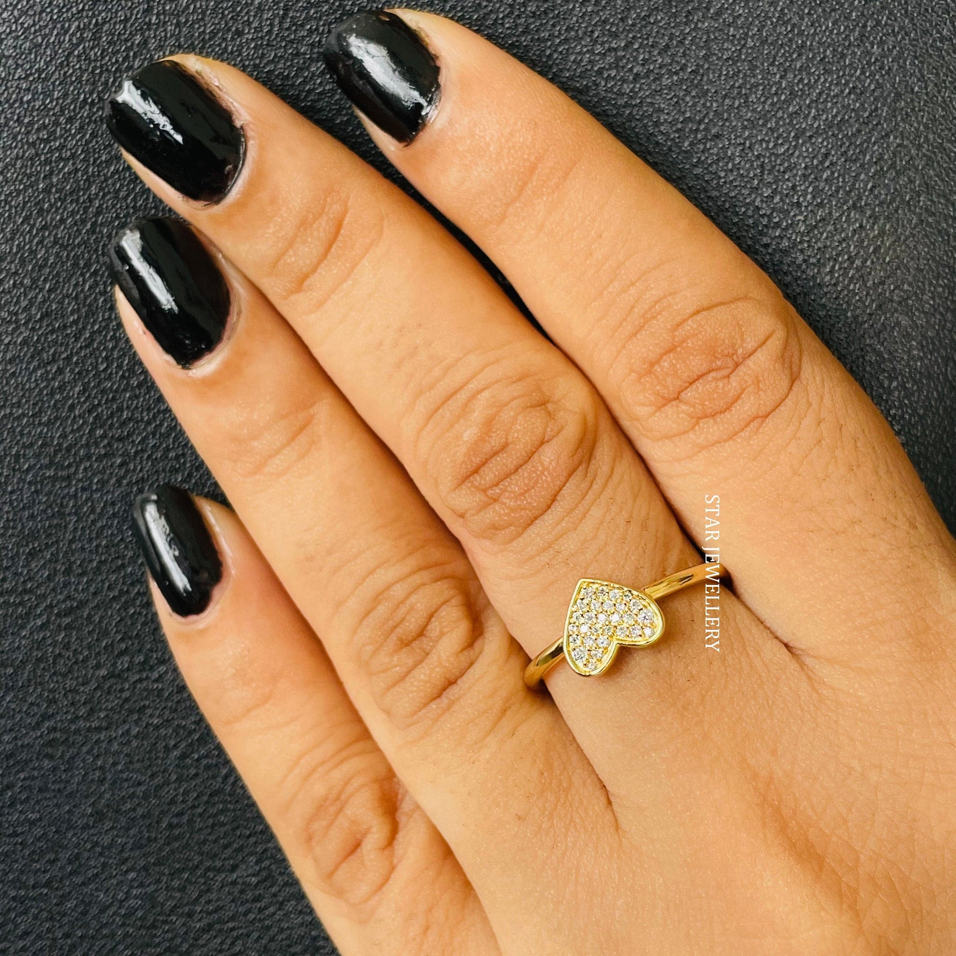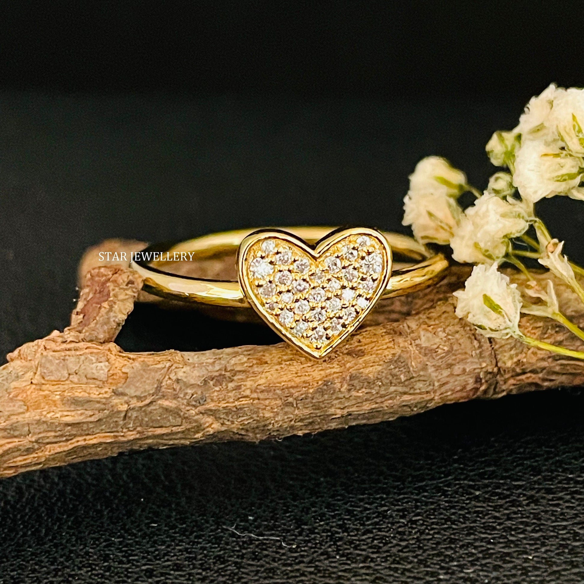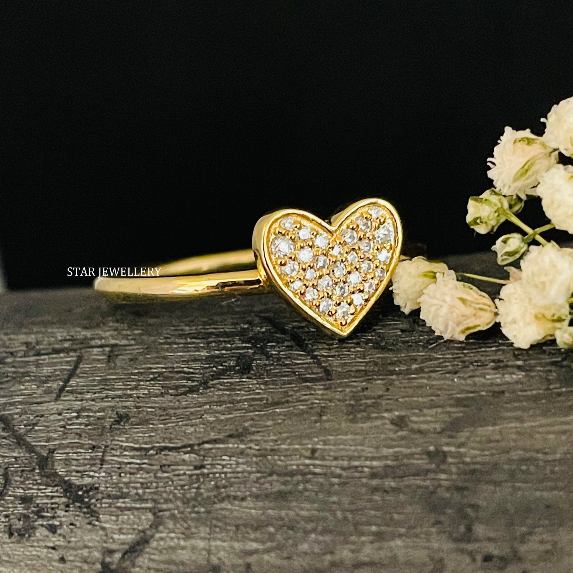 0.14 CT Solid Gold Minimalist Diamond Heart Ring, Solid GoldHeart Ring for her, Dainty Heart Ring for her, Graduation Gift