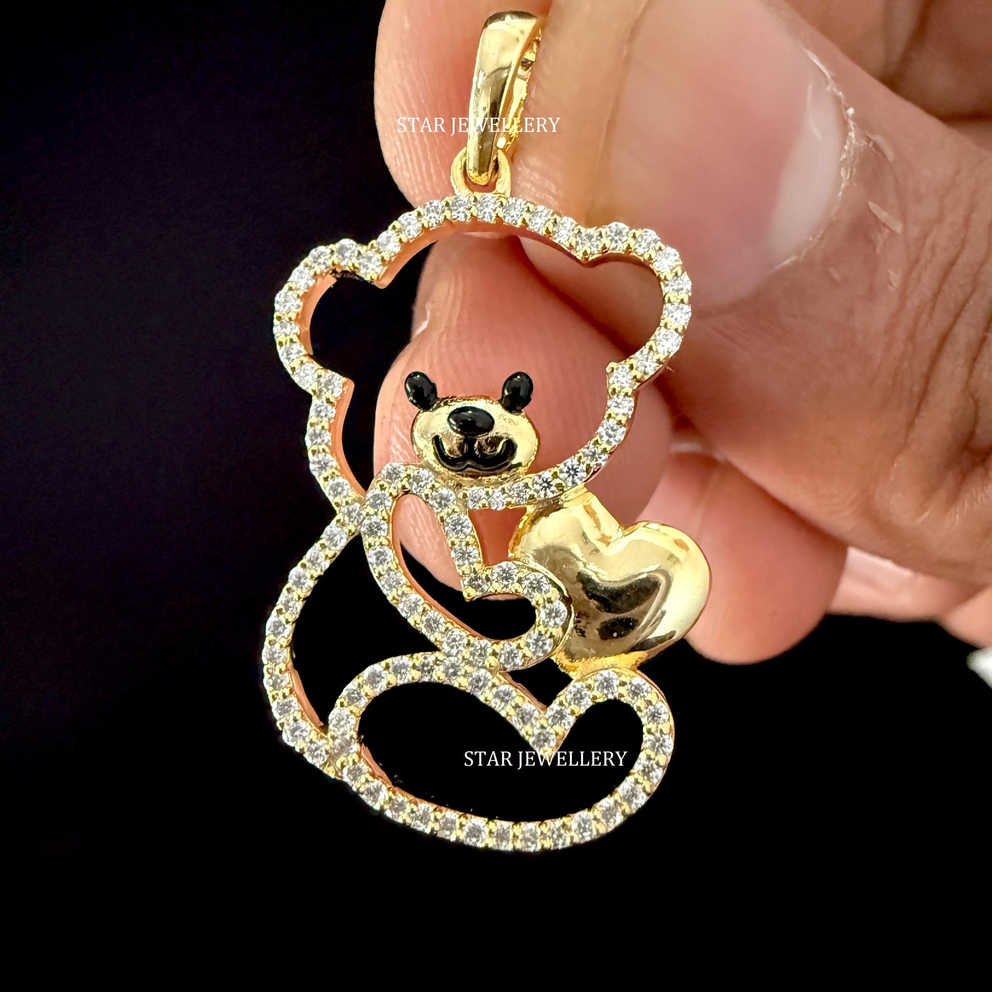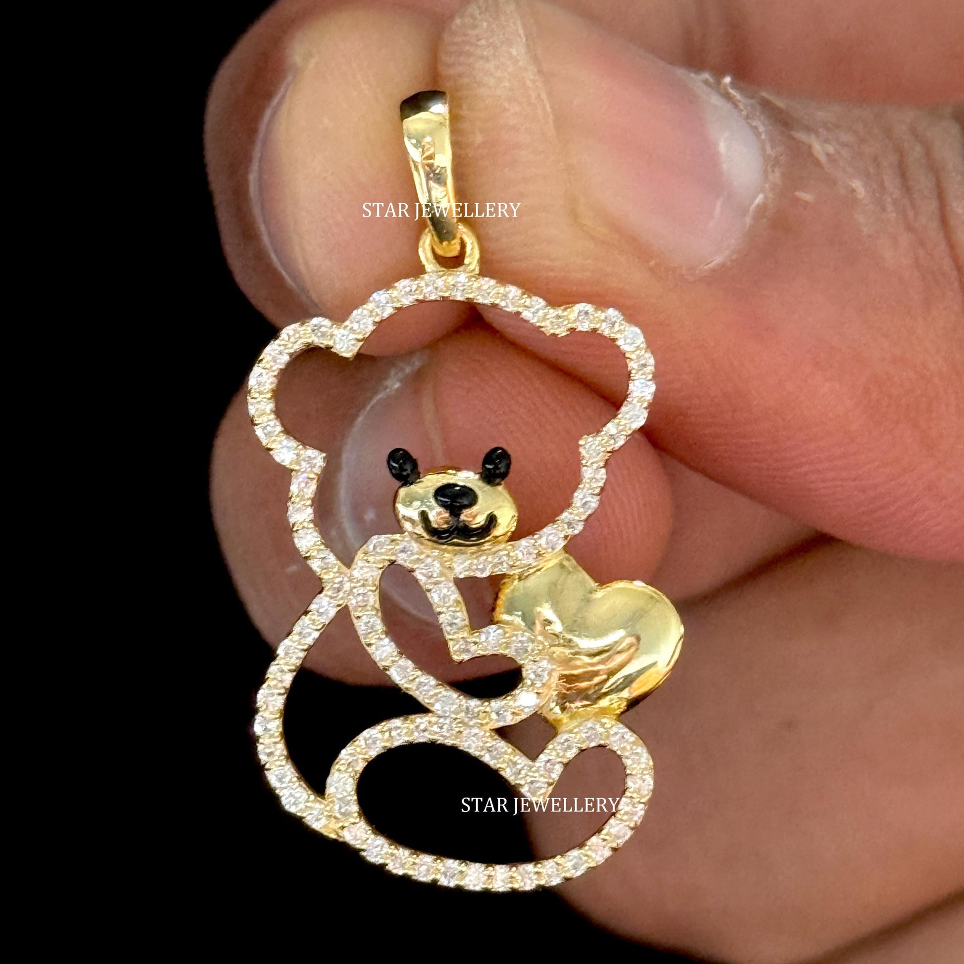 14K Gold Natural Diamond Teddy Pendant for her, Solid Gold Teddy Charm Necklace, Unisex Diamond Cartoon Lover Pendant, Cartoon Lover Pendant, Teddy Pednant with Valentine Heart, Valentine Gift Pendant for her.