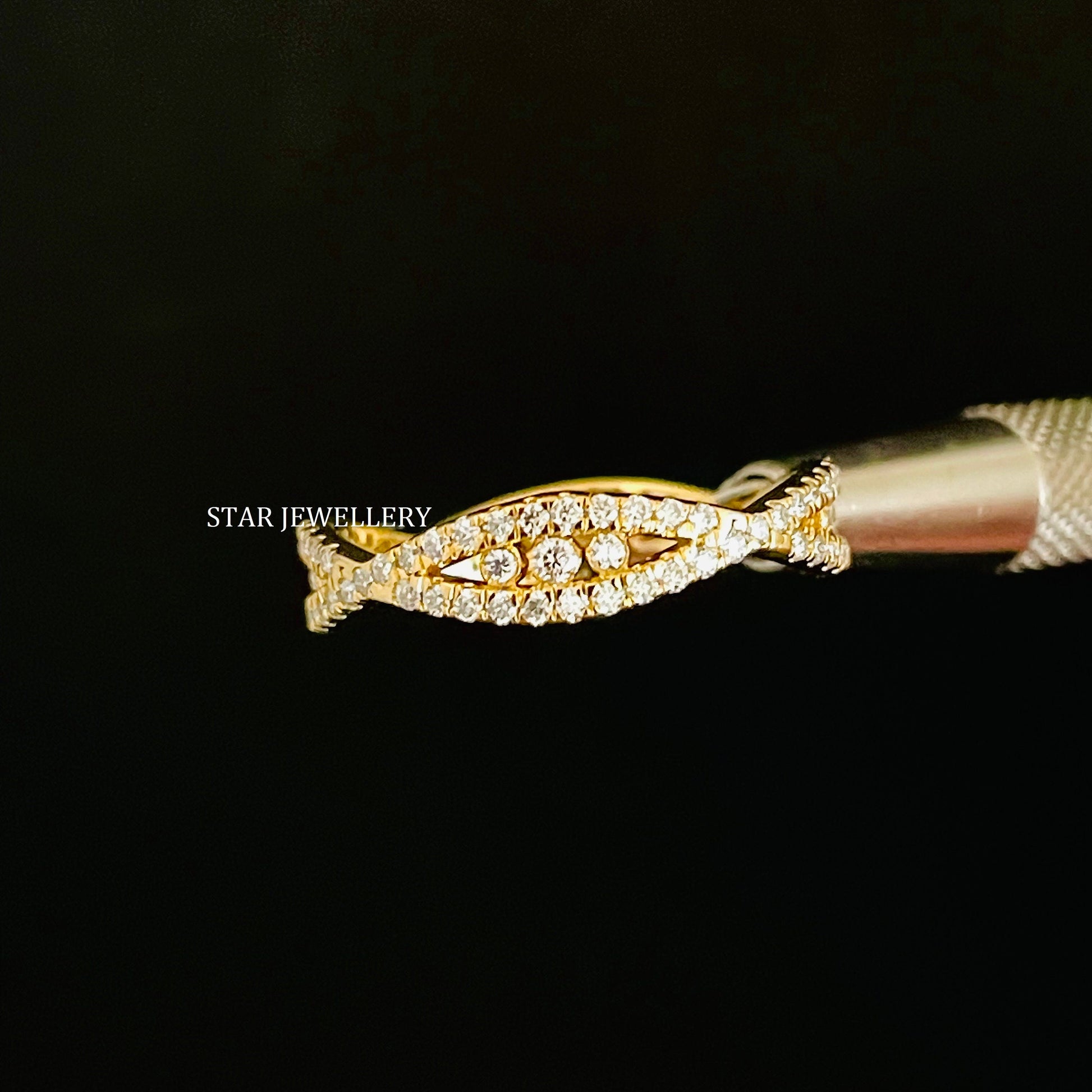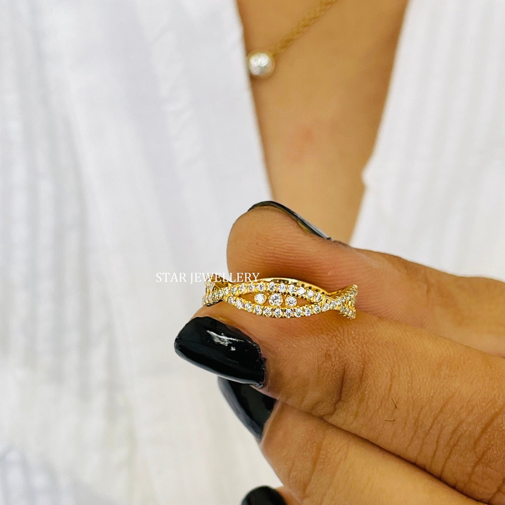 14K Gold Thin Eternity Infinity Wedding Band Ring, Diamond Twist Ring, Twist Diamond Infinity Eternity Wedding Ring, Rose Gold Infinity Ring