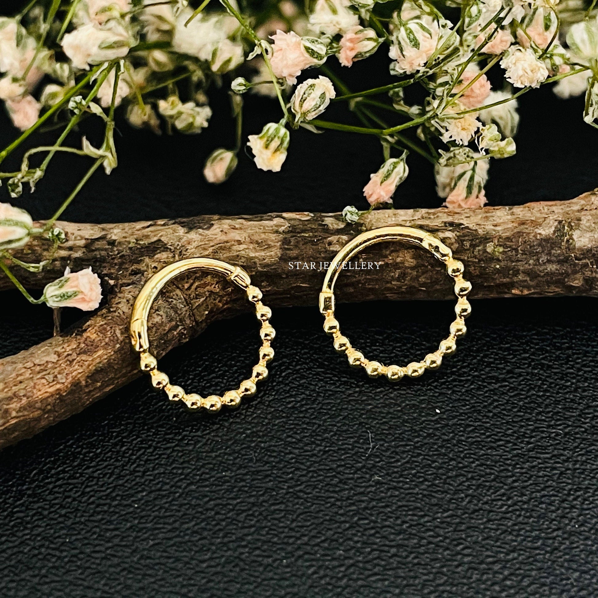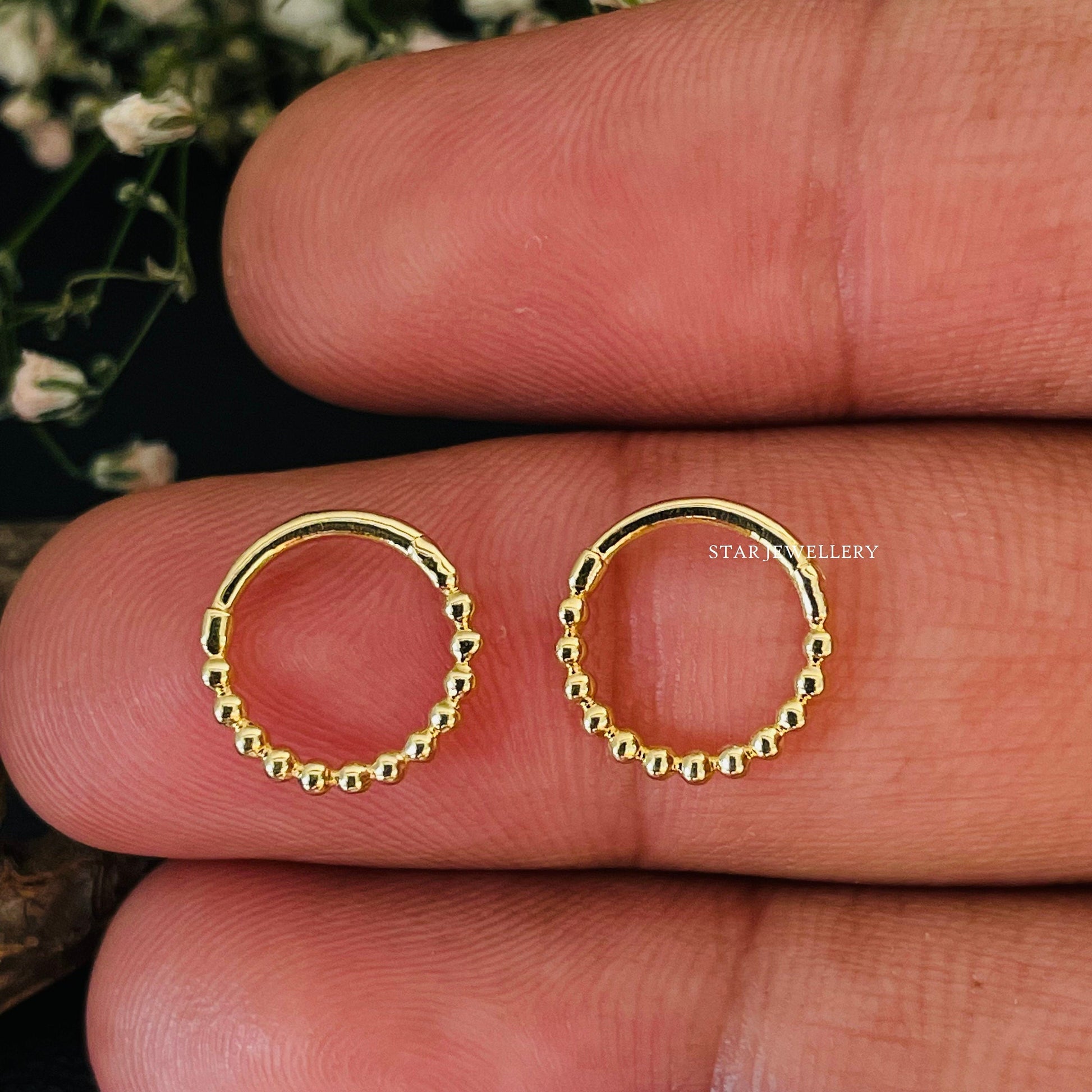 14K Solid Gold Bead Daith Clicker, Solid Gold Bead Septum Nose Ring, Solid Gold Septum Jewelry, Clicker Daith Ring, Helix Daith Piercing