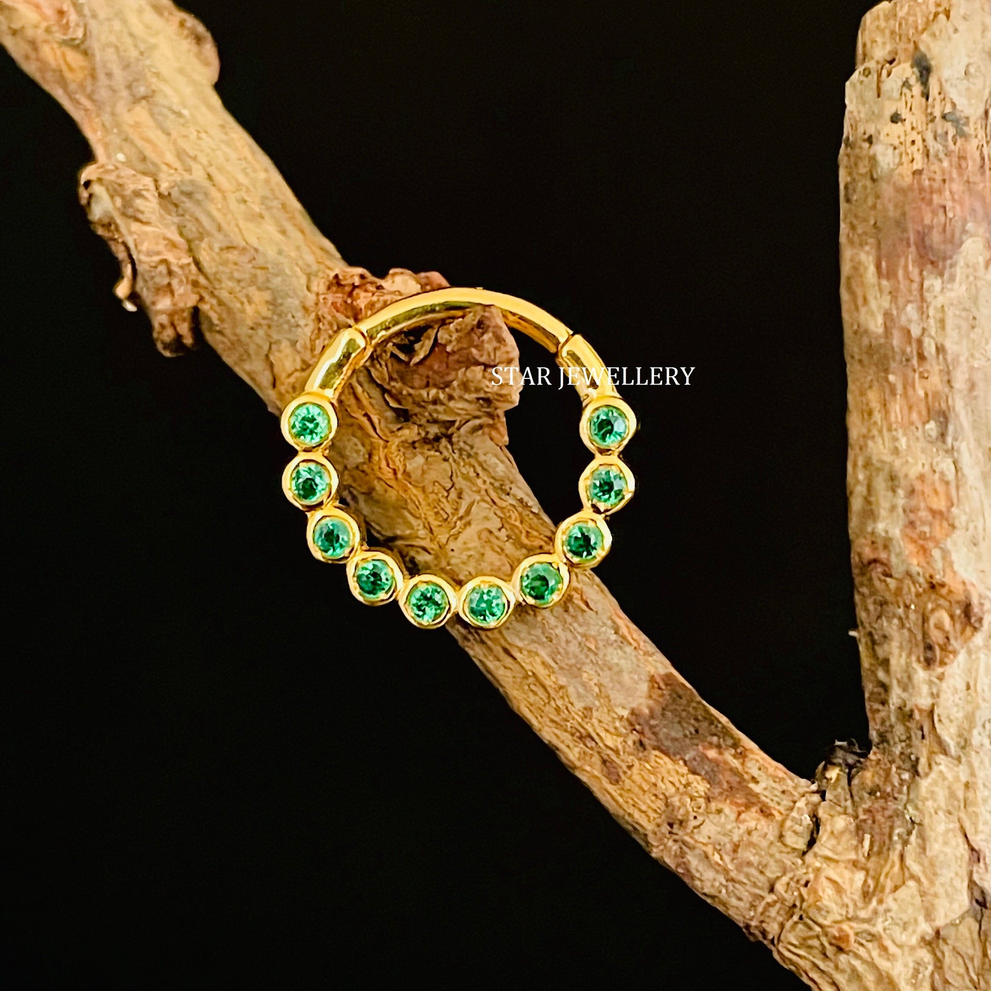 14K Solid Gold Bezel Set Minimalist CZ Green Diamond Daith Clicker