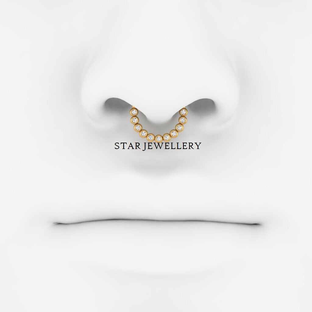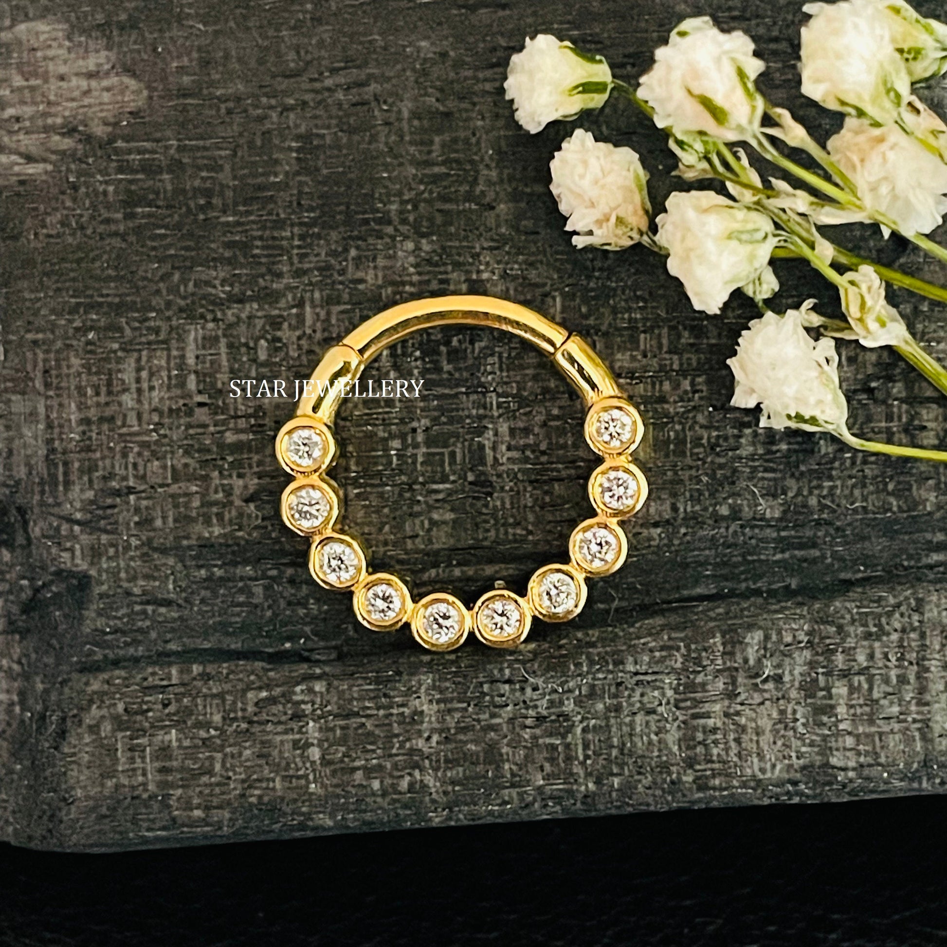14K Solid Gold Bezel Set Minimalist Diamond Daith Clicker, Natural Bezel Set Dainty Diamond Septum Piercing for her, Unique Septum Nose Ring
