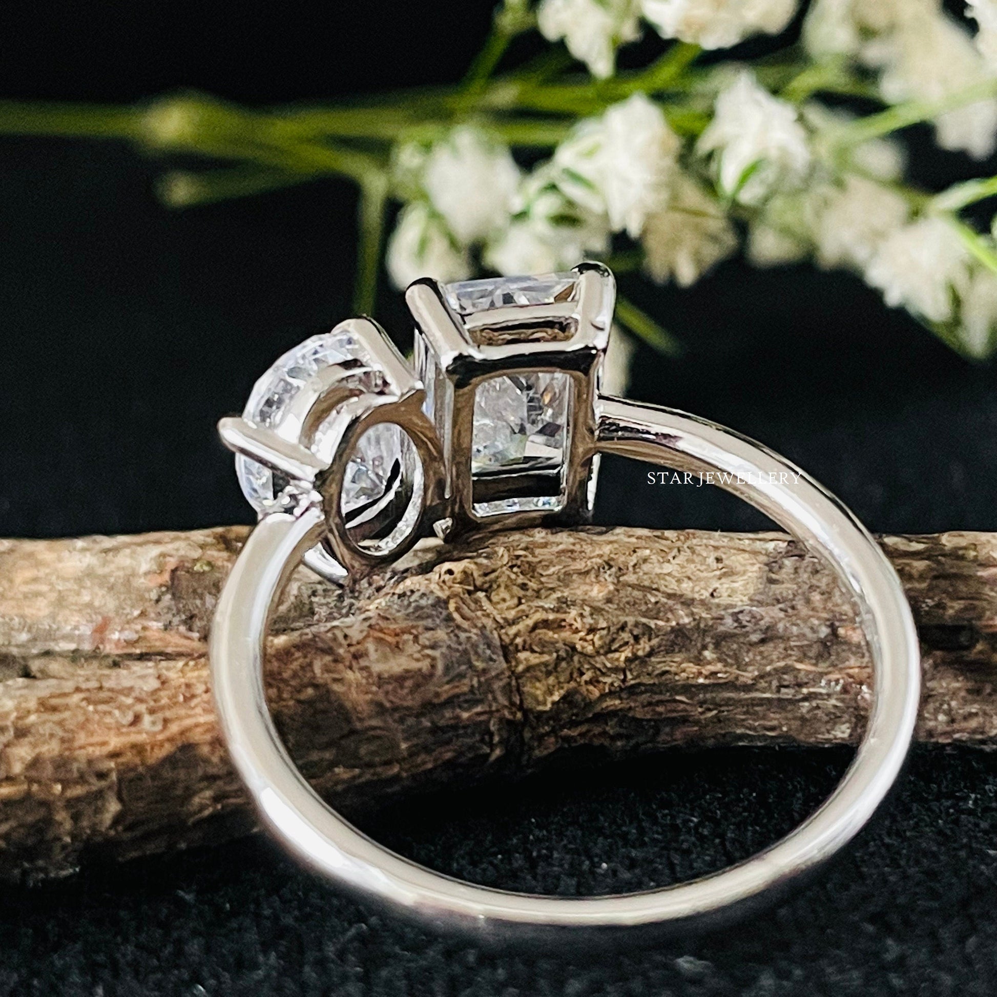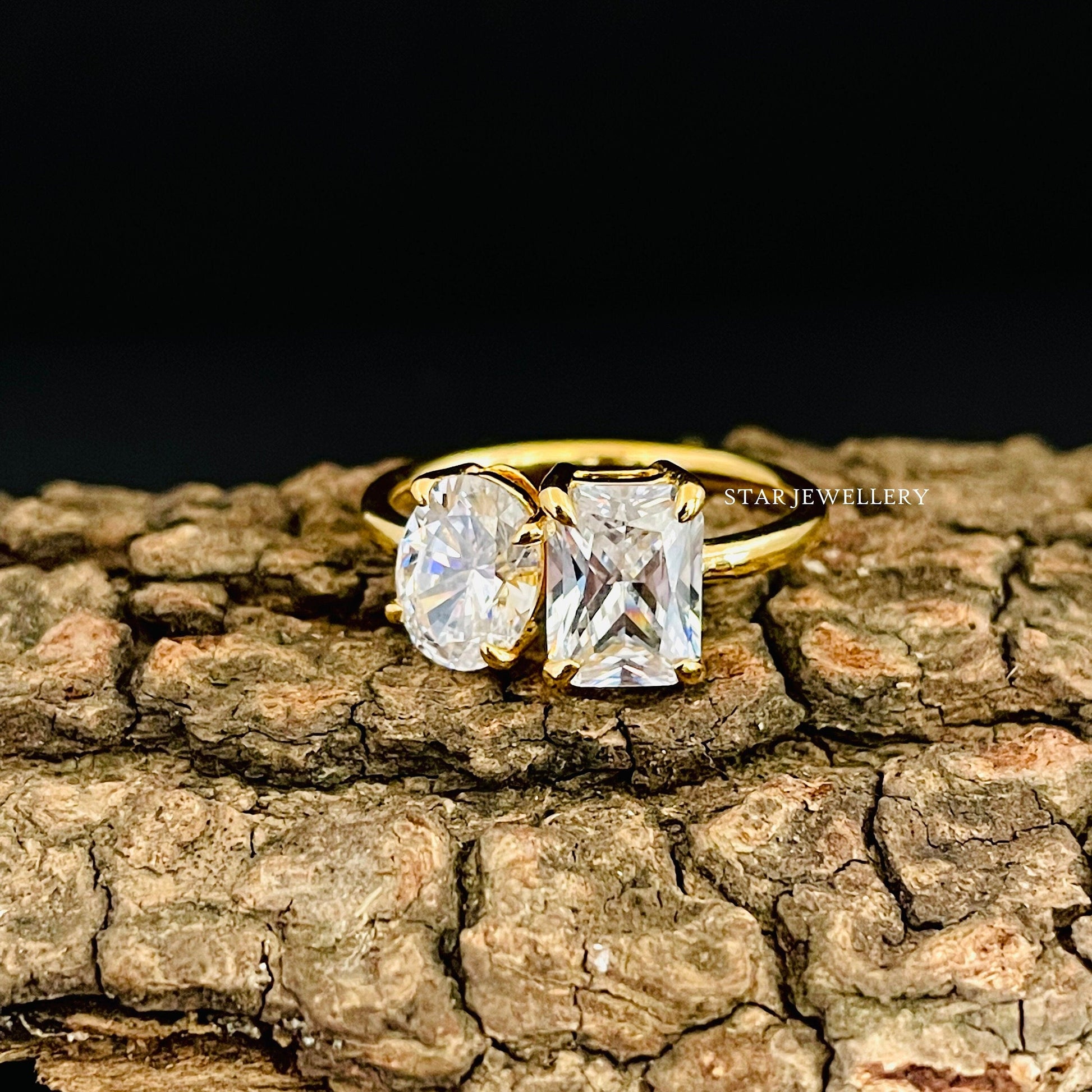 14K Solid Gold Colorless Oval & Radiant Cut Toi Et Moi Engagement Ring, Toi Et Moi Wedding Proposal Ring, You and Me Toi Moi Two Stone Moissanite Ring