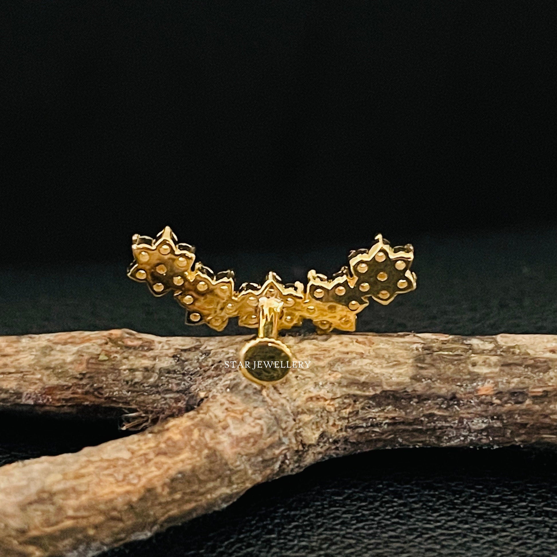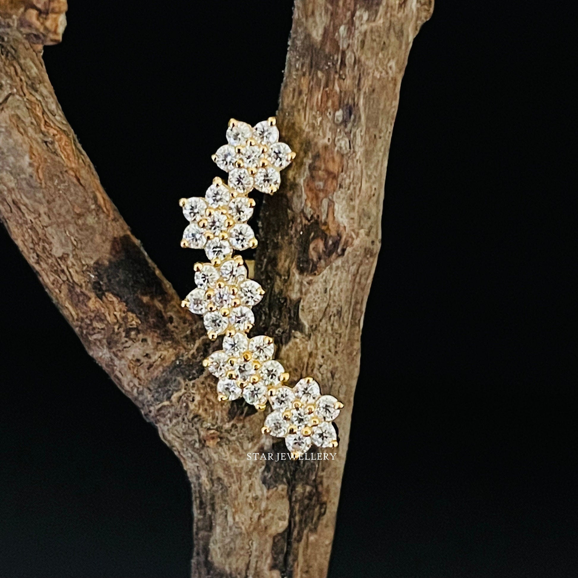 14K Solid Gold Curved Ear Crawler For Women, Diamond Flower, Crawler Earrings, Solid Gold Climber Earrings, Diamond Flower Ear Climber