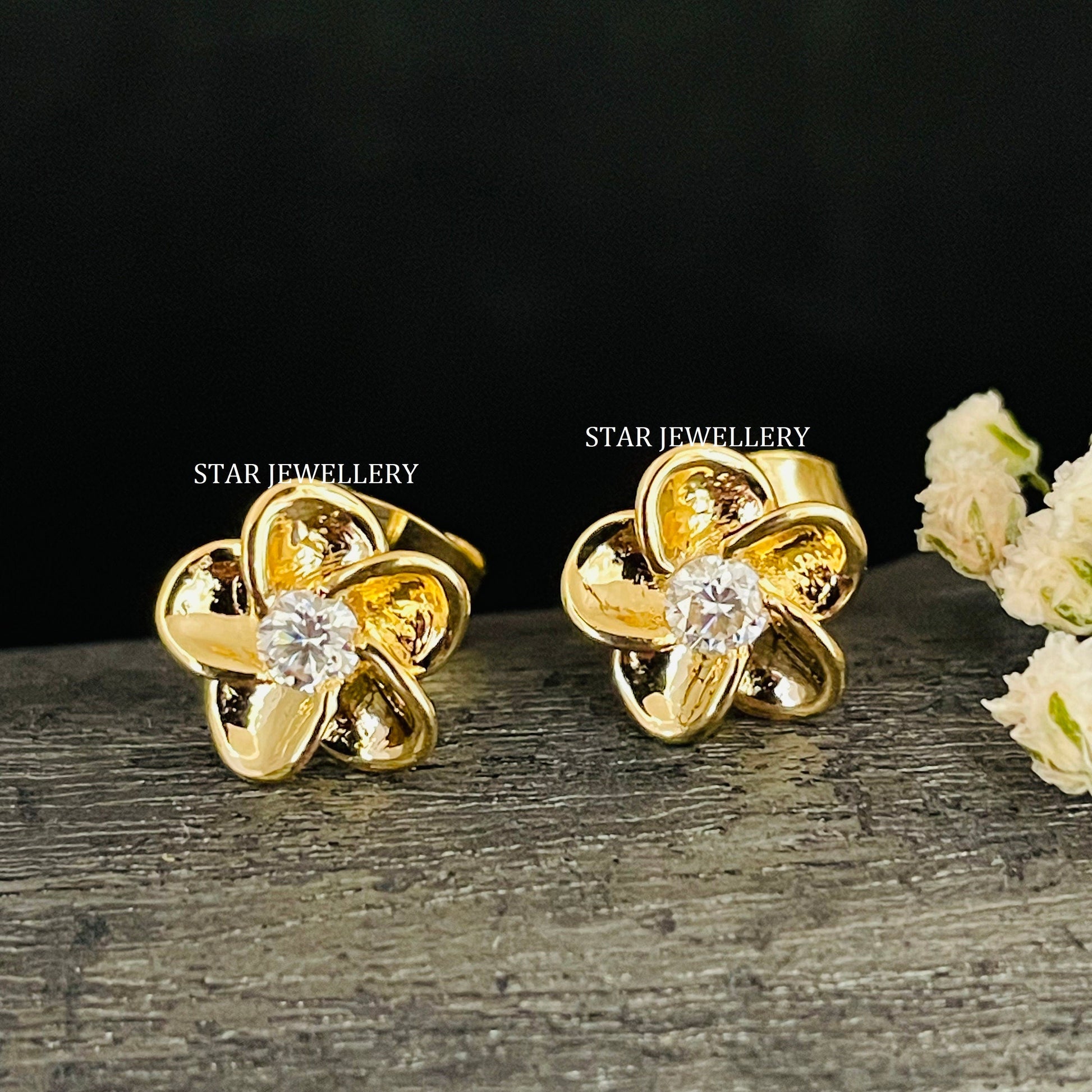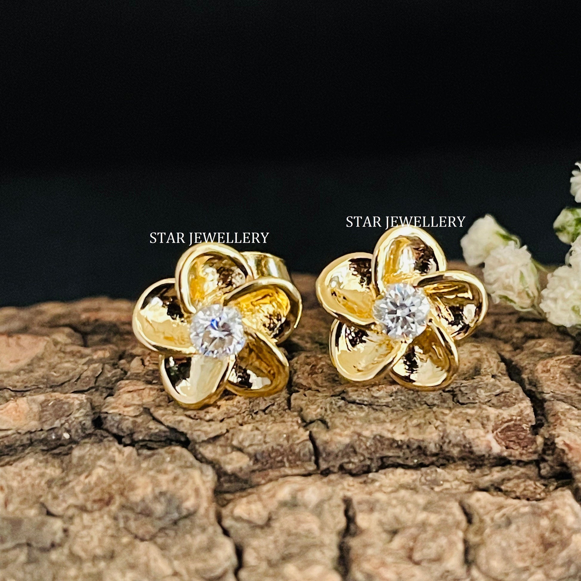â–¶ 14K Solid Gold Curved Flower Piercing for Helix, High lobe, Conch, Auricle, Tragus, Natural Diamond Flower Stud for Ear Tragus, Lobe, Conch, Rook Piercing Jewelry
