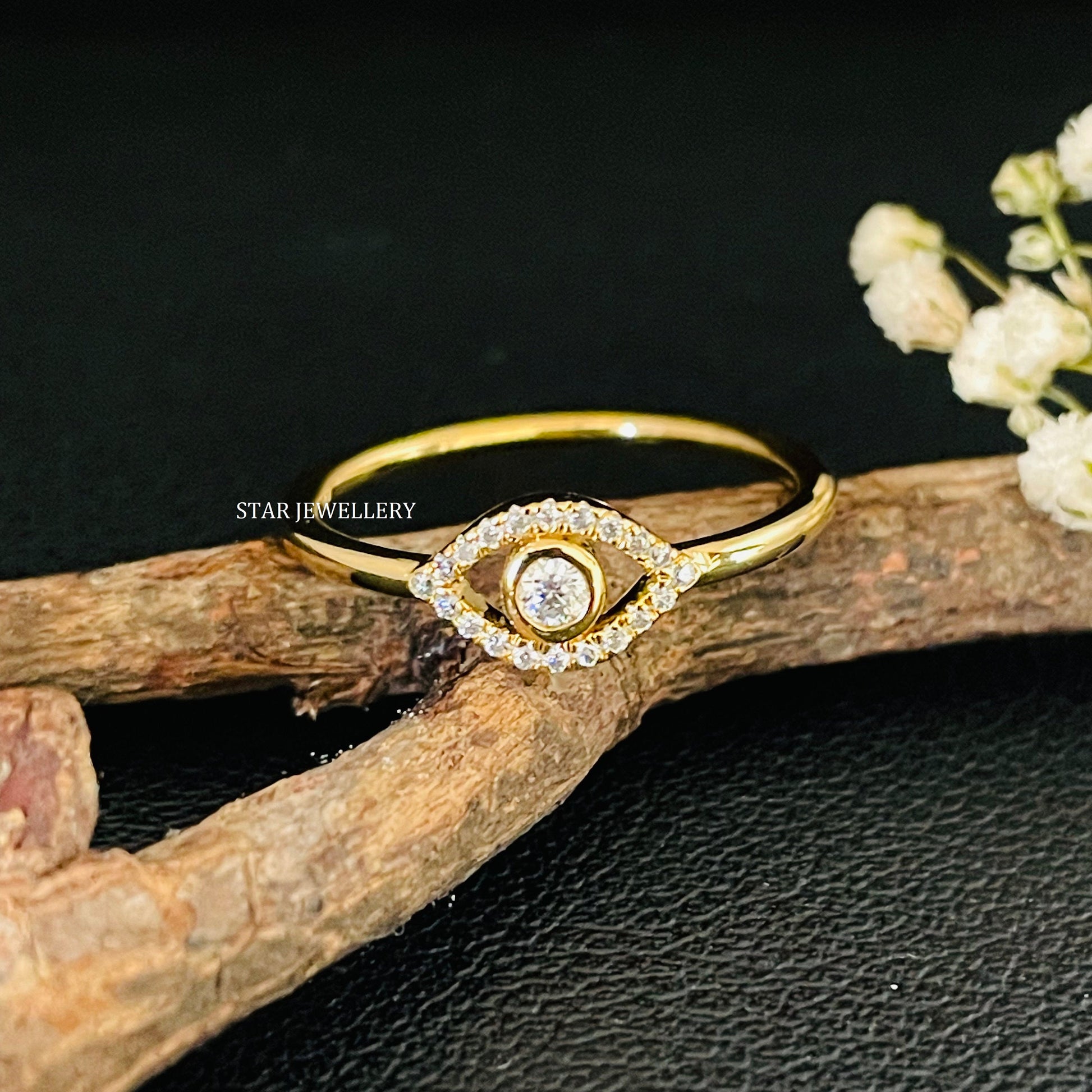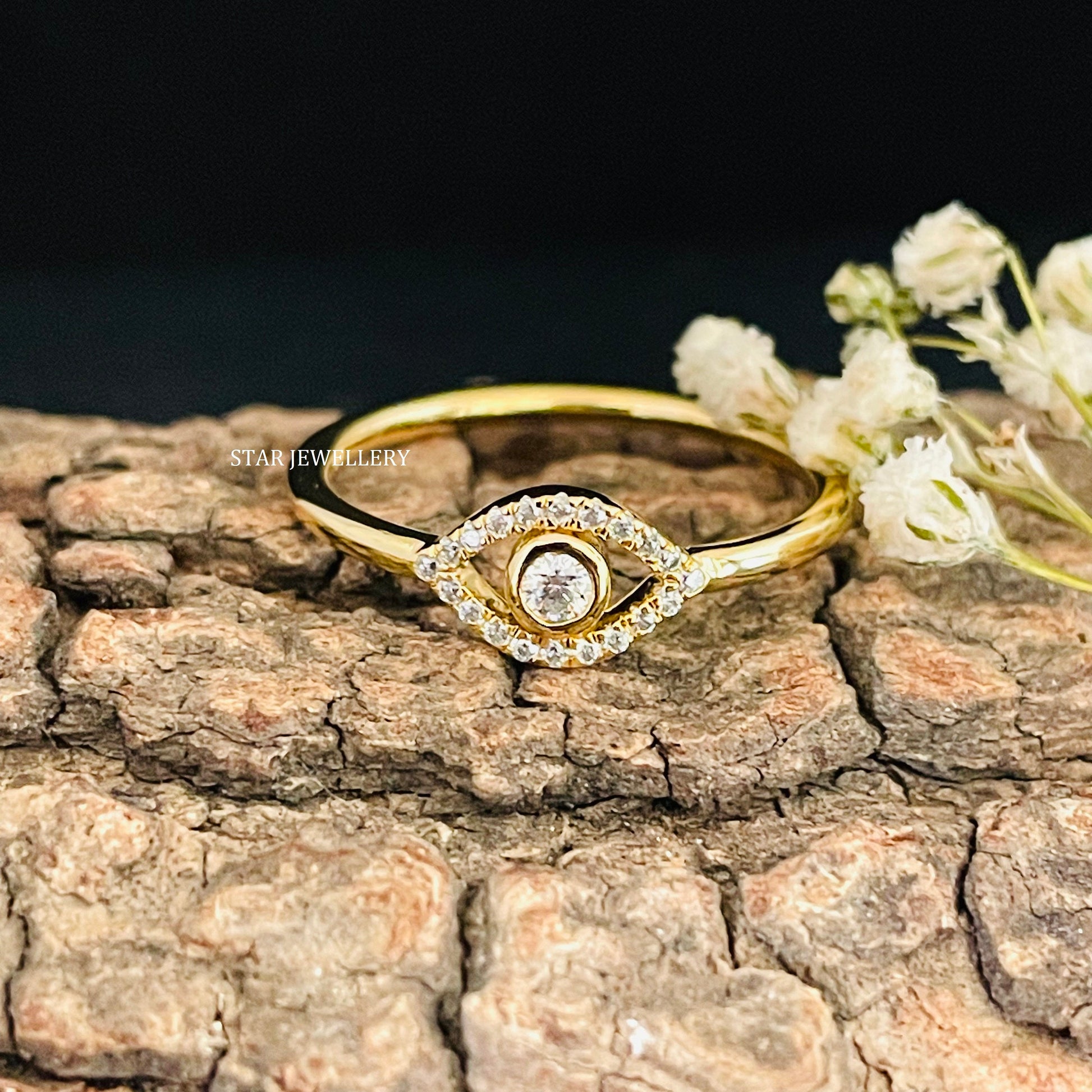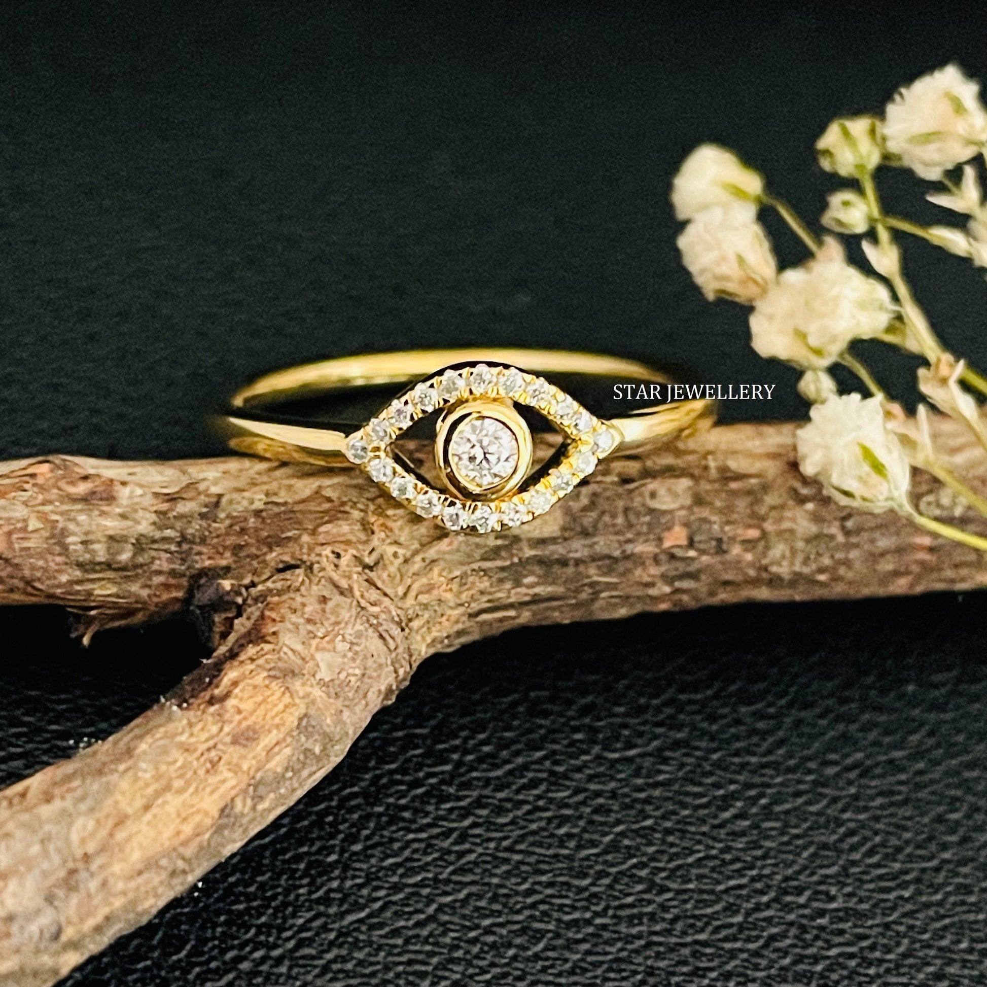 14K Solid Gold Diamond Evil Eye Ring for her, Solid Gold Evil Eye Diamond Ring, Evil Eye Diamond Ring, Evil Eye Hamsa Ring, Graduation Gift
