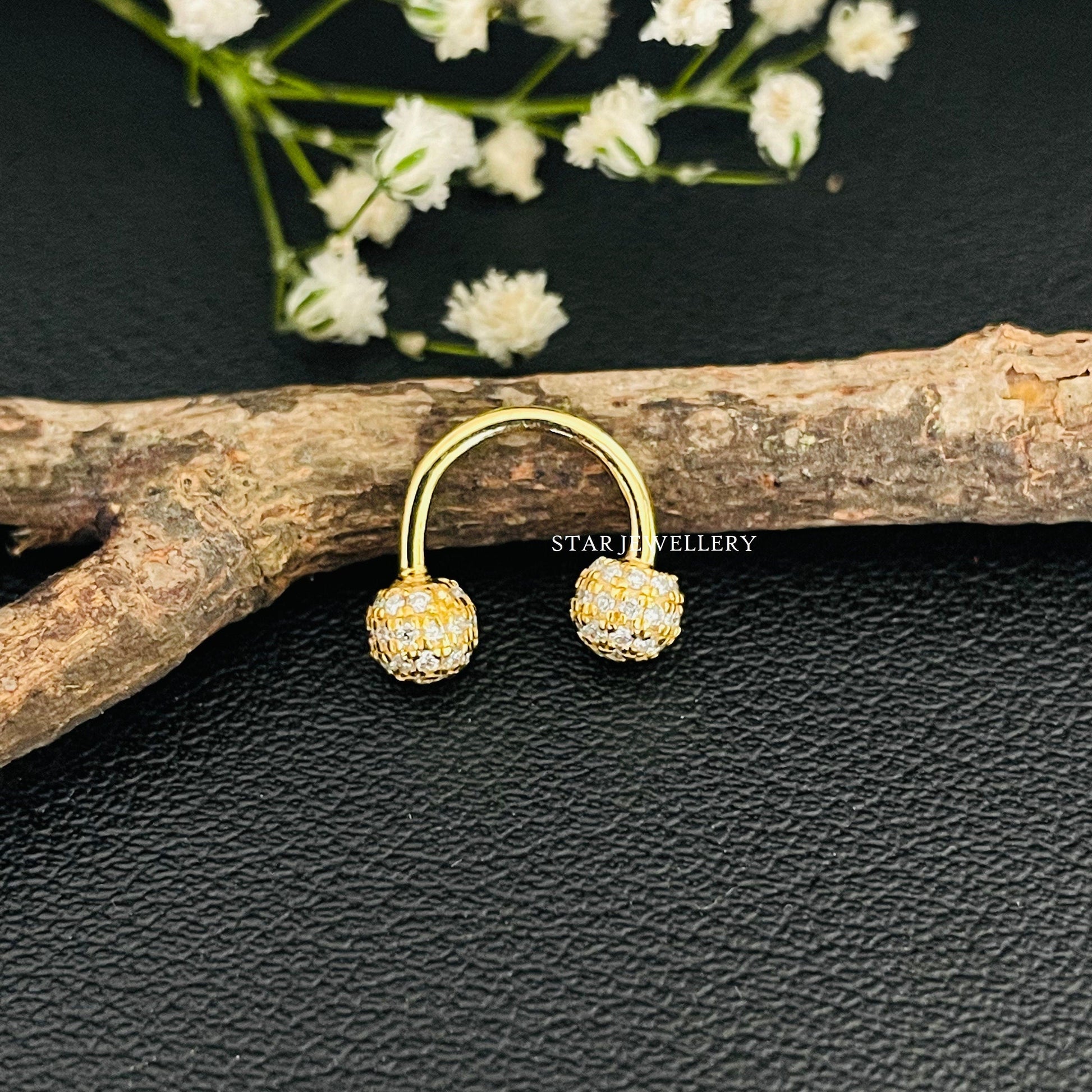 14K Solid Gold Diamond Horse Shoe Septum Nose Ring