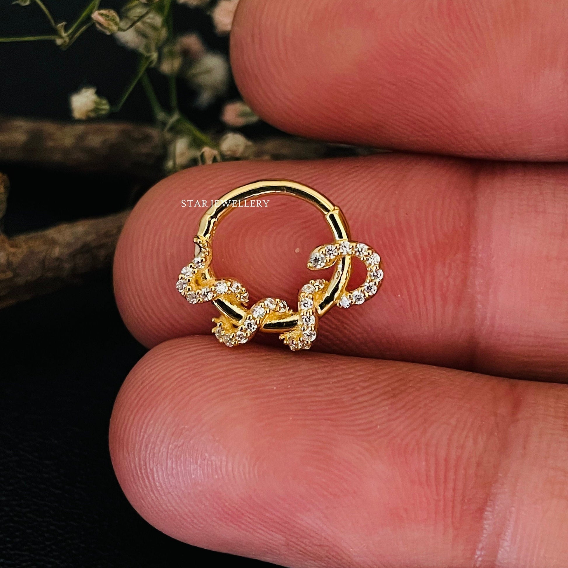 14K Solid Gold Diamond Snake Daith Piercing for her, Diamond Snake Septum Piercing, Snake Daith Clicker, Gold Snake Septum Clicker Piercing