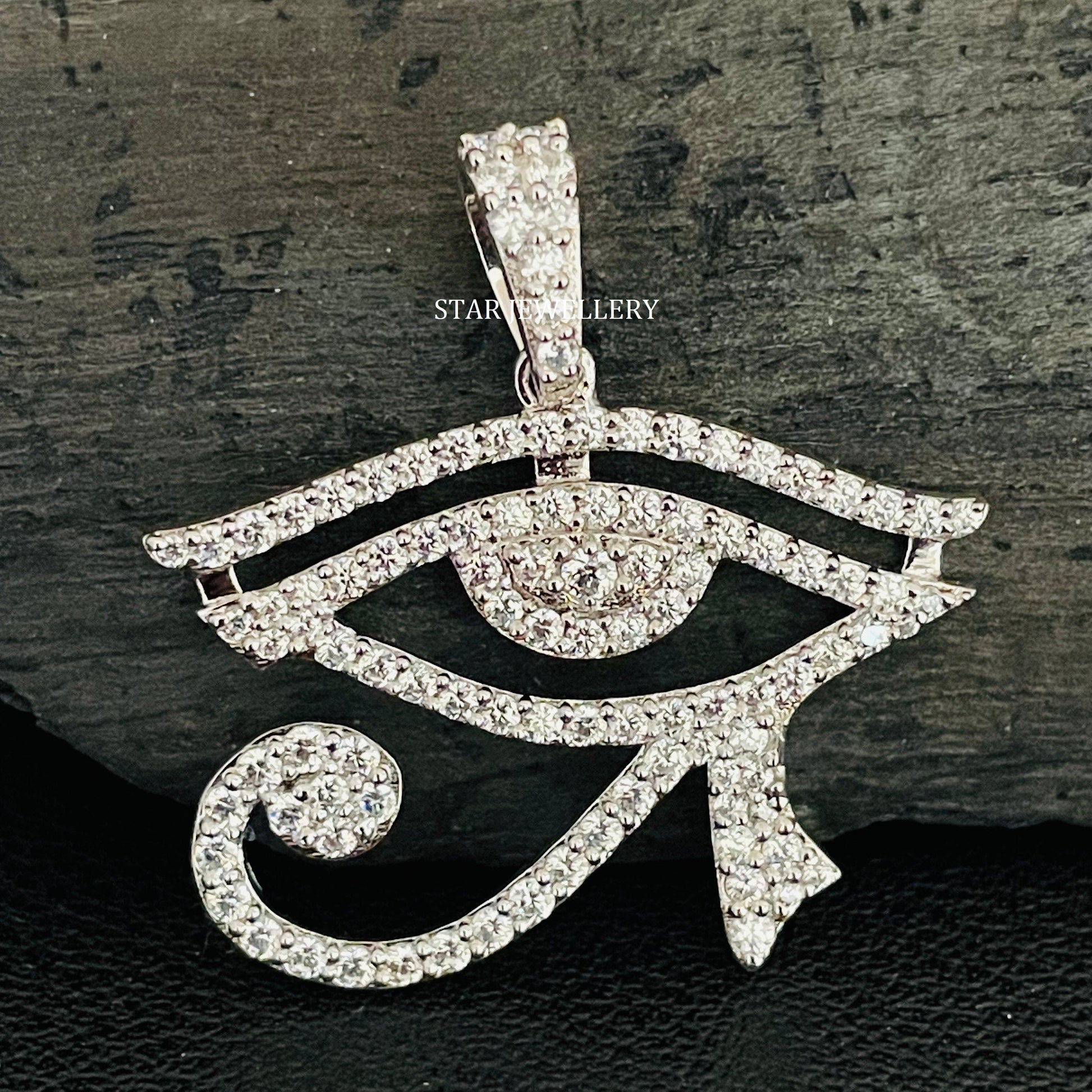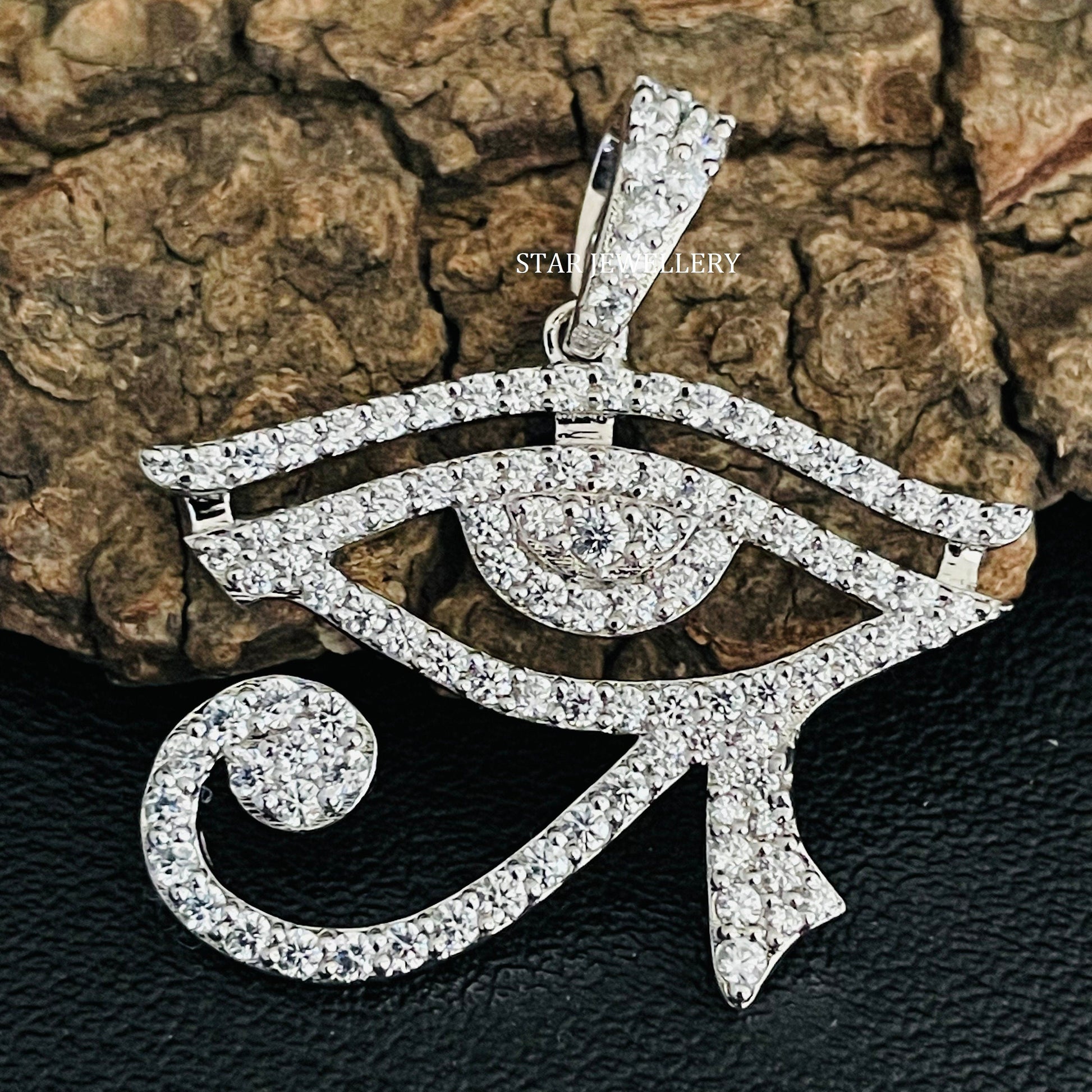 14K Solid Gold Horus Eye Diamond Pendant, Genuine Diamond Horus Eye Pendant, Horus Eye Pendant to Gift, Spiritual Horus Gold Diamond Pendant
