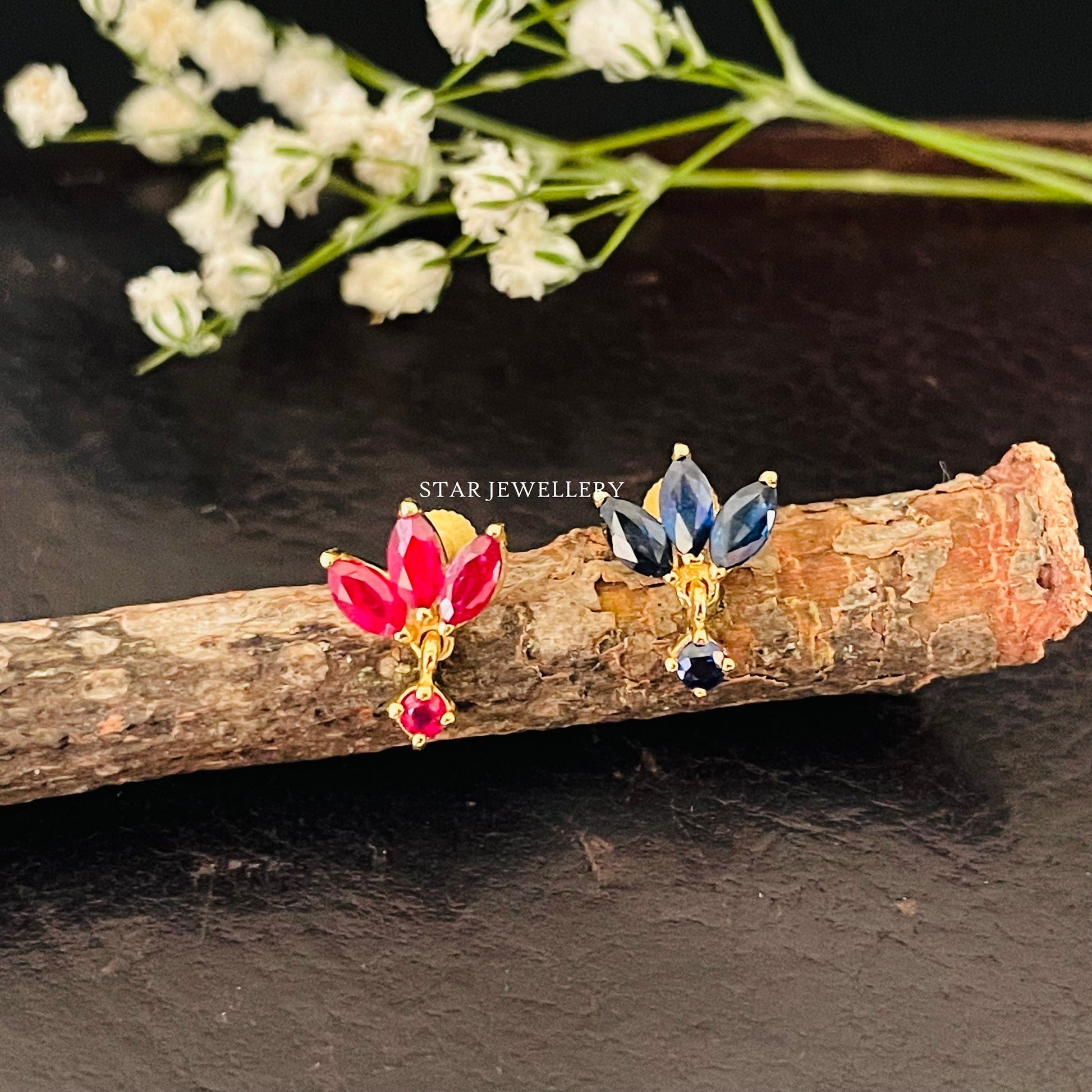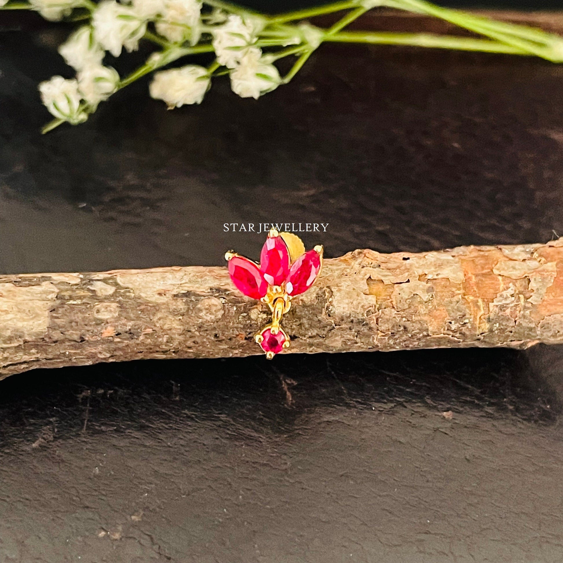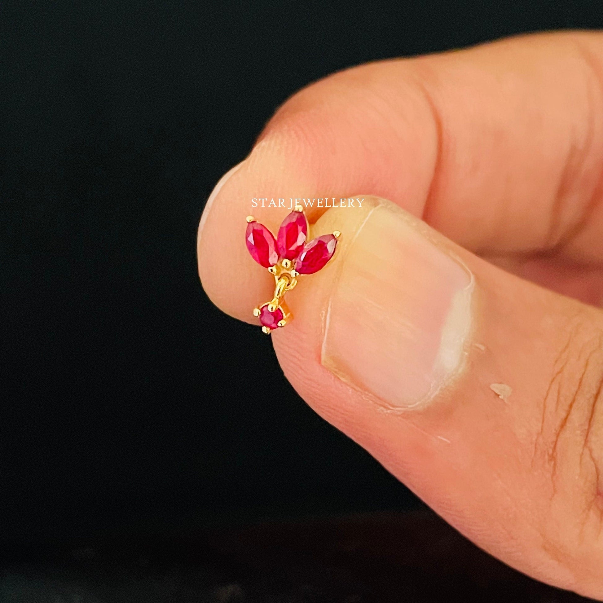 Natural Ruby Lotus Stud Ear Piercing