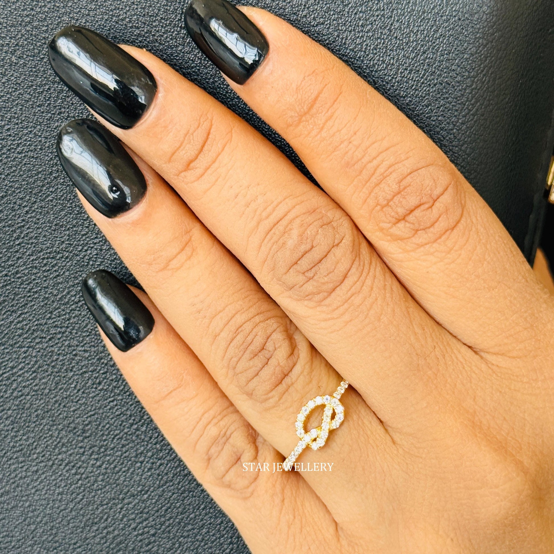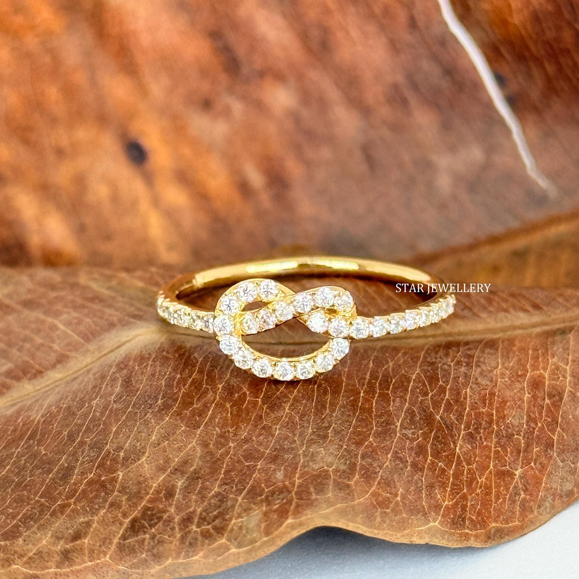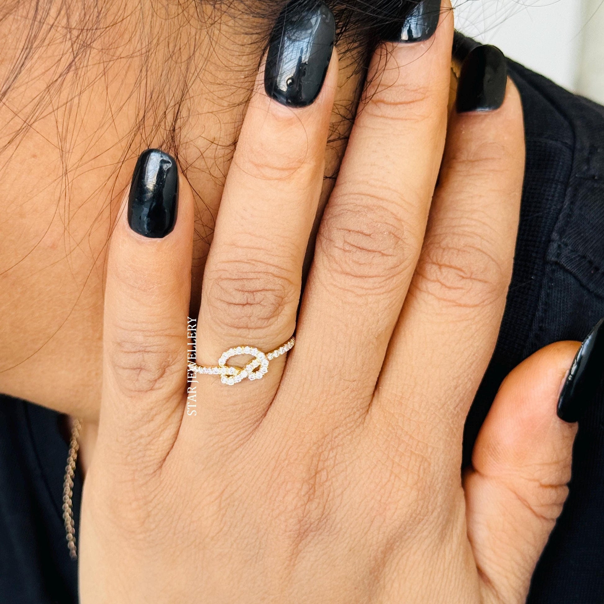 14K Solid Gold Minimalist Tie knot Promise Ring, Solid Gold LAB Diamond Tie Knot Ring for her, Dainty Tie knot Graduation Gift Ring