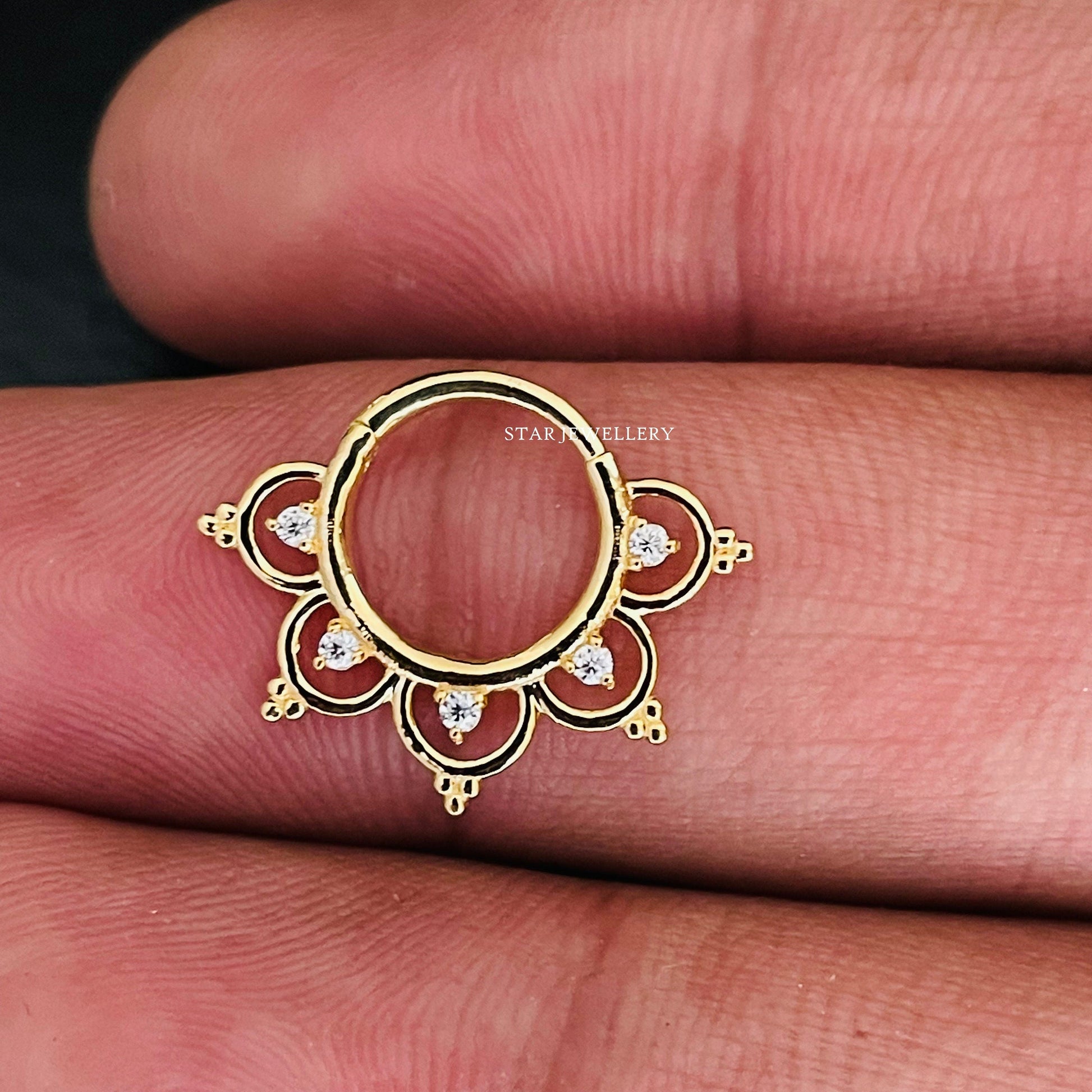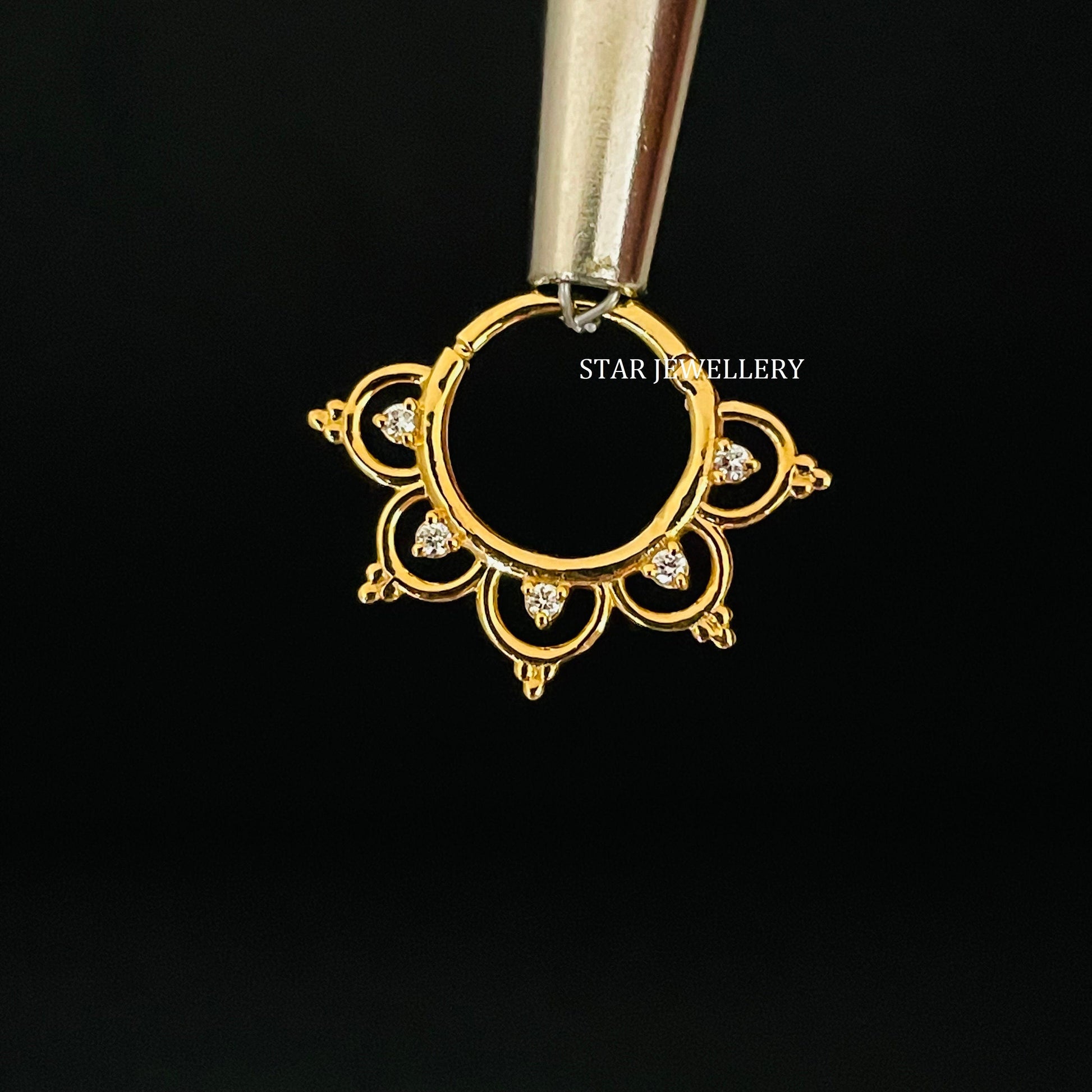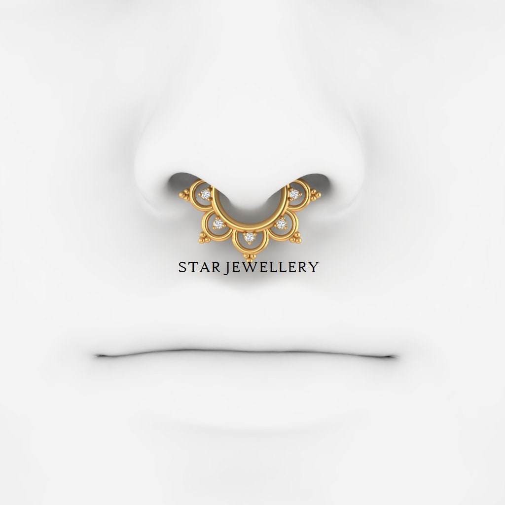 14K Solid Gold Natural Diamond Daith Piercing, Diamond Septum Nose Ring in 14K Gold, Diamond Clicker Daith Piercing, Diamond Septum Clicker