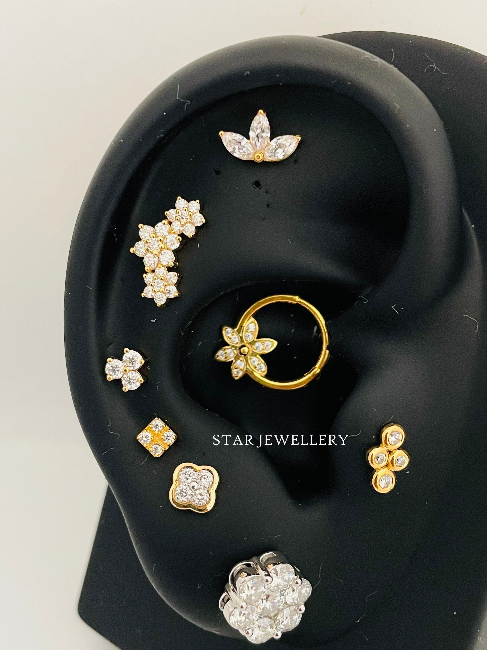 14K Solid Gold Natural Diamond Floral Daith Piercing