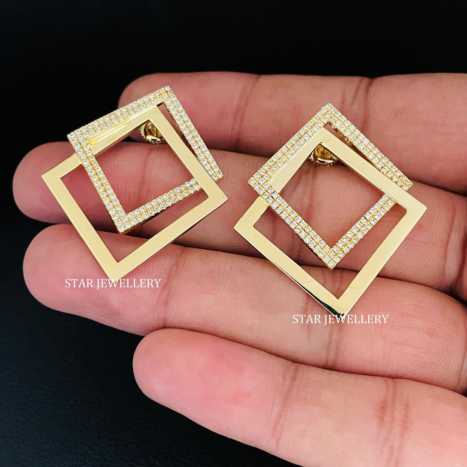 14K Solid Gold Pave Set Diamond Geometric Earring