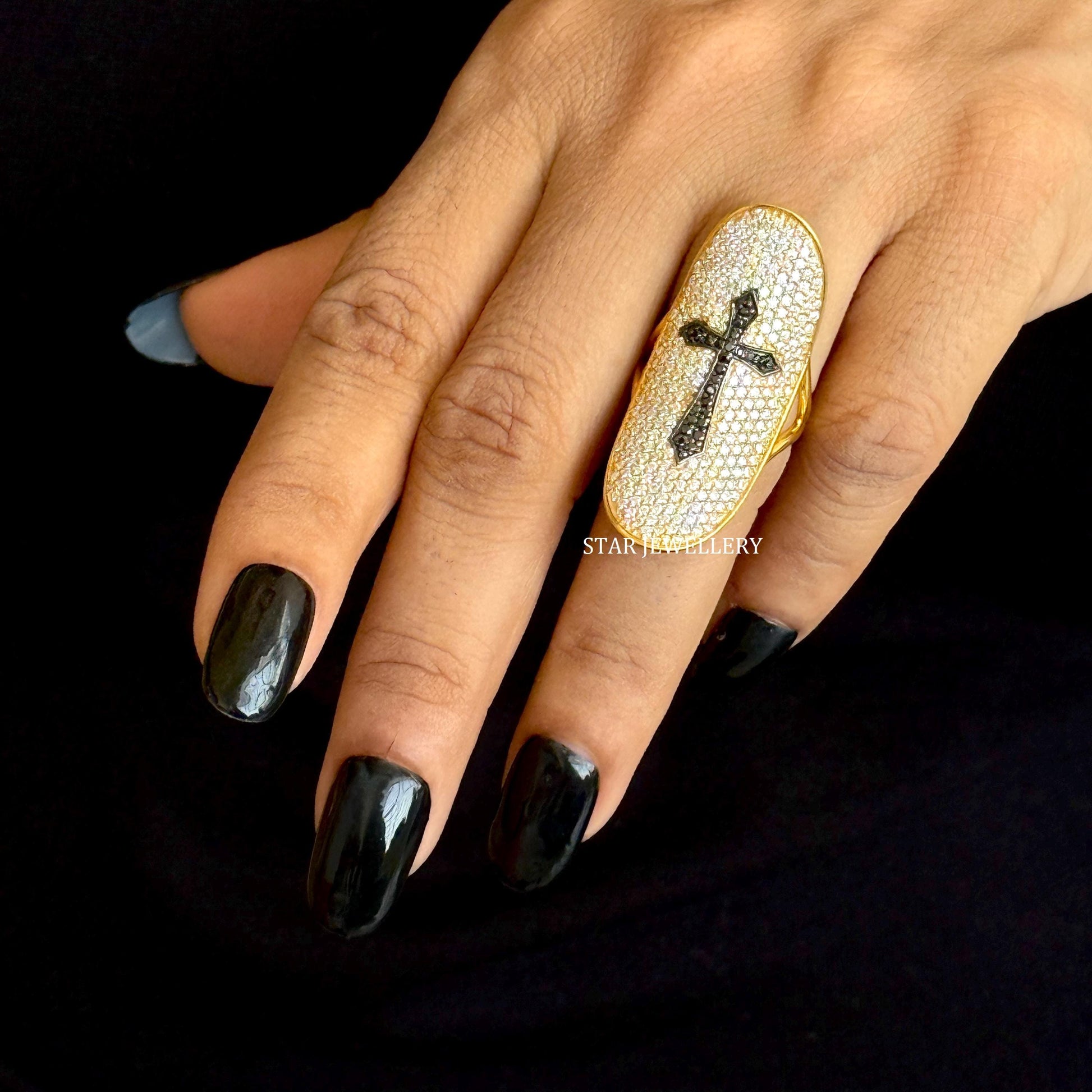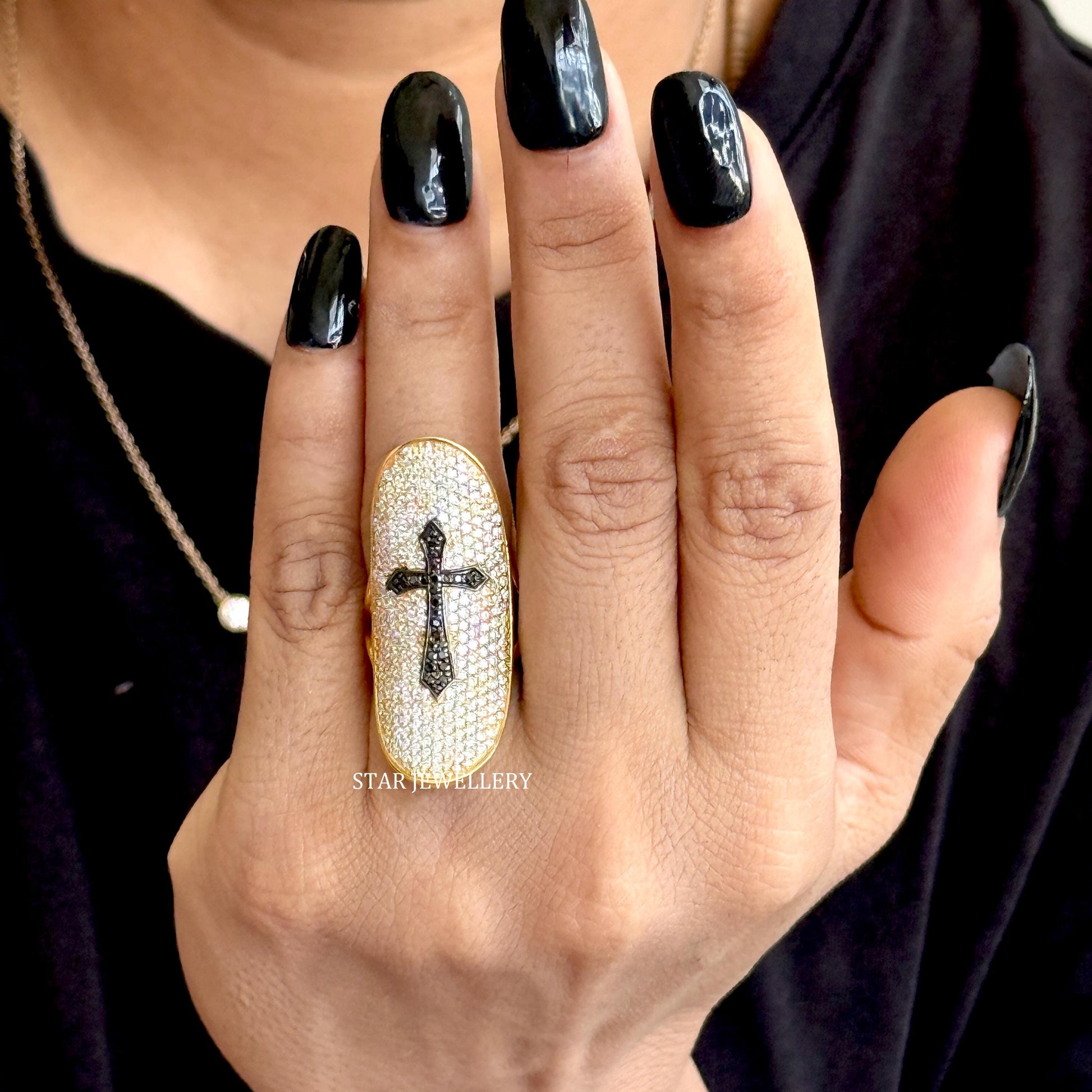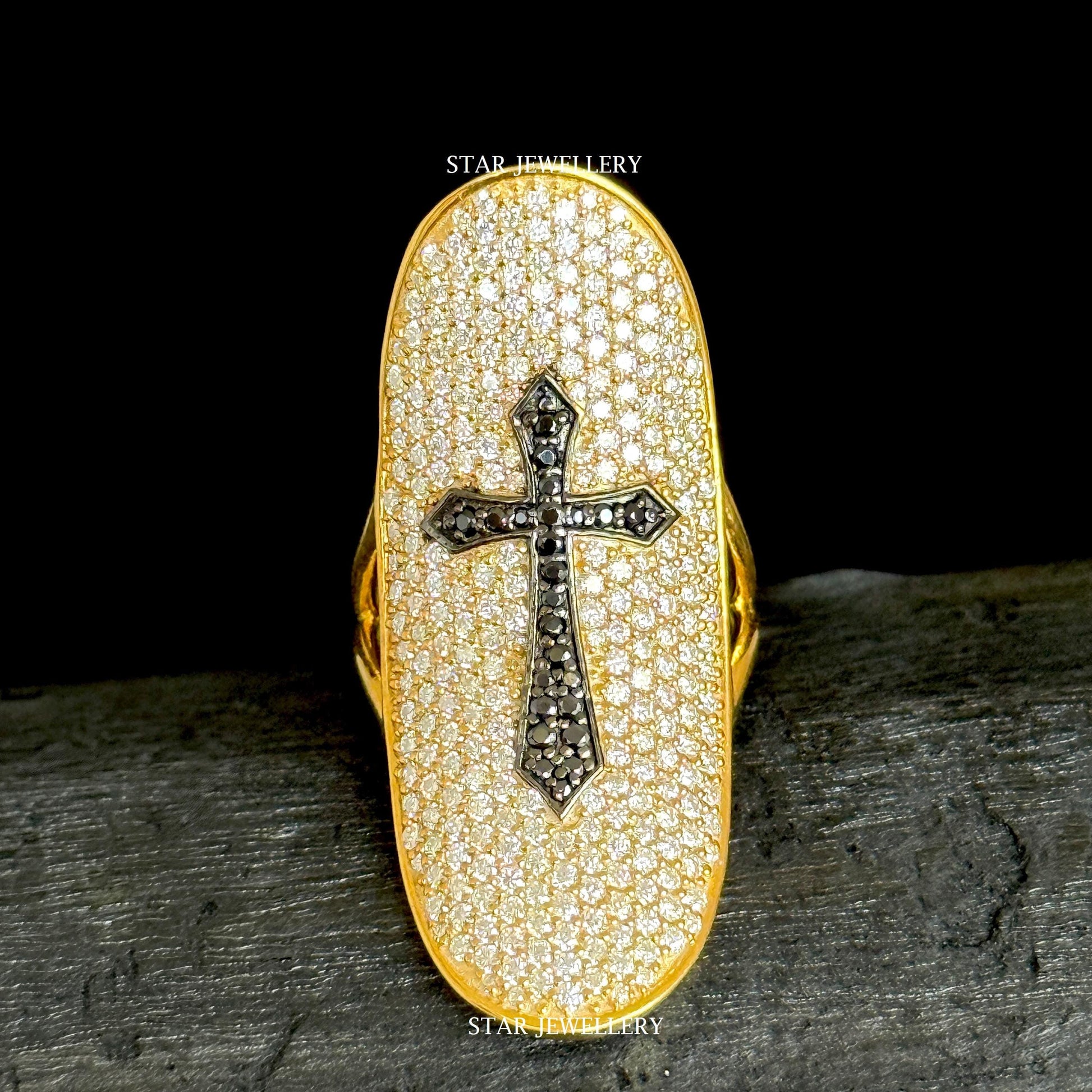 14K Solid Gold Pave Set Diamond Unique Designer Cross Ring