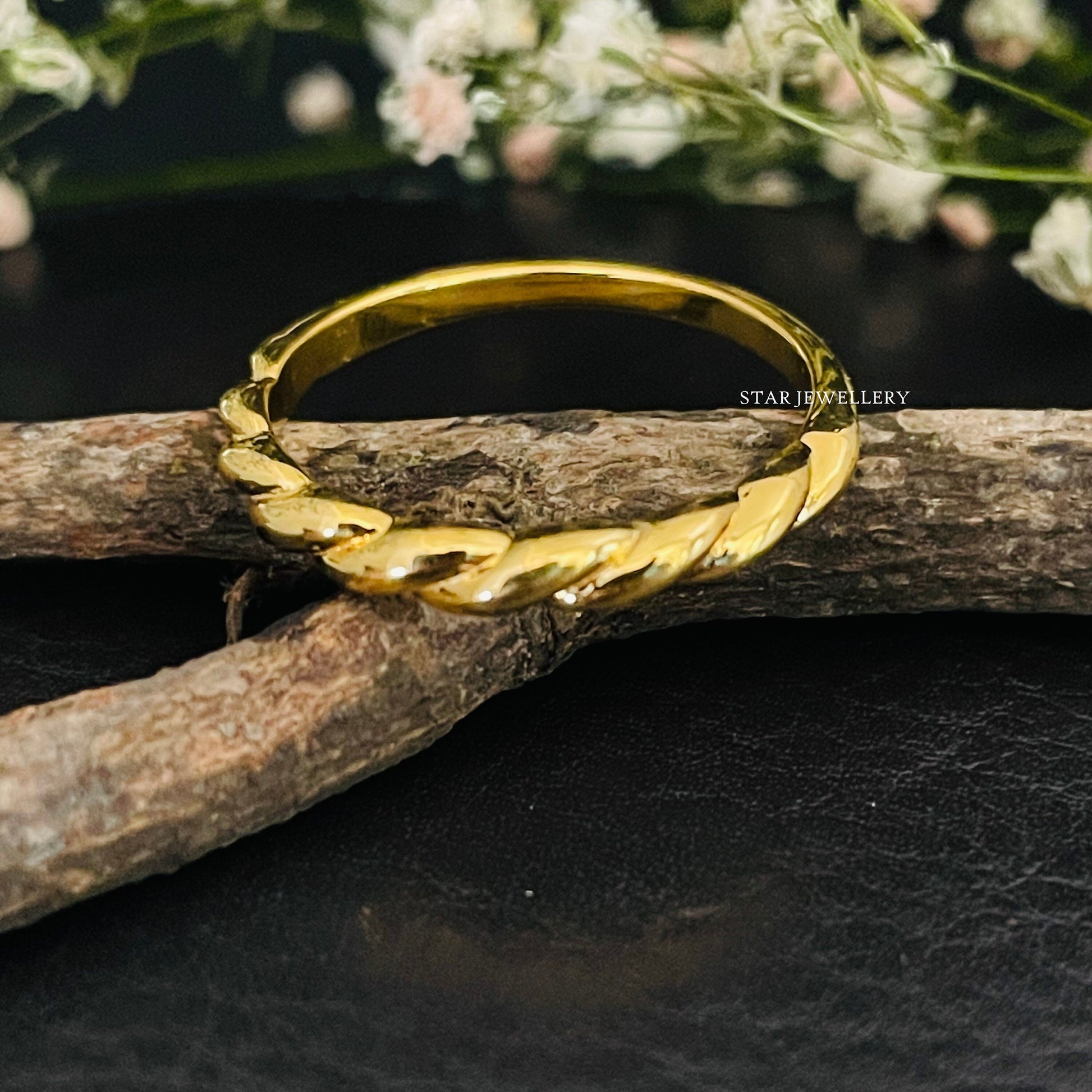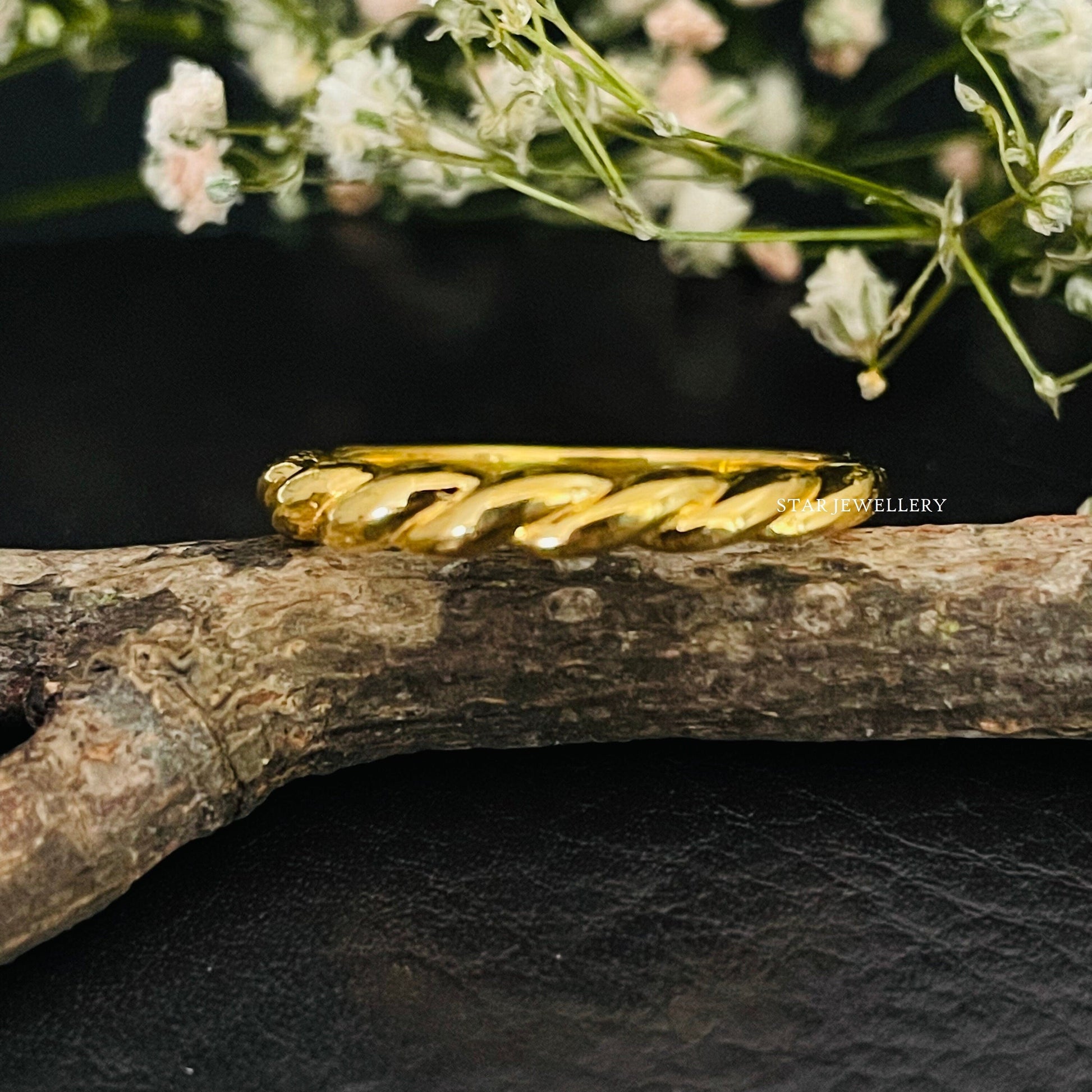 14K Solid Gold Twist Band Ring, Solid Gold Rope Ring, Twisted Rope Gold Wedding Band, 3 MM Stacking Twist Rope Ring, Anniversary Gift Ring