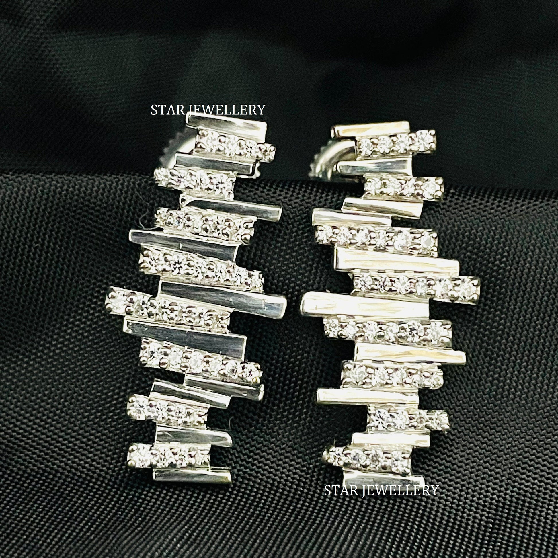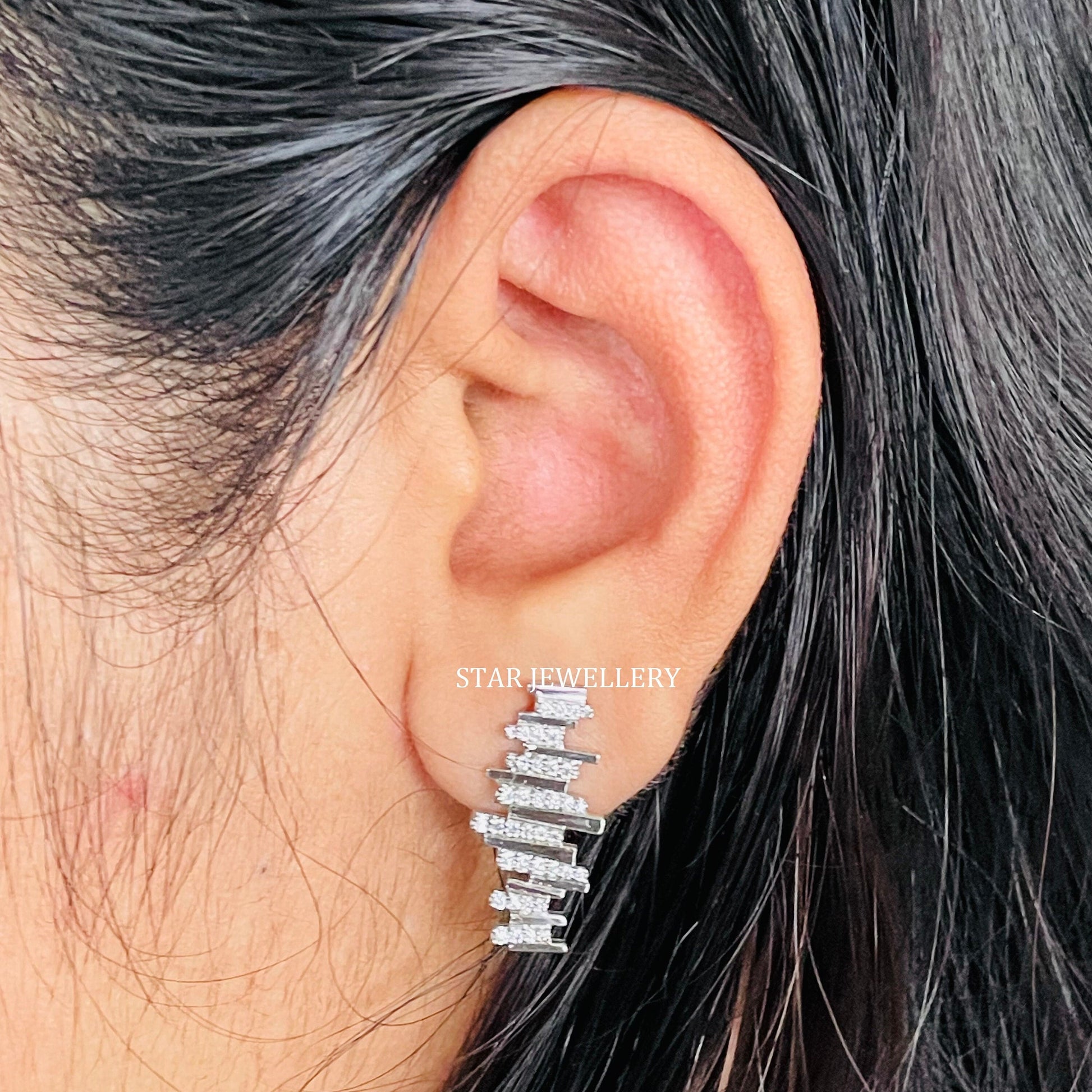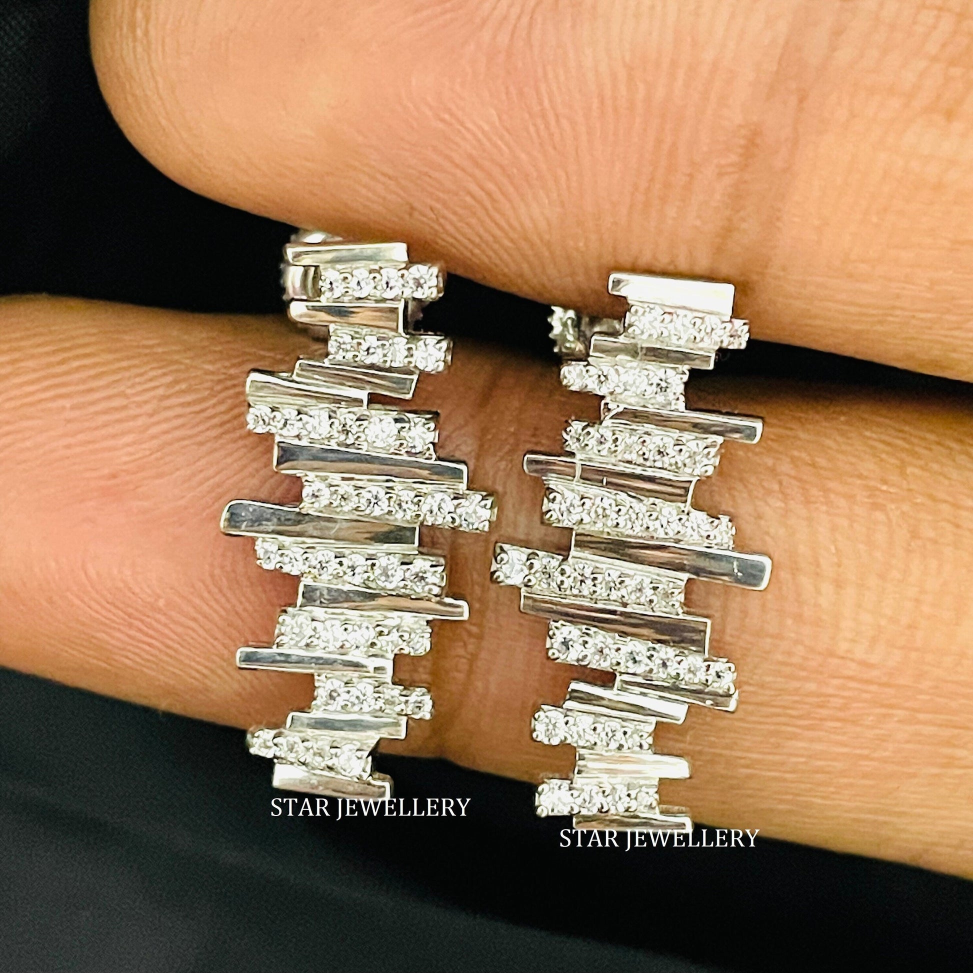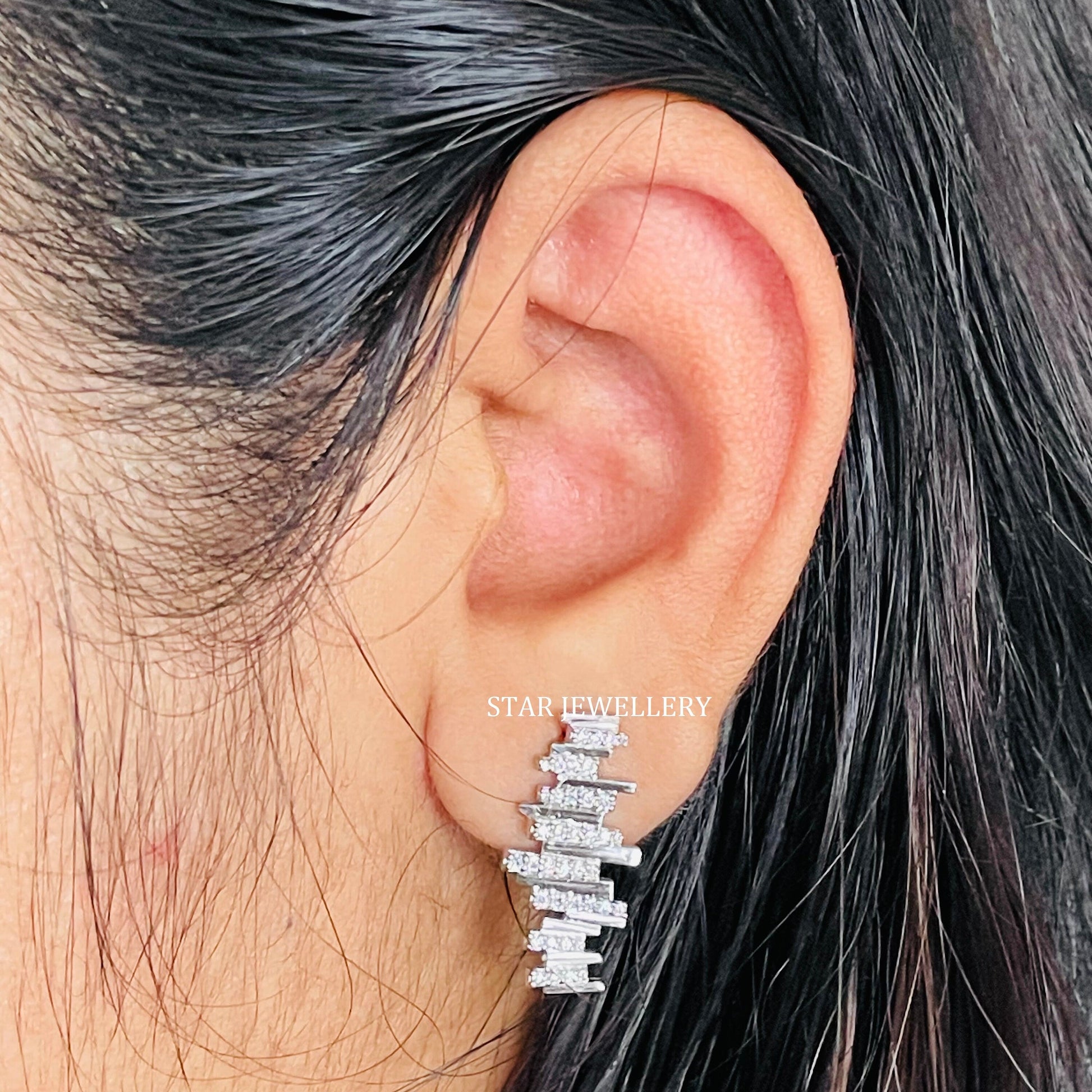 14K Solid Gold Zig Zag Natural Diamond Earring, Natural Diamond Layered Earring for her, Solid Gold Bridal Earring for her, Bridesmaid Studs