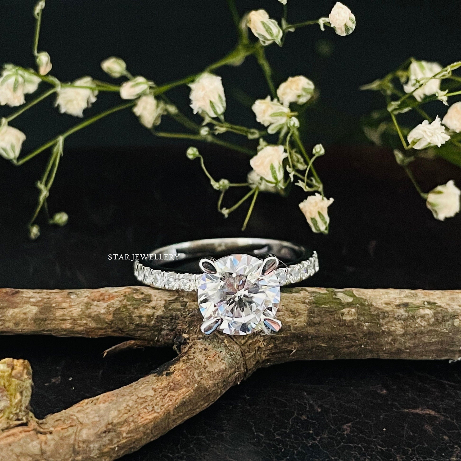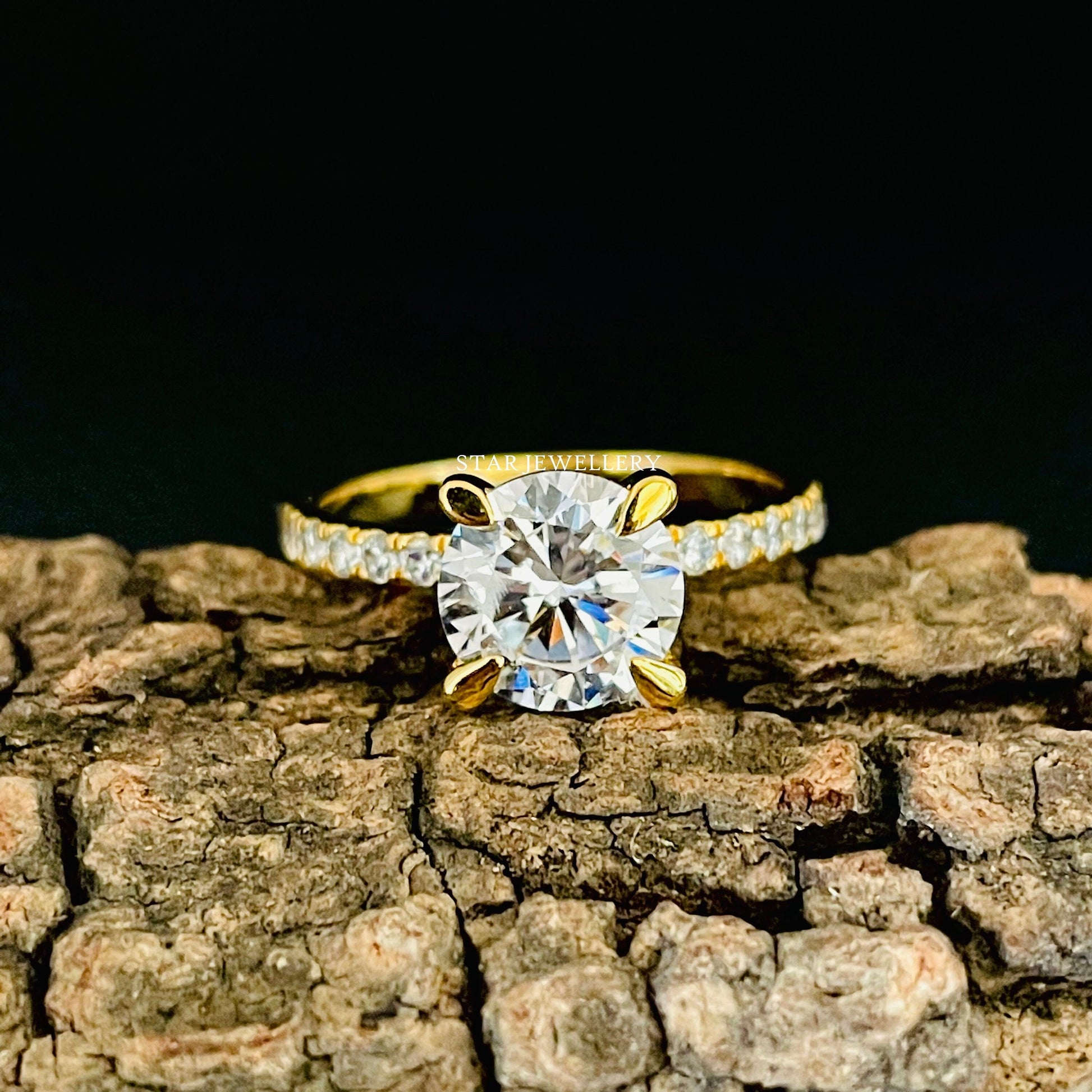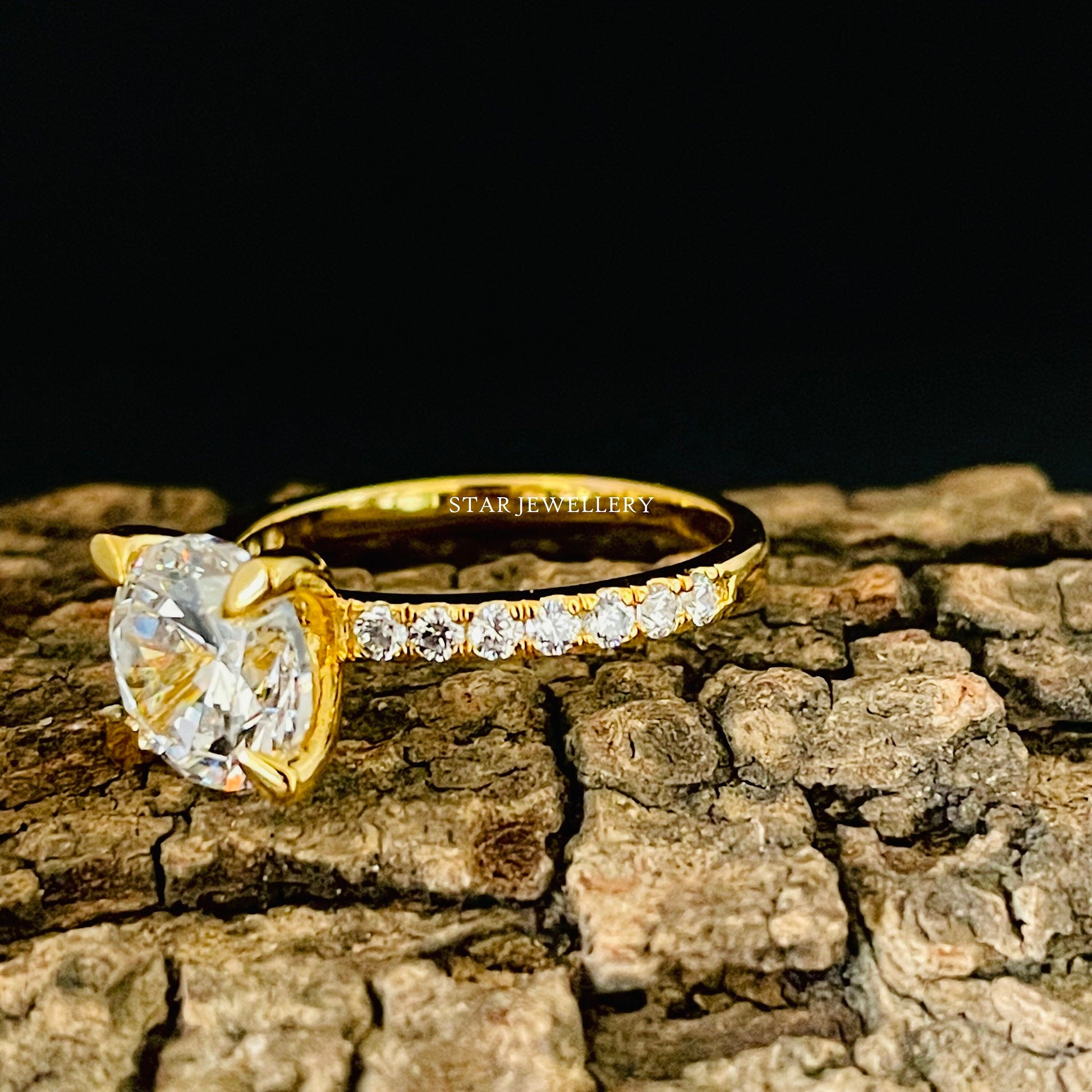 2.00 Ct IGI Certified Lab Grown Diamond Ring, Round Cut CVD Diamond Engagement Ring for her, Studded Shank CVD Diamond Wedding Proposal Ring