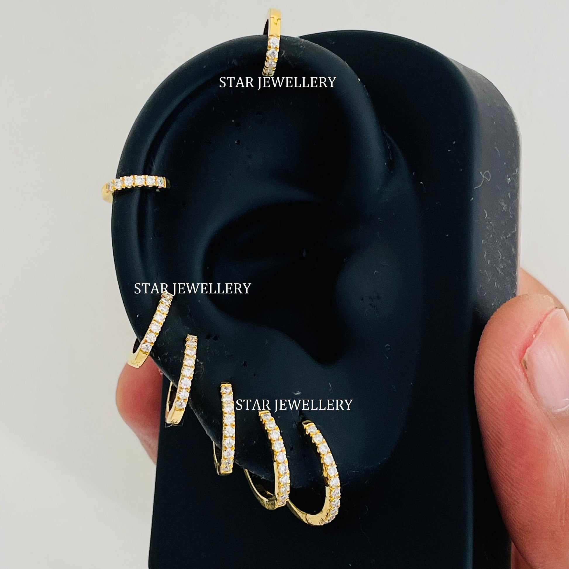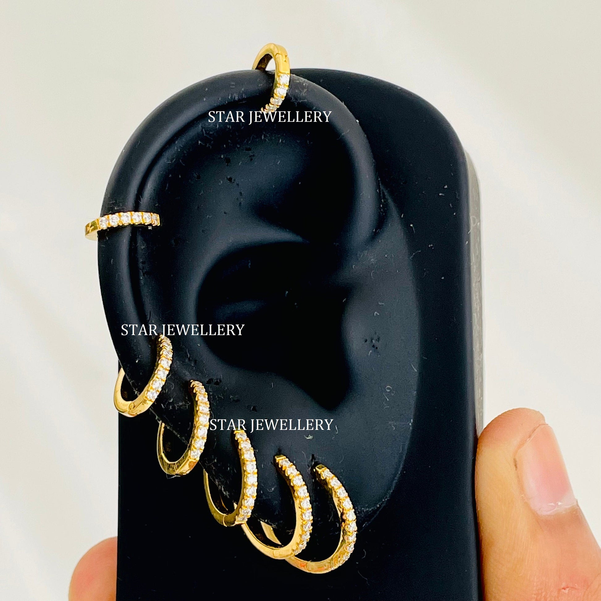 925 Sterling Silver Clicker Hoop Ring for Nose, 6 - 12 MM CZ Diamond Hoop Cartilage, Conch, Helix, Rook, Lobe, Orbital, Lip, Snug Piercing, Diamond Nose Hoop, Diamond Huggies, Silver Nostril Tragus, Tiny Nose Tragus, Nose Hoop, Diamond Huggie Hoop Earrings