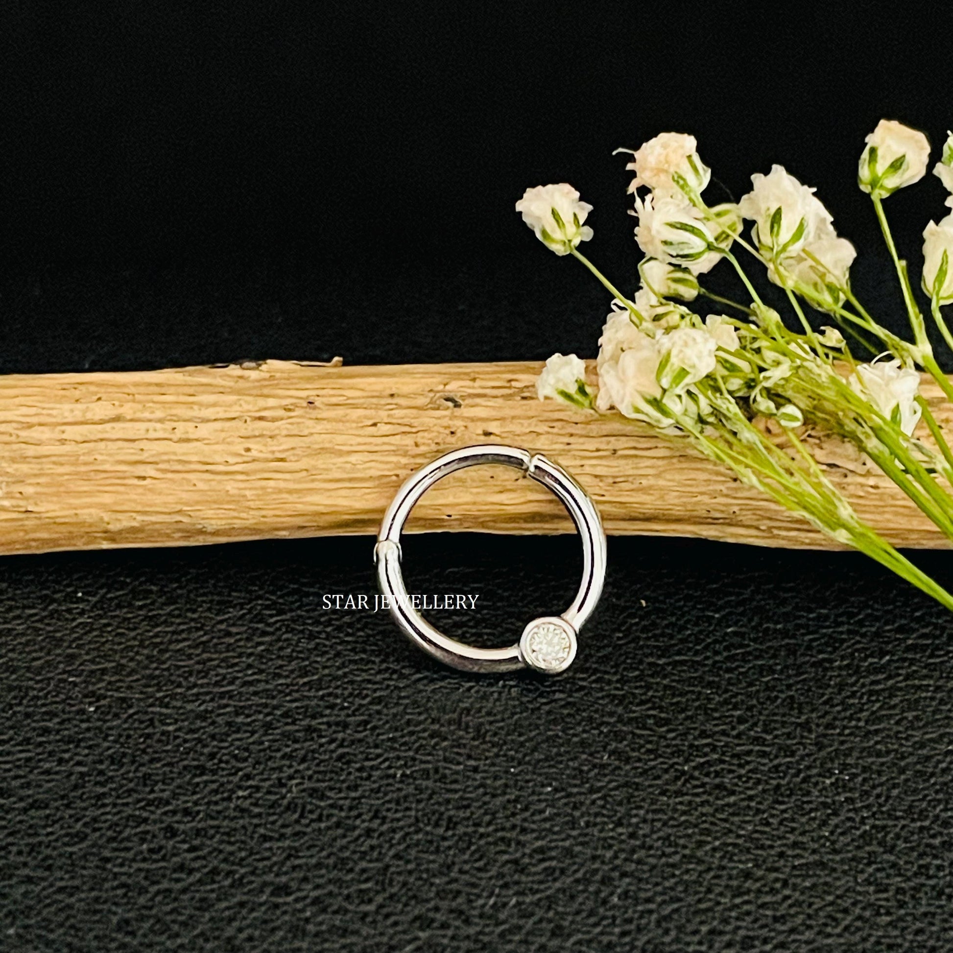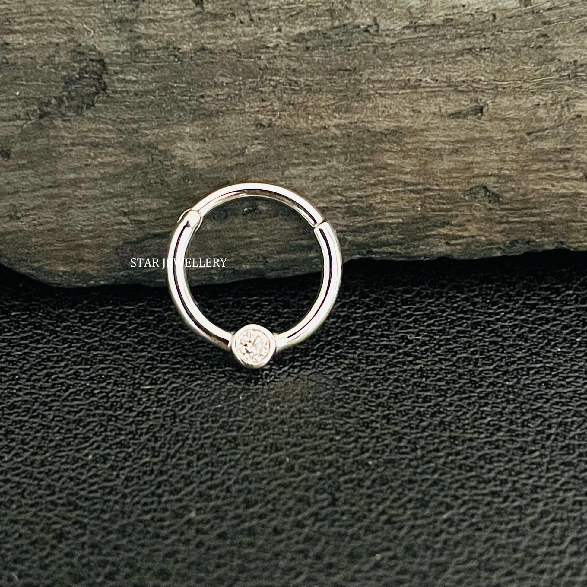 Bezel Set Natural Diamond Daith Piercing, 14K Solid Gold Septum Nose Ring, Diamond Daith Clicker, Helix Daith Piercing, Delicate Septum Ring