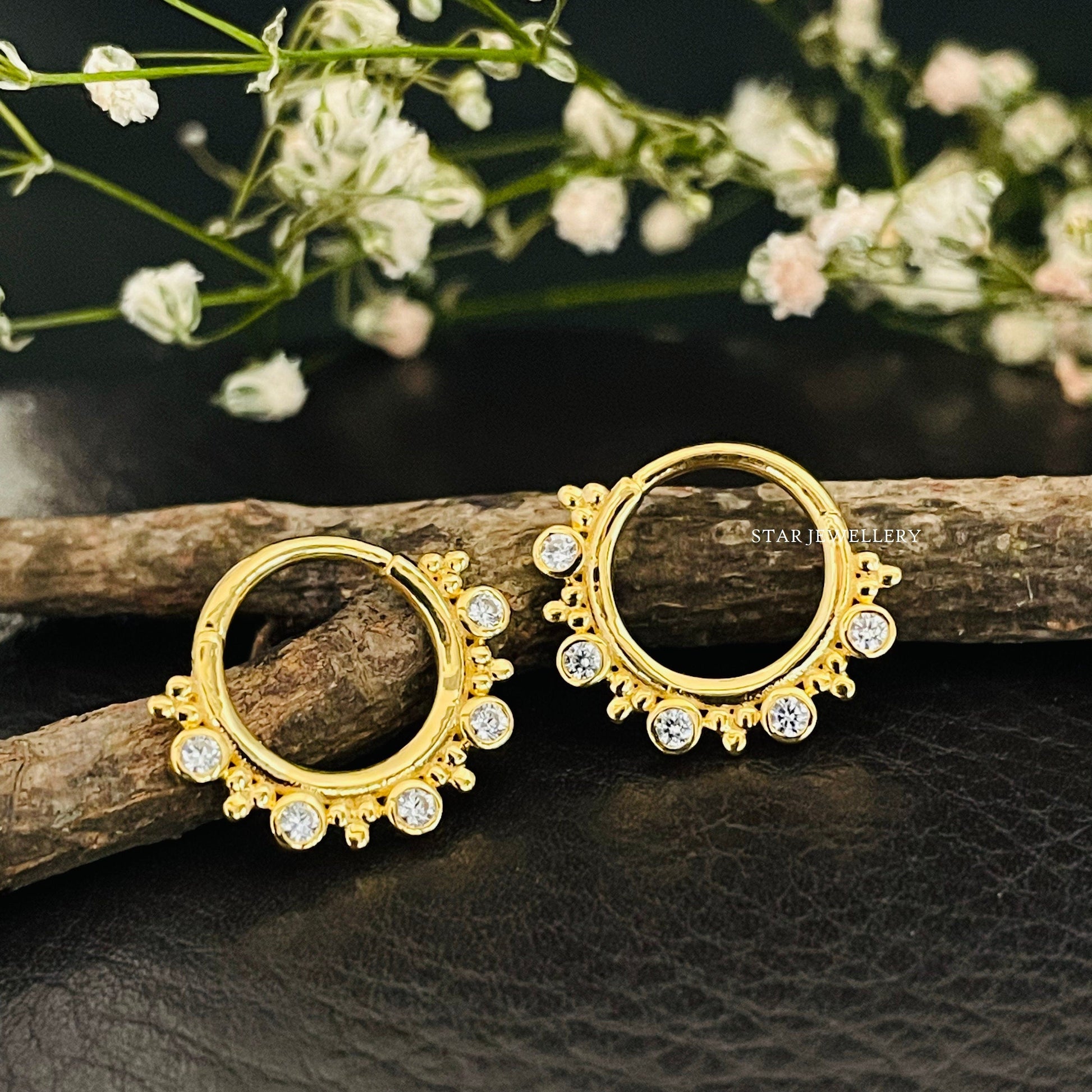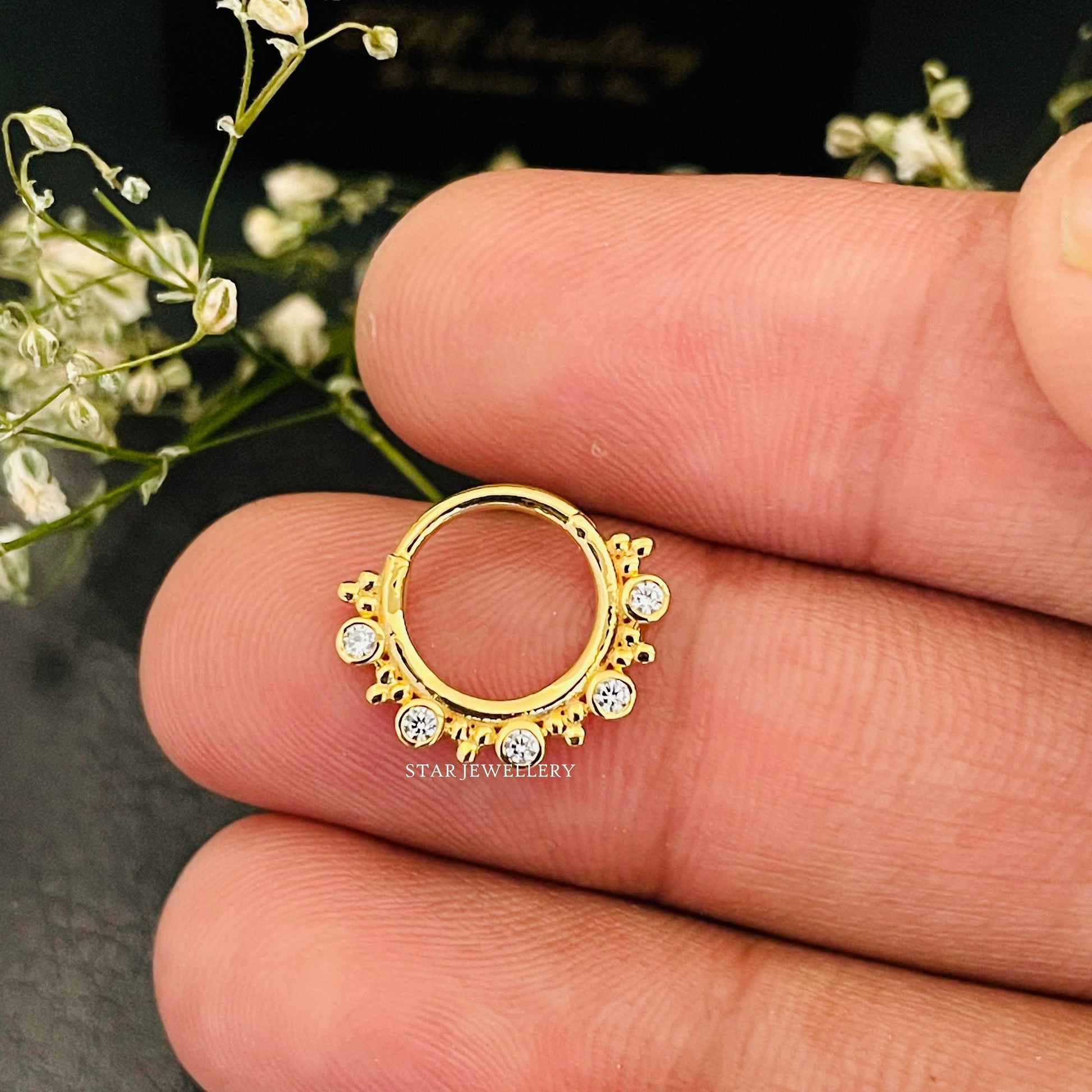 Bezel Set Natural Diamond Daith Piercing, 14K Solid Gold Septum Nose Ring, Diamond Daith Clicker, Helix Daith Piercing, Septum Body Jewelry