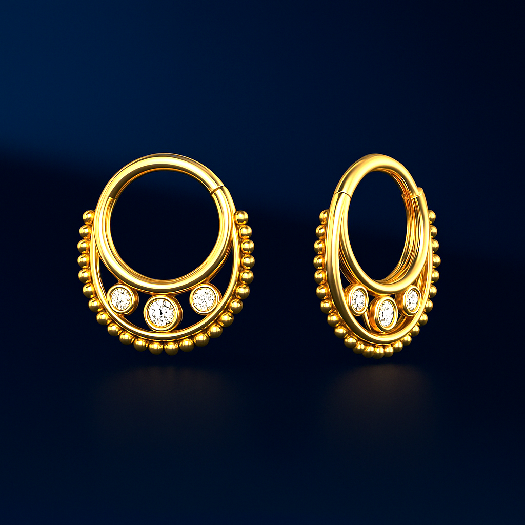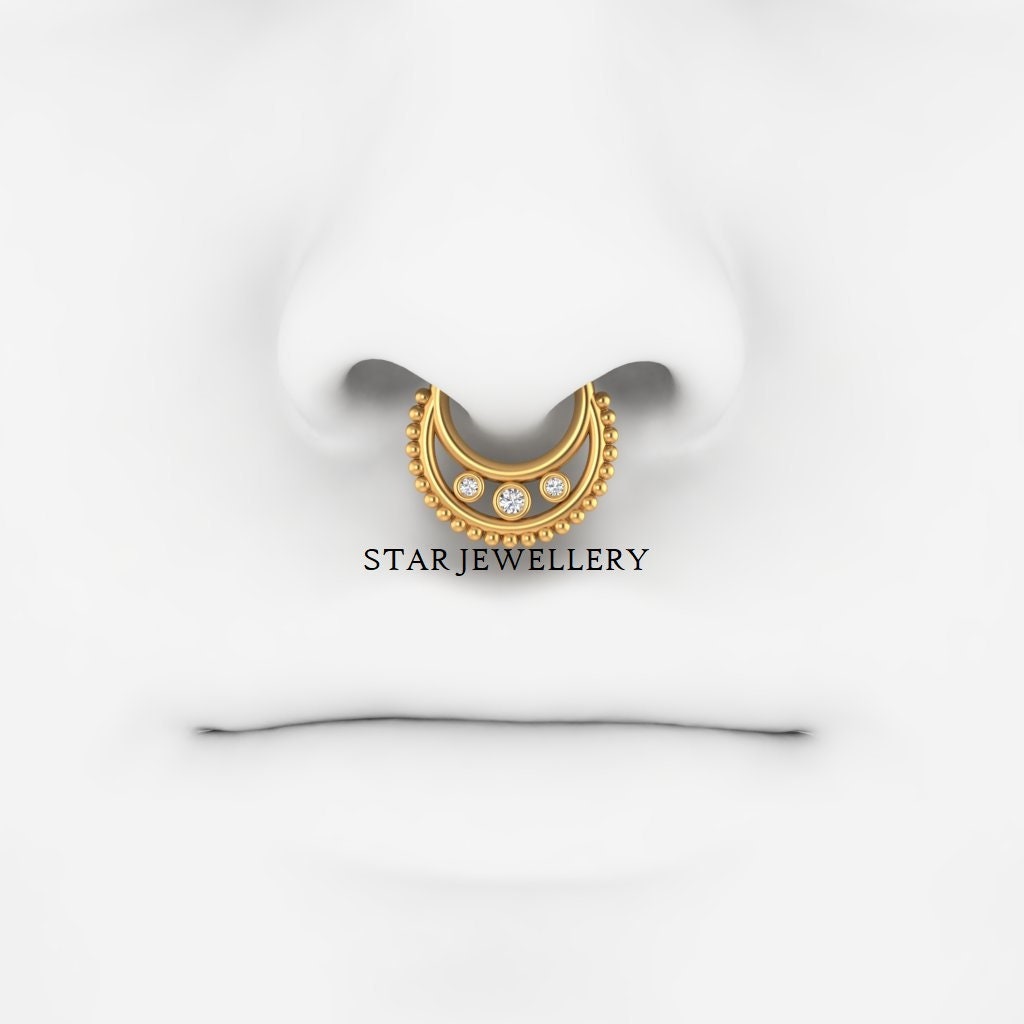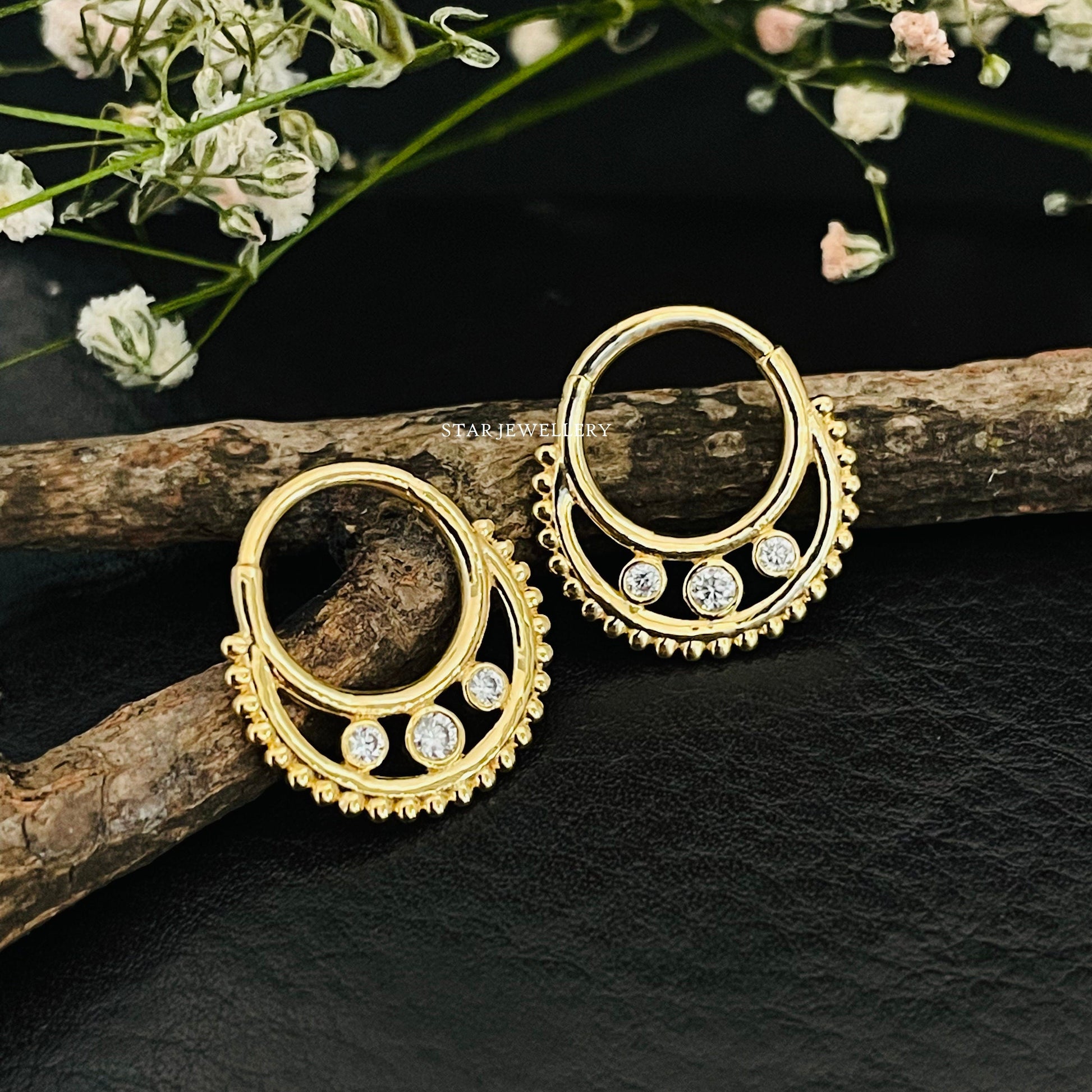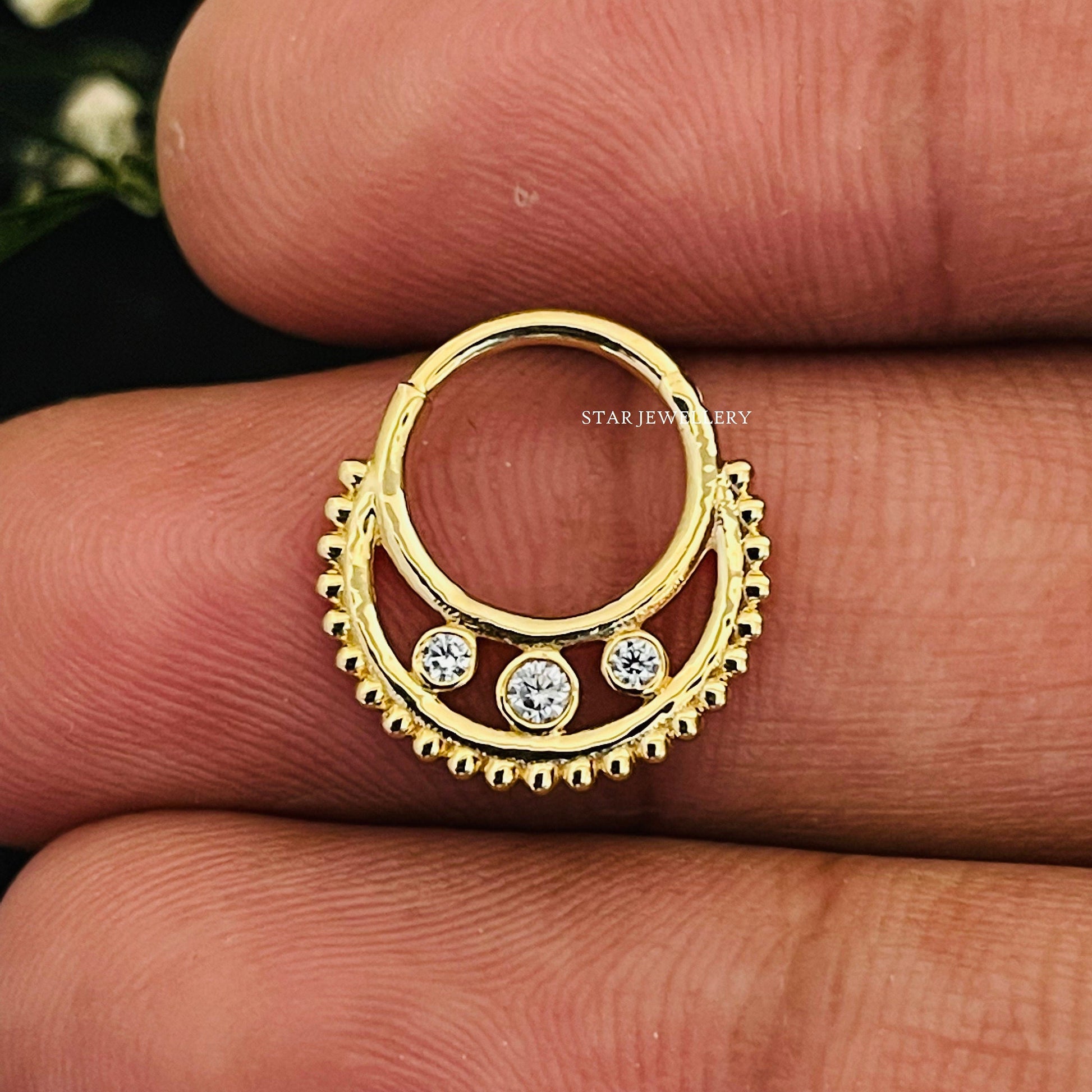 Bezel Set Natural Diamond Daith Piercing, Diamond Septum Nose Ring in 14K Gold, Clicker Daith Piercing, Septum Clicker, Unique Daith Clicker