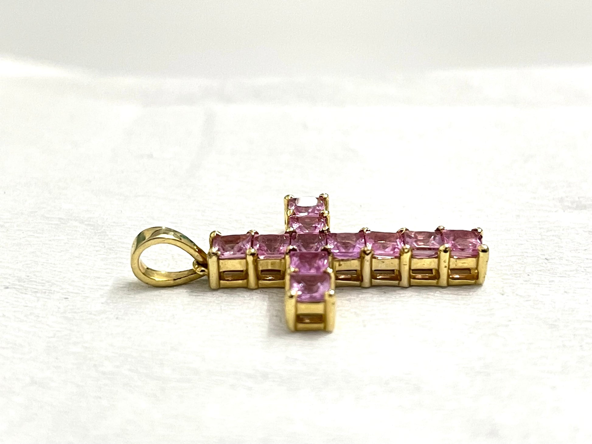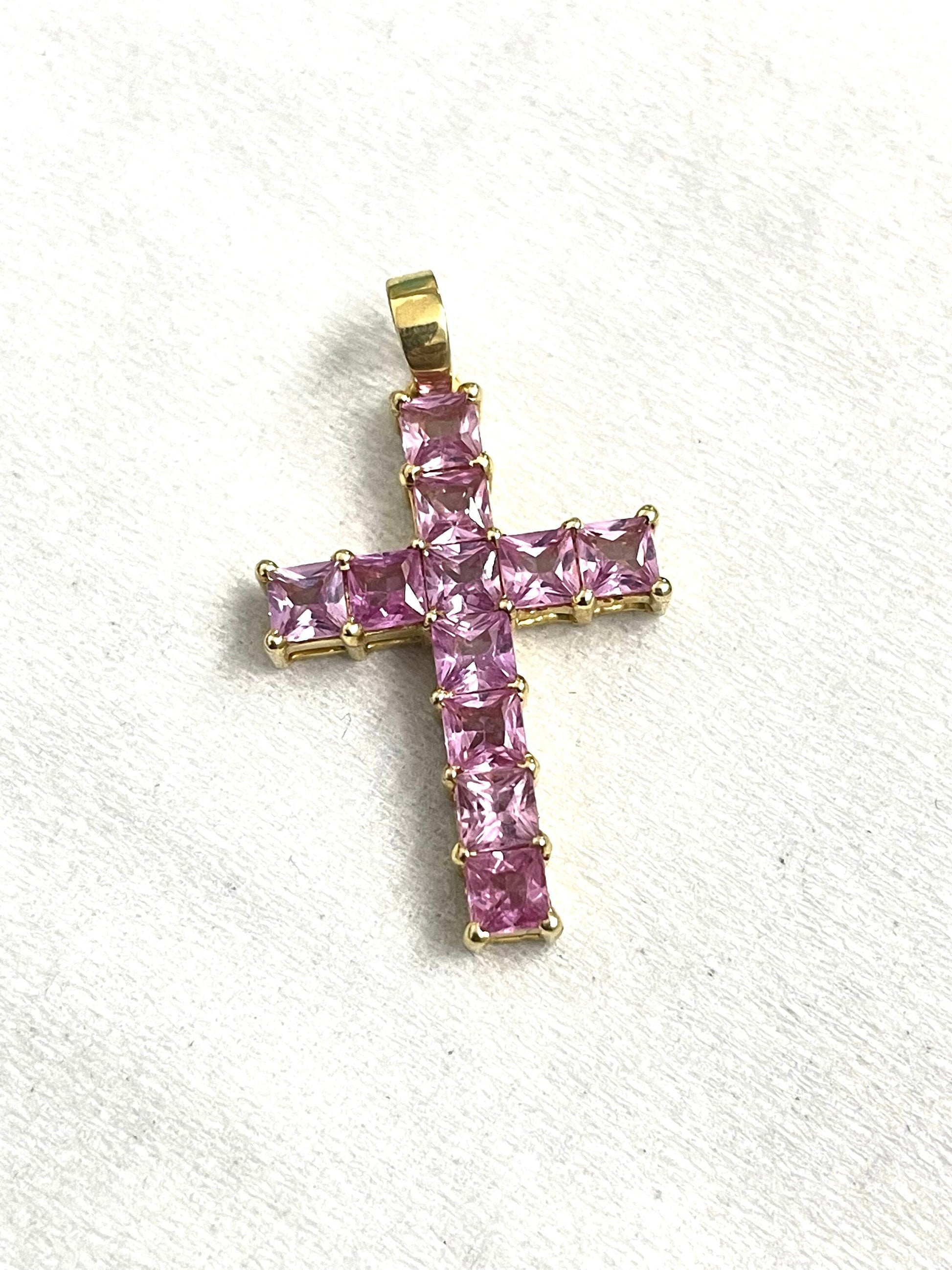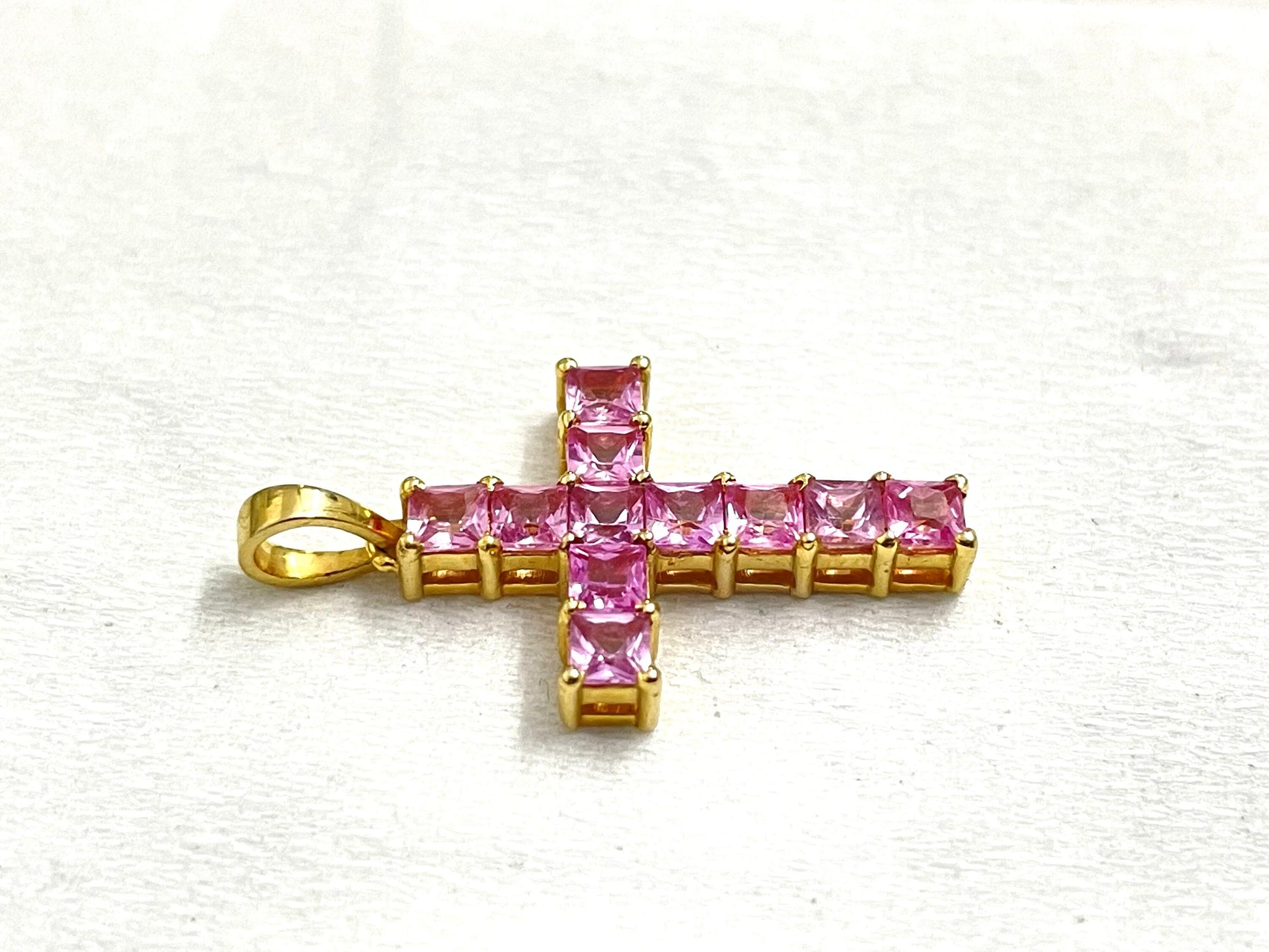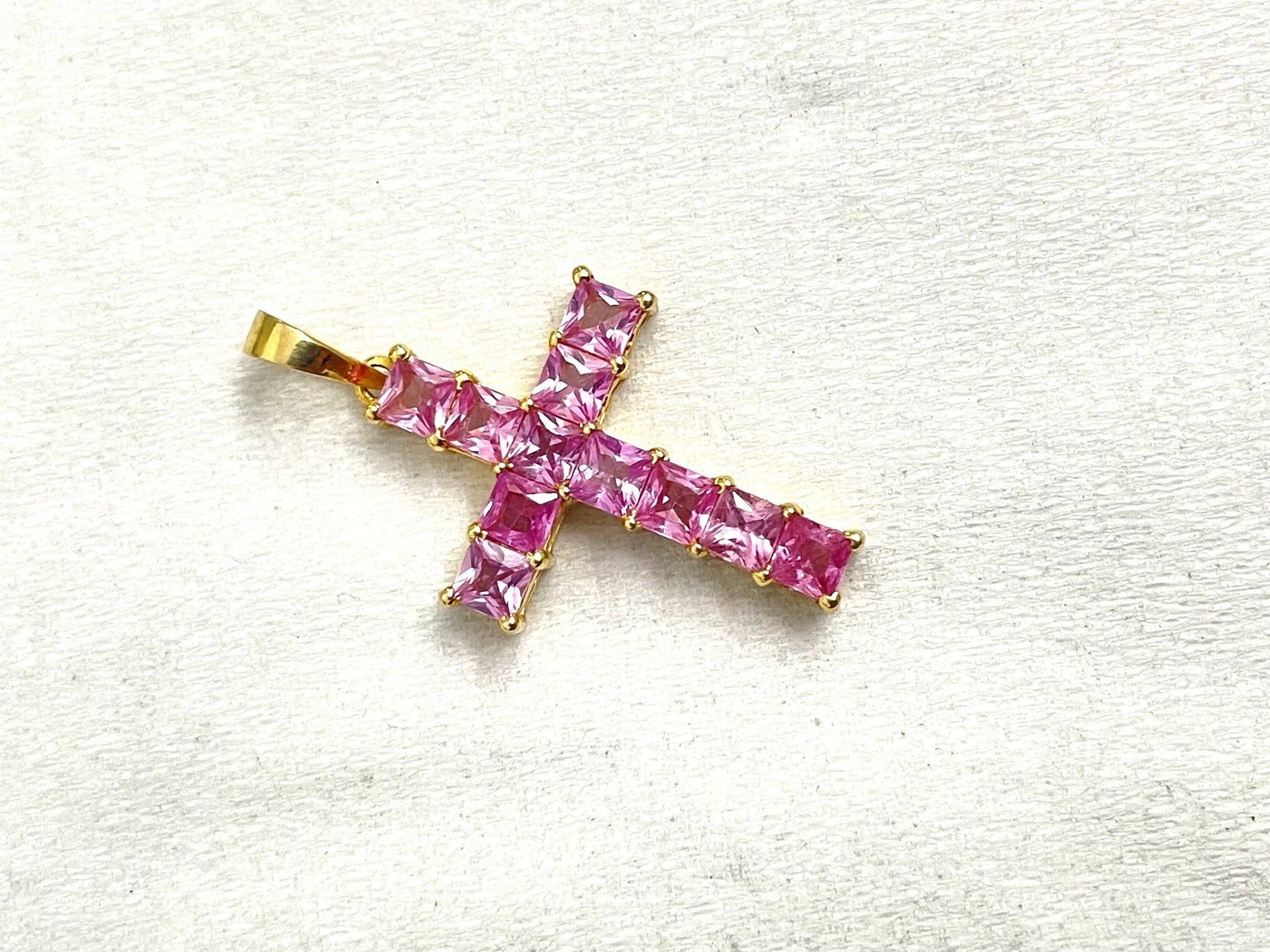 Natural Gemstone Cross Pendant, 14K Yellow Gold Moissanite Cross Necklace, Seven Small Moissanite Cross Pendant with 14K Gold, Mini Moissanite Cross, Stylish Cross Pendant Gift for Man, Gift for Woman, Pendant for Man, Pendant for Woman