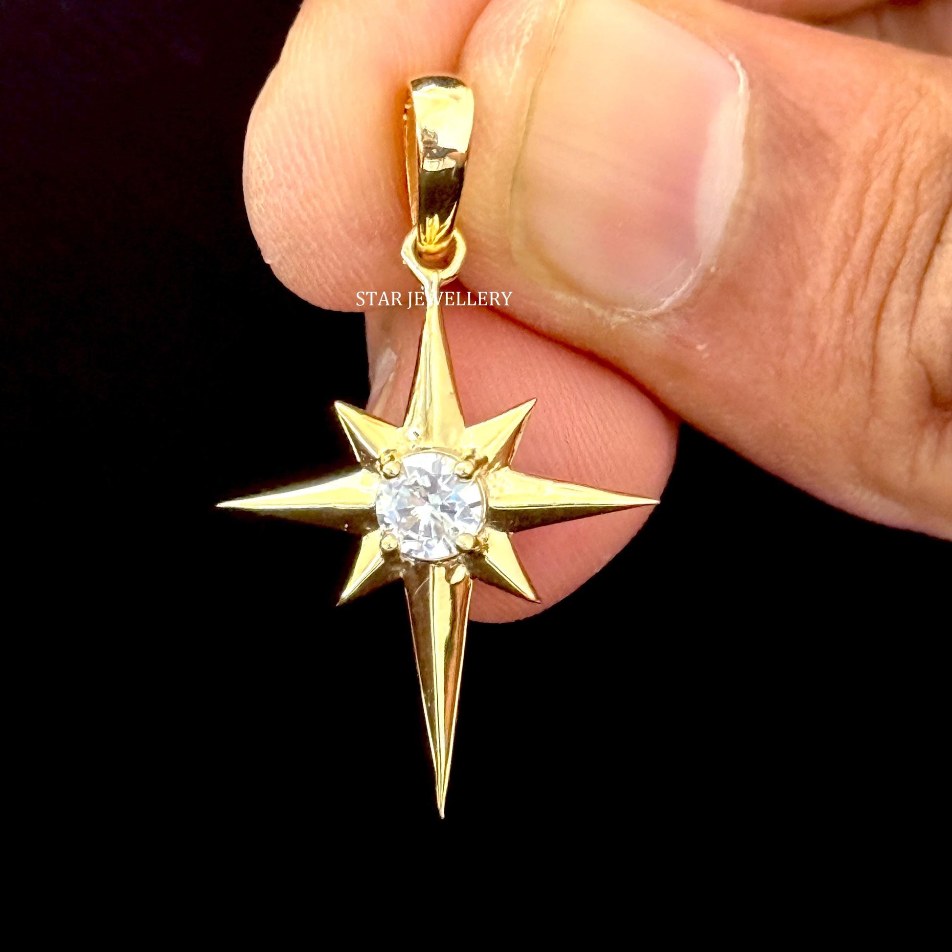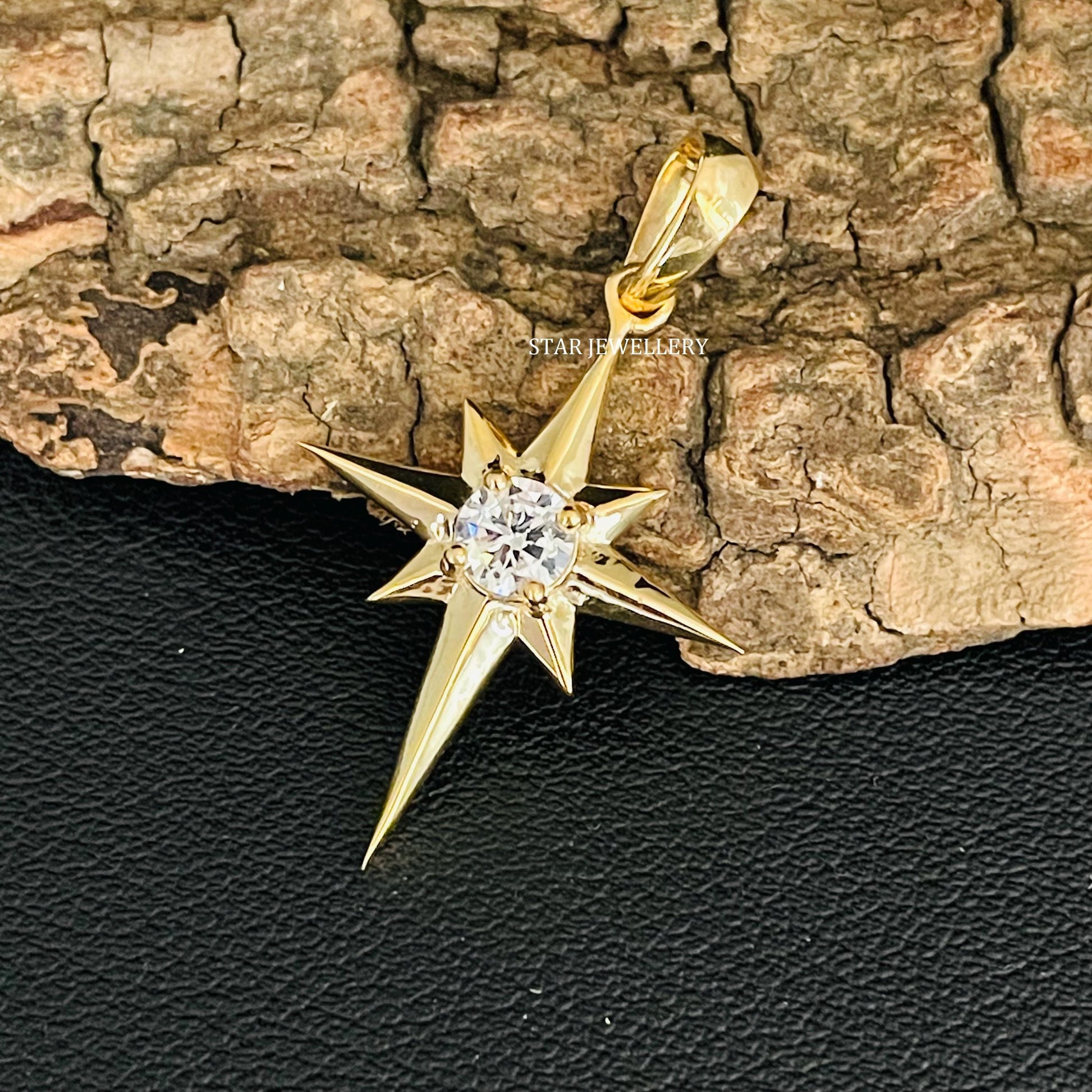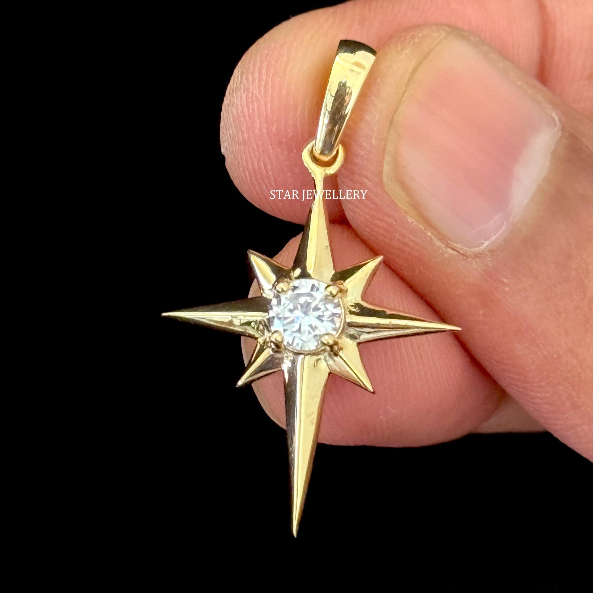 CVD Diamond North Star Pendant in 14K Solid Gold