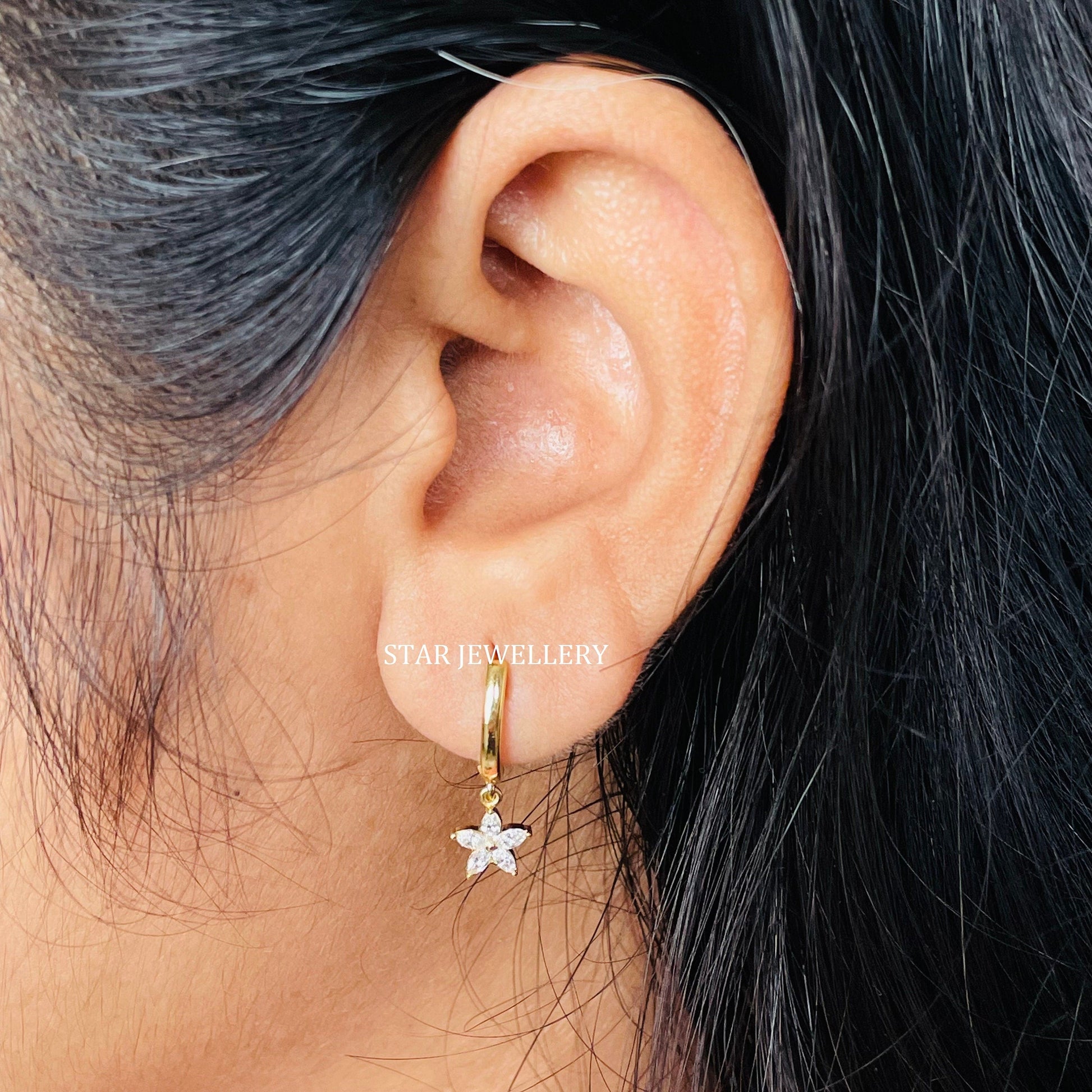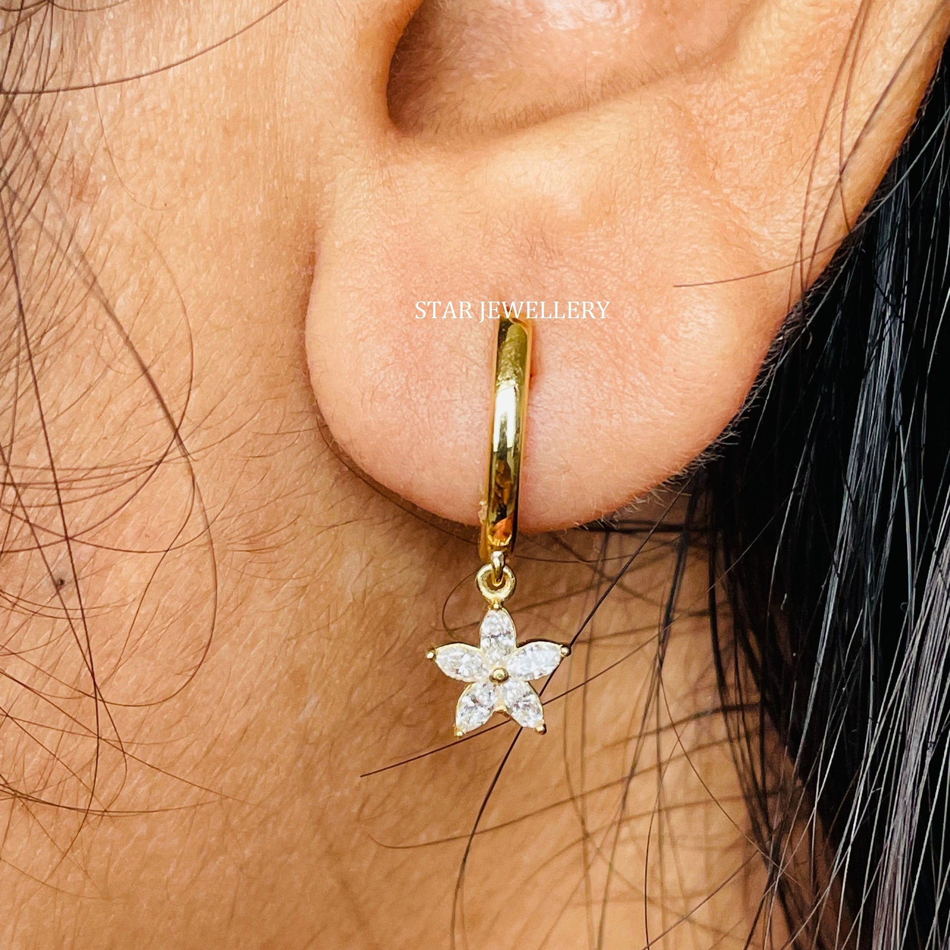 Dangle Drop Diamond Flower Huggie Hoop Earring