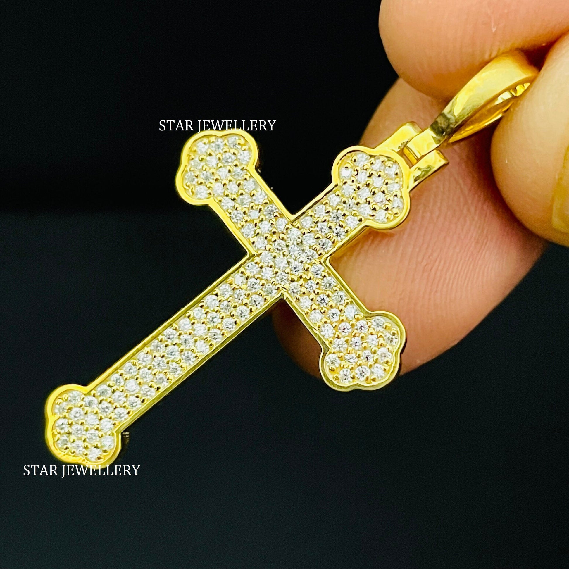 Delicate Natural Diamond Cross Pendant, 14K Solid Gold Diamond Cross Pendant for him, Unisex Diamond Cross Pendant without Chain, Gift for father