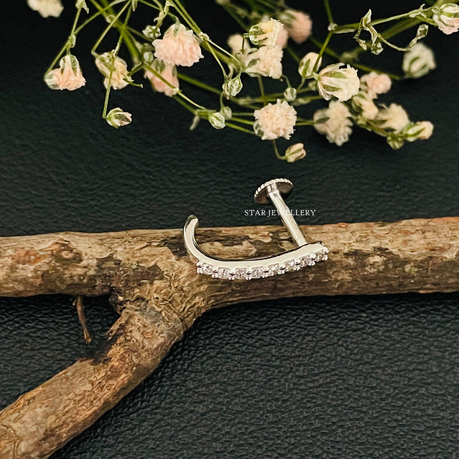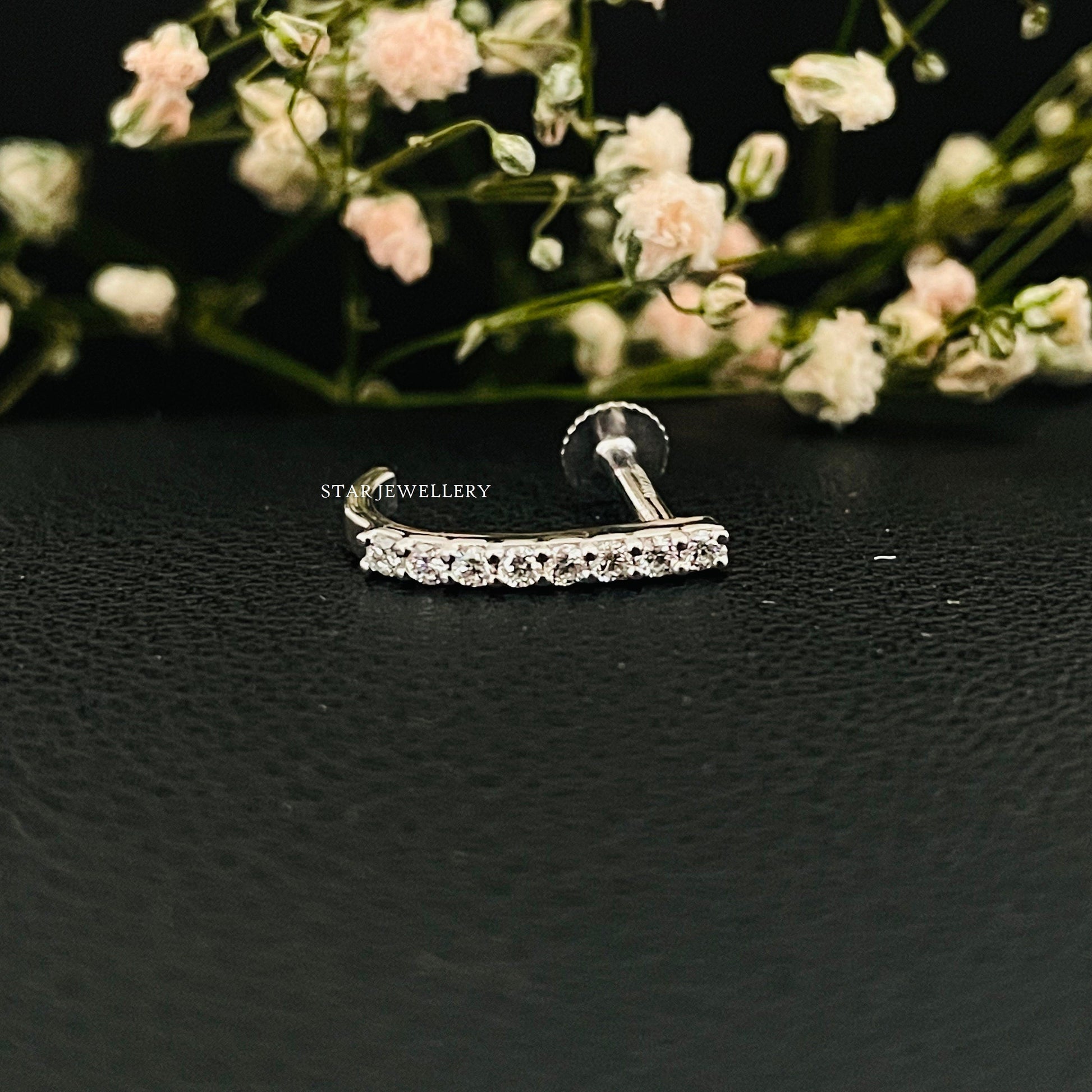 Diamond Bar Earrings, Bar Nose Pin, Half Hoop Earring, Single or Pair Bar Earring, Gift for Mom, Mother Day Sale