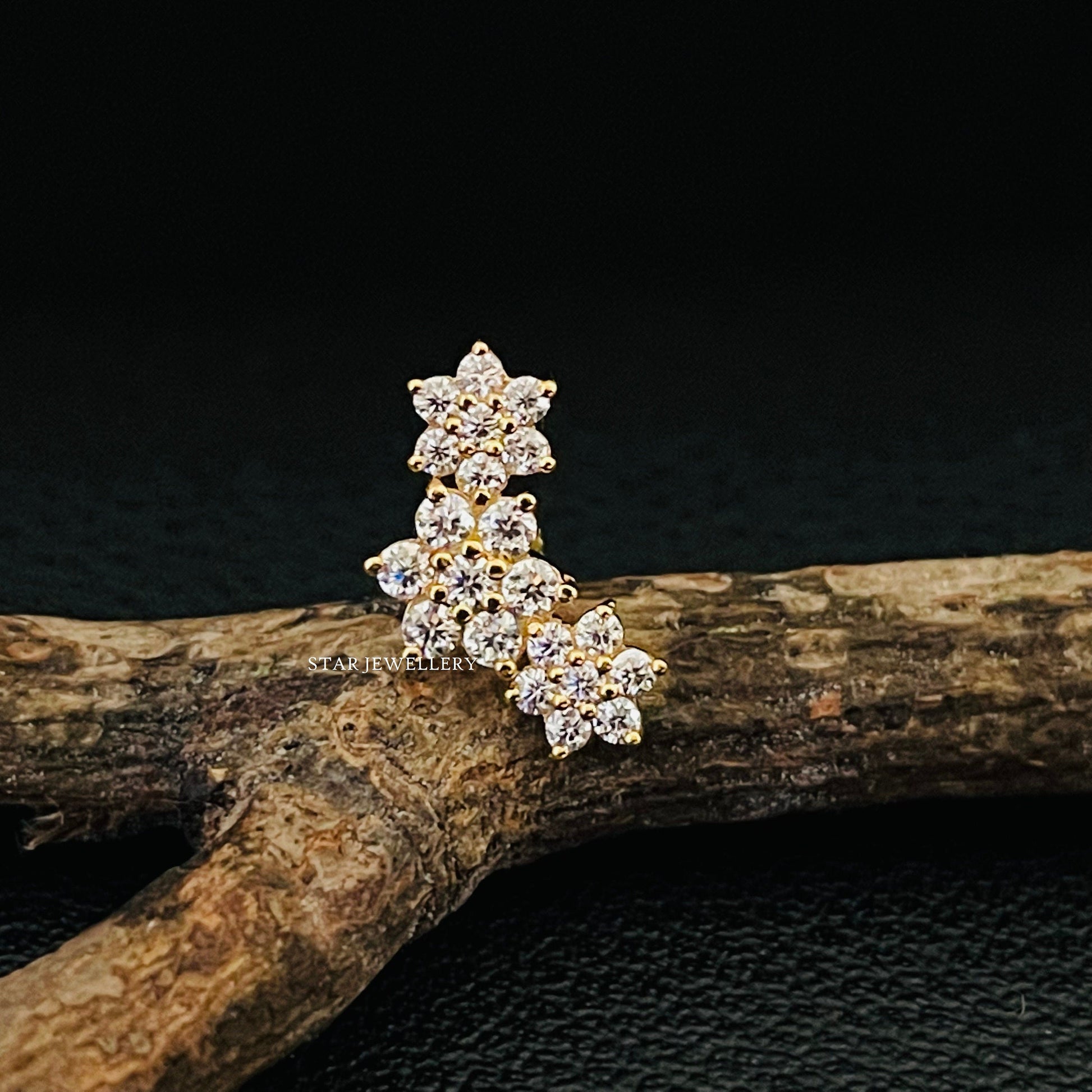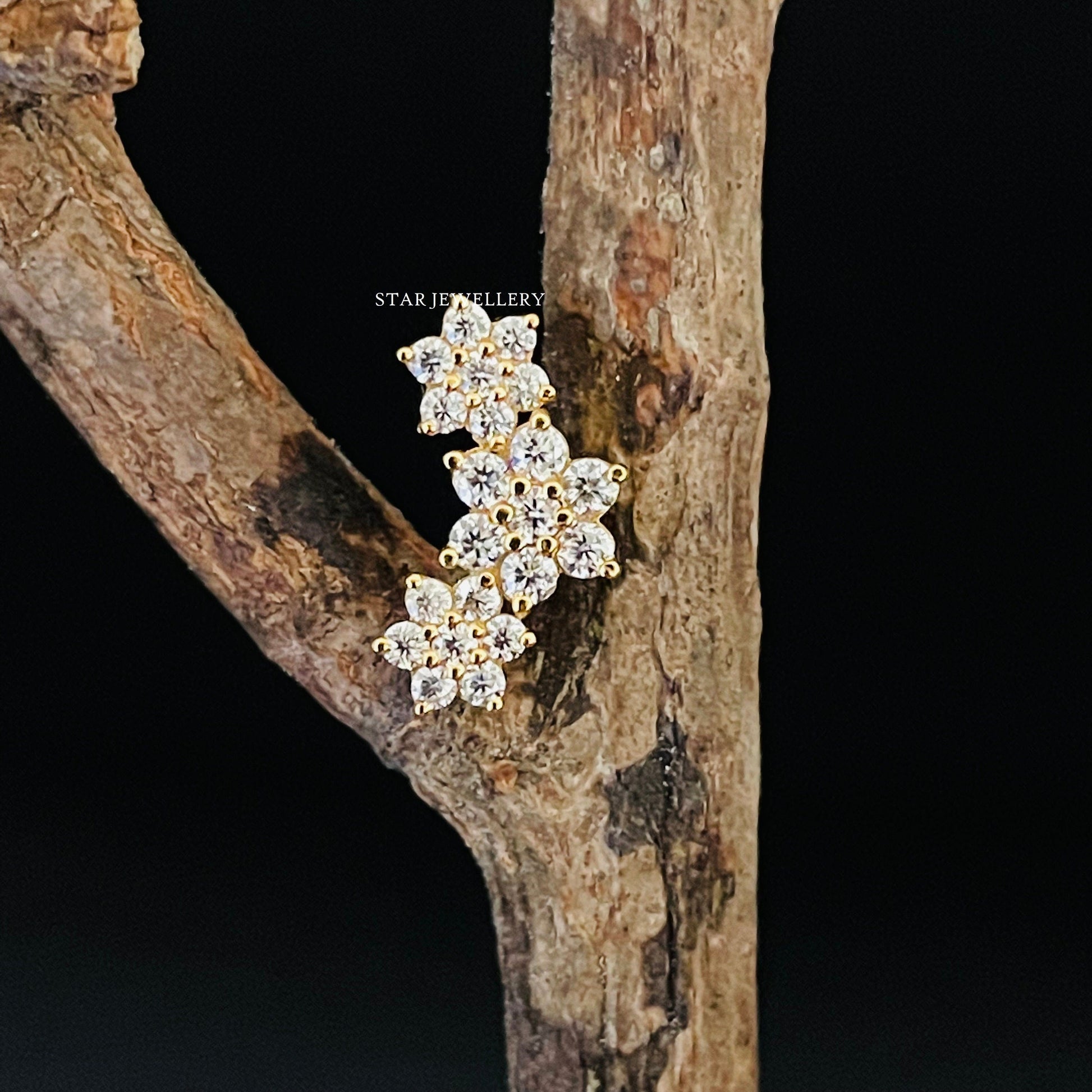 Diamond Ear Climber for Woman, Crawler Earrings for her , 14K Solid Gold Solid Gold Climber Earrings, 14K Solid Gold Diamond Flower Climber