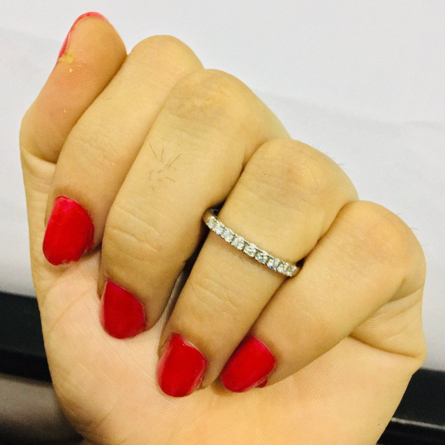 Nine Diamond Eternity Ring / Nine Diamond Eternity Wedding Band / 14k Solid Gold Wedding Band / Prong Set Diamond Eternity Band / Stacking Ring