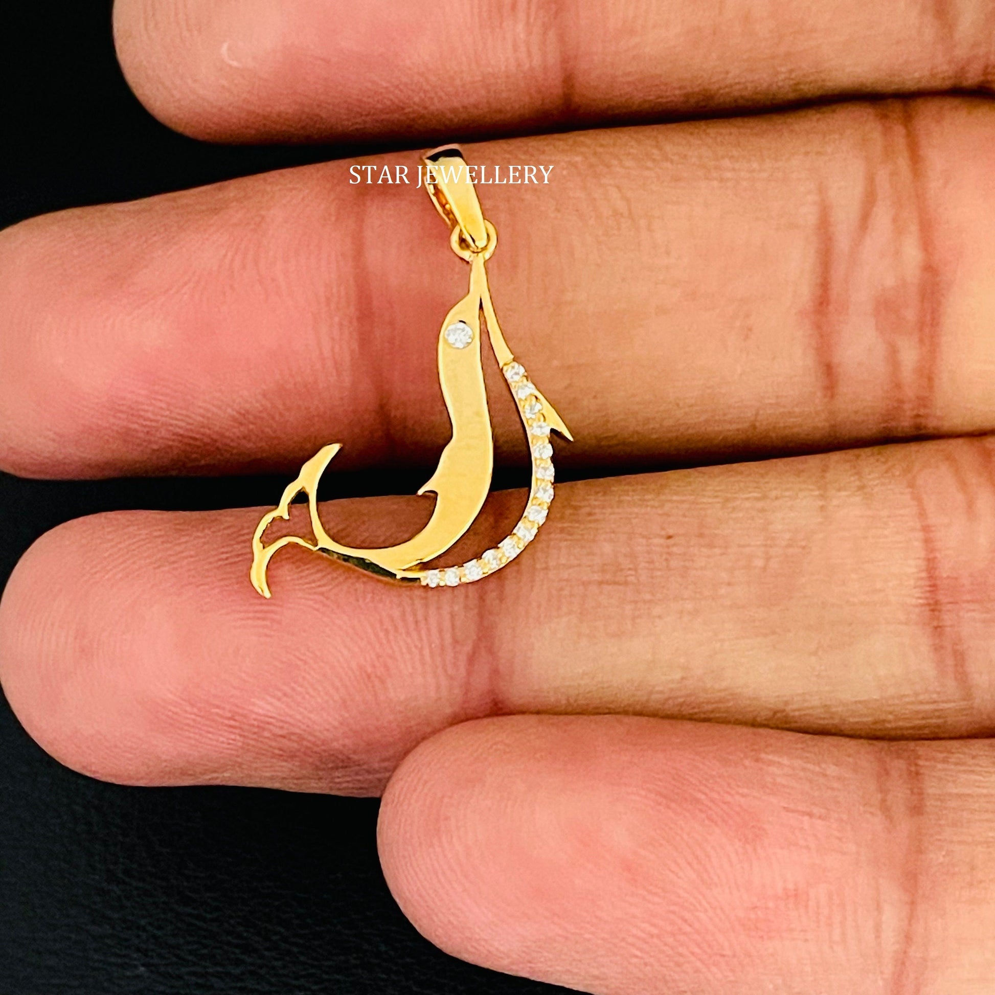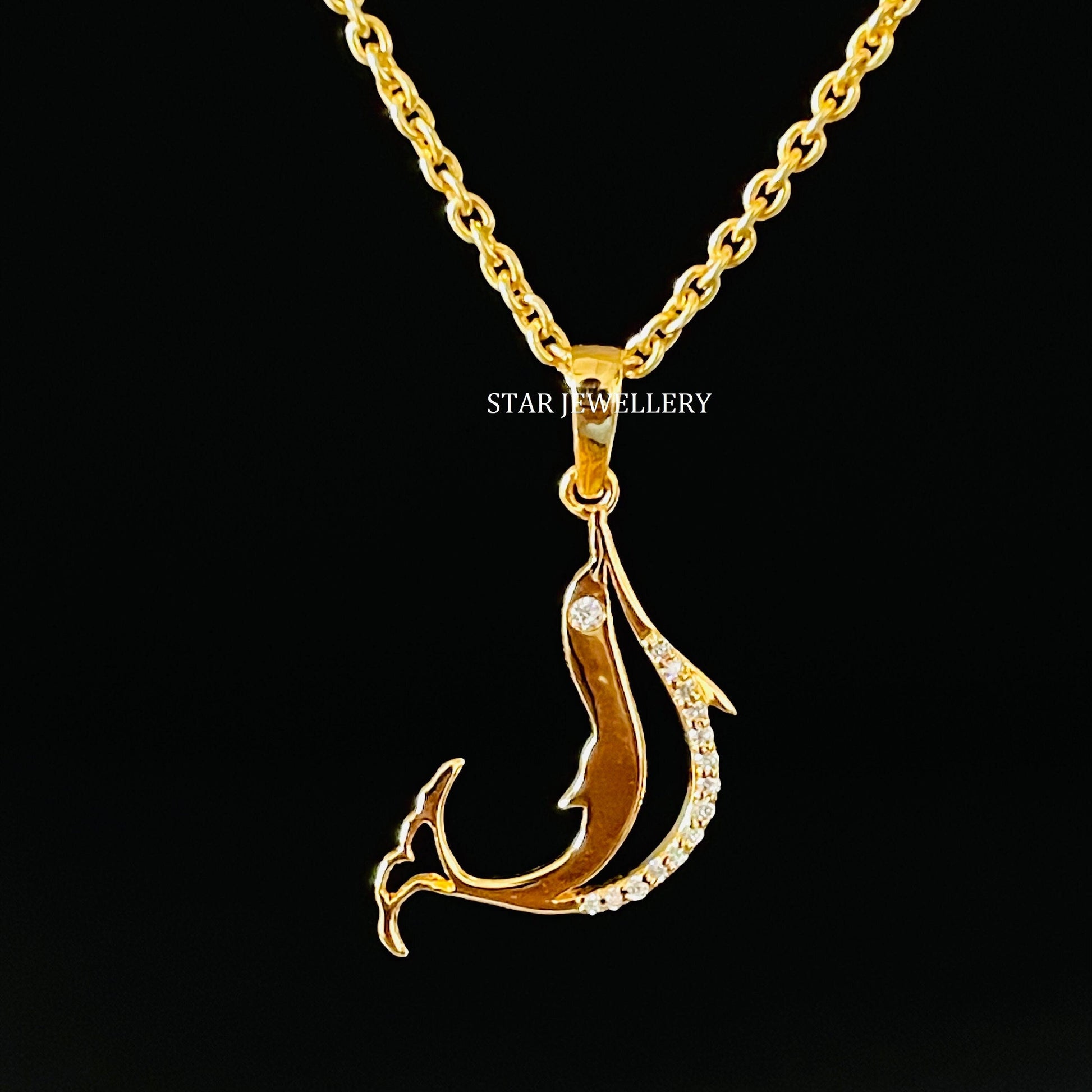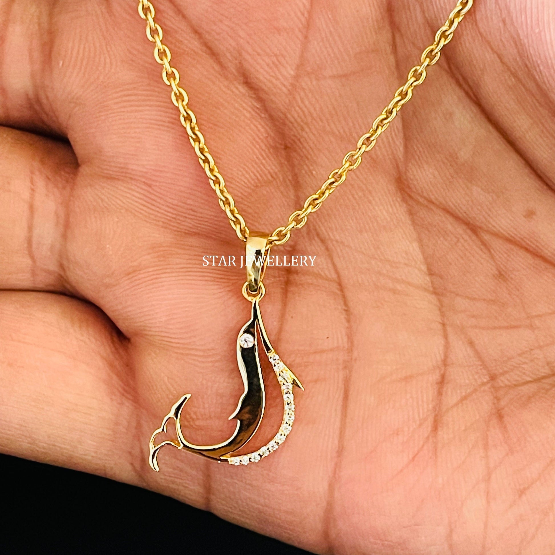 Diamond Fish Pendant, Fish Charm, Gold Fish Pendant, Fish Diamond Necklace, Diamond Pendant for Men