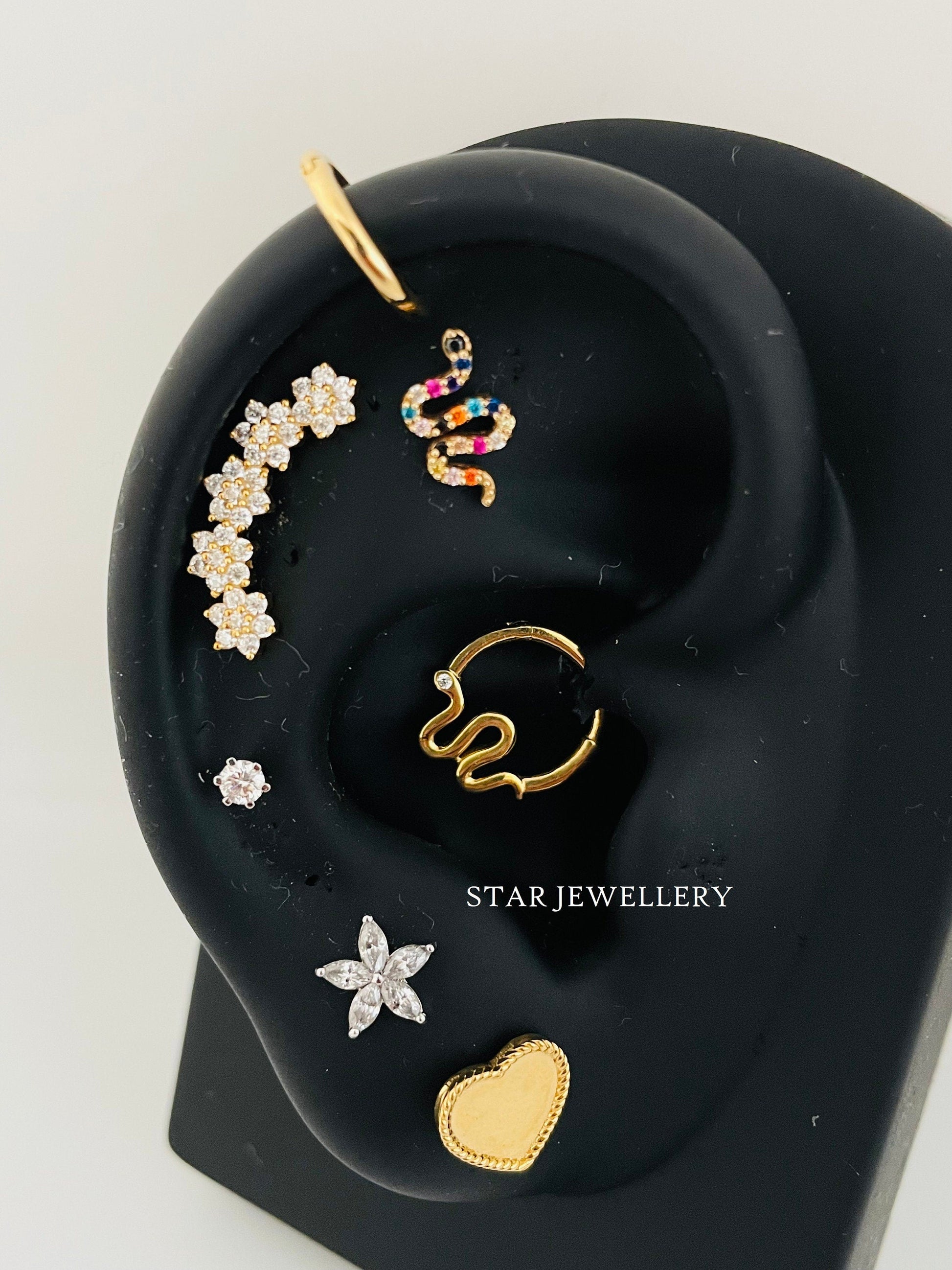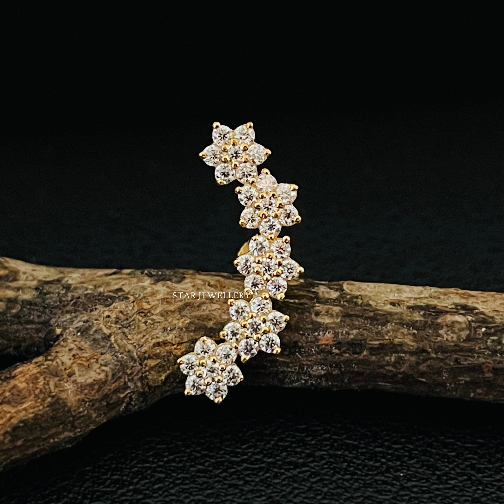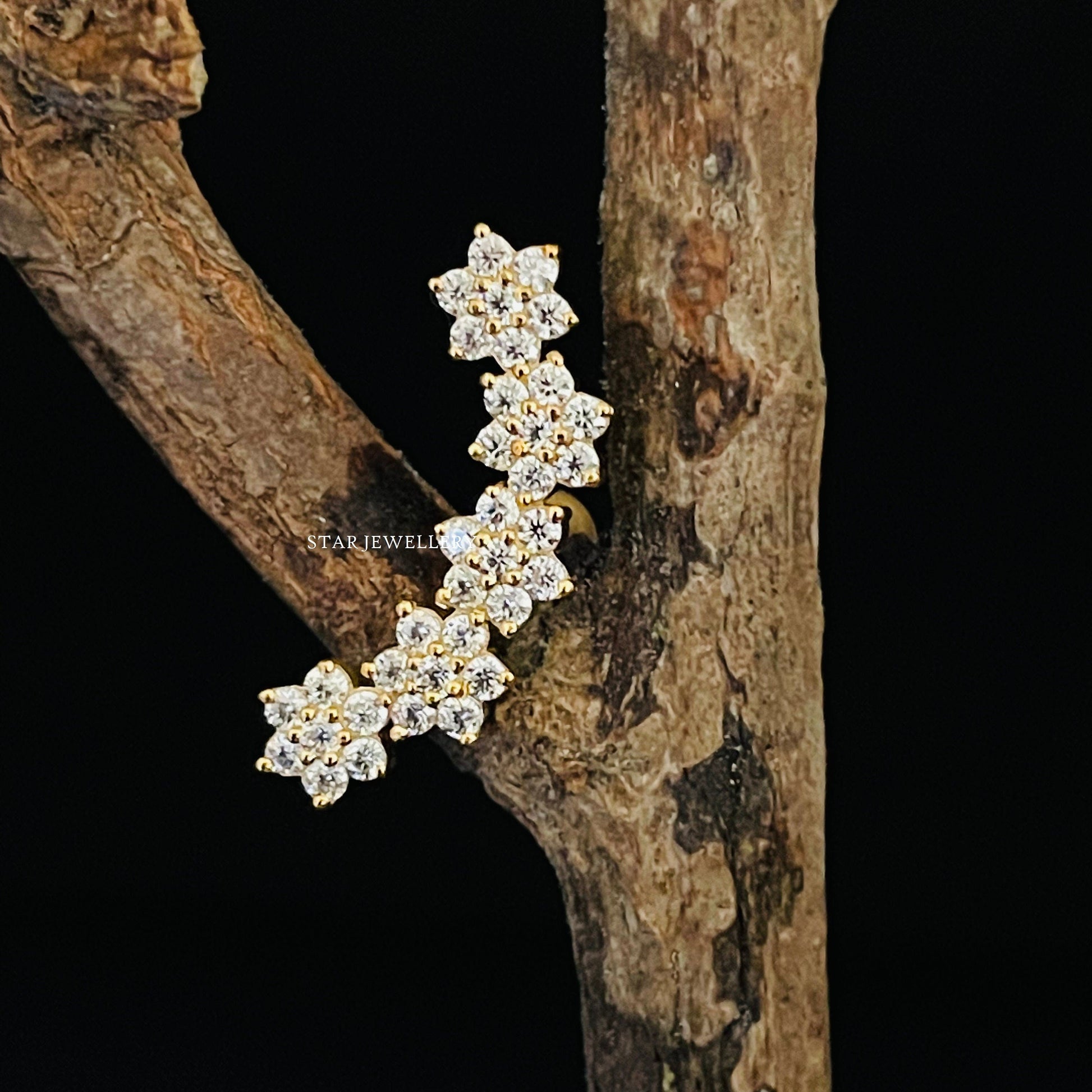 Diamond Flower Ear Climber, 14K Solid Gold Curved Ear Crawler For Women, Diamond Flower, Crawler Earrings, Solid Gold Climber Earrings