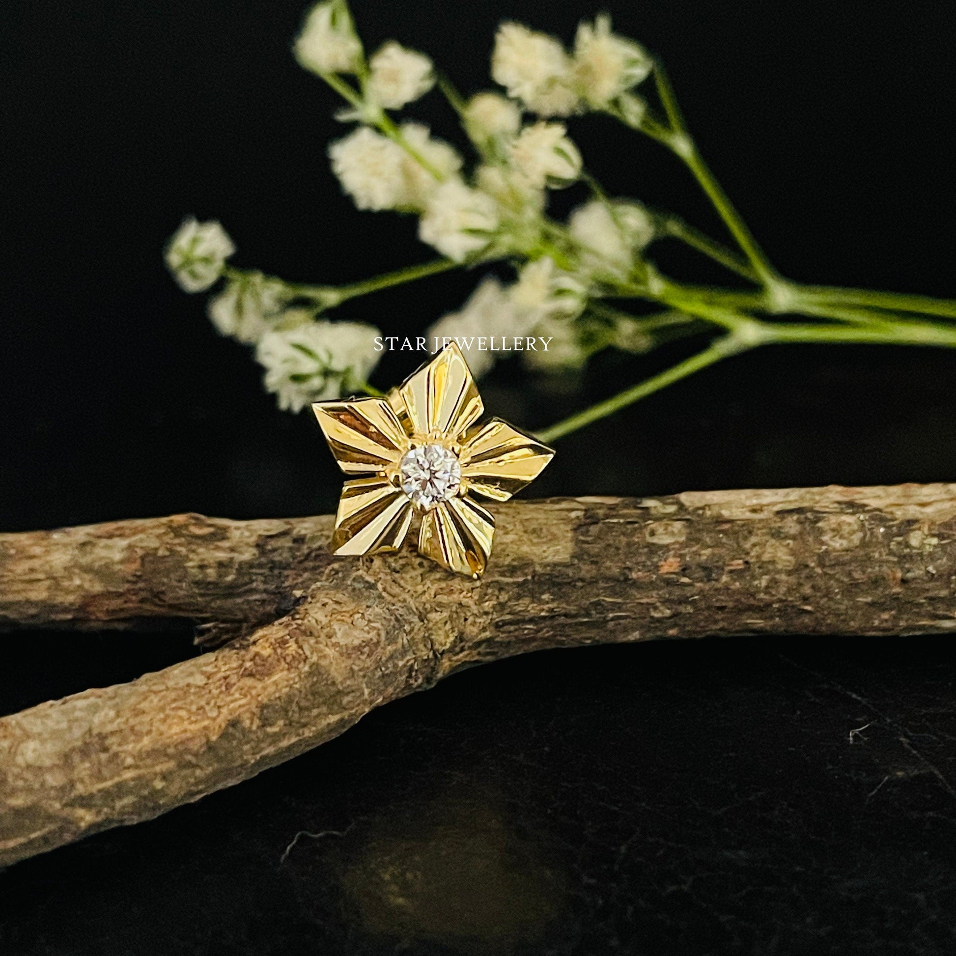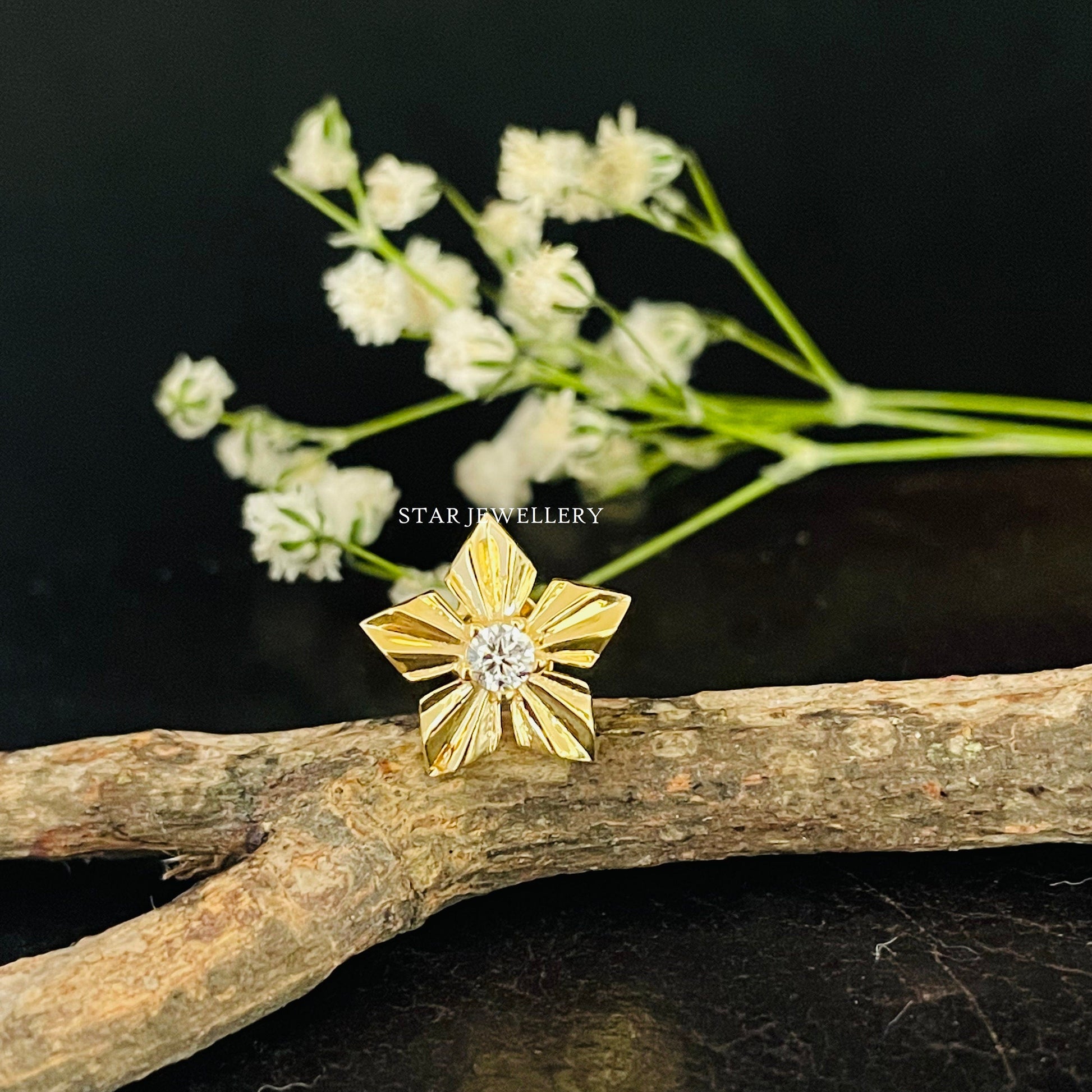 Diamond Lotus Studs for Ear Lobe, Conch, Tragus, Helix Tragus, Cartilage, 14K Solid Gold Diamond Lotus Stud Earring, Lotus Stud Ear Piercing