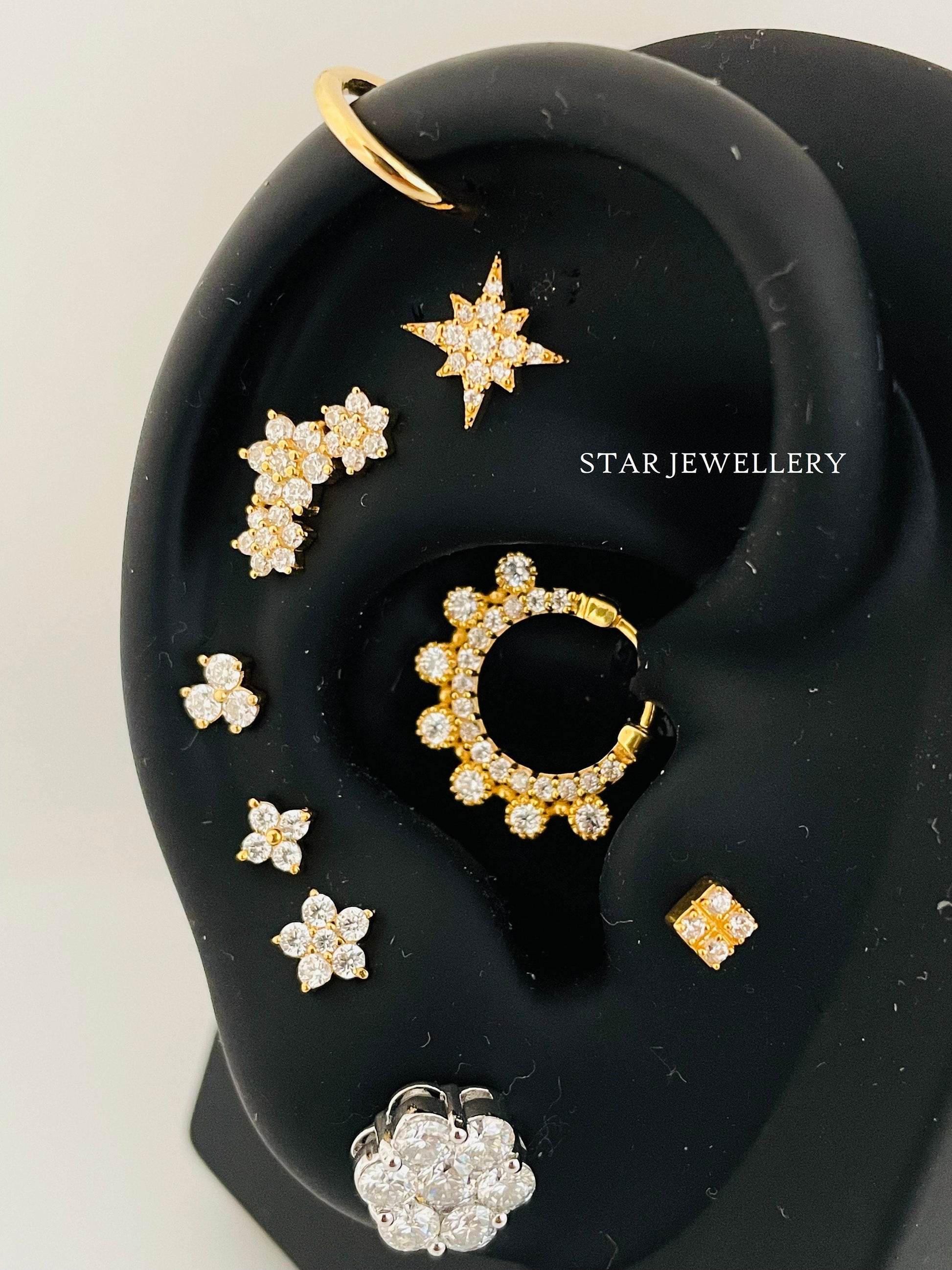 Diamond North STAR Stud Earrings, Diamond North Star Earrings, Solid Gold Starburst Helix Earring, Starburst Earring, Celestial Earrings, Anti Tragus North Star Piercing, Lobe, Conch, Piercing Jewelry, Body Jewelry