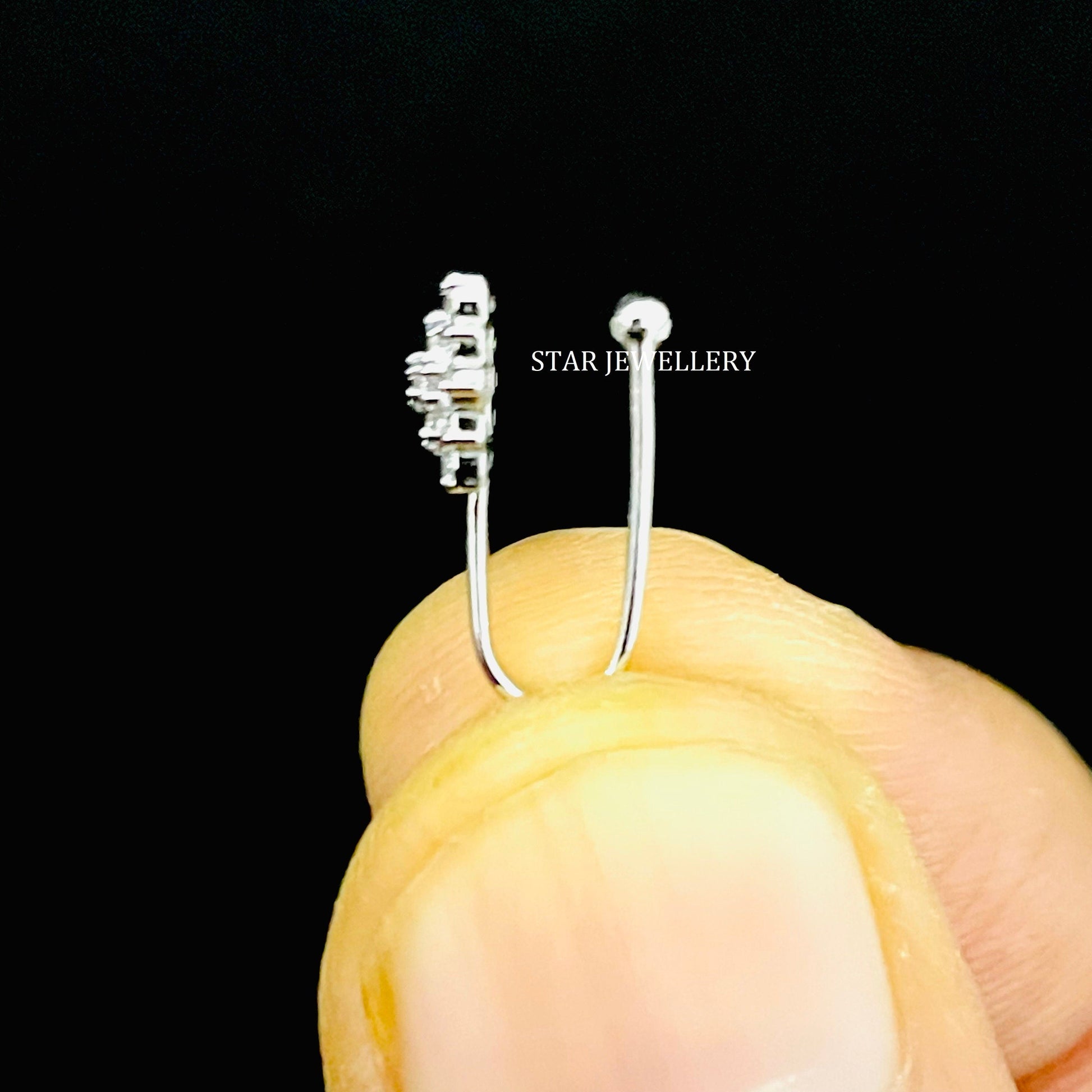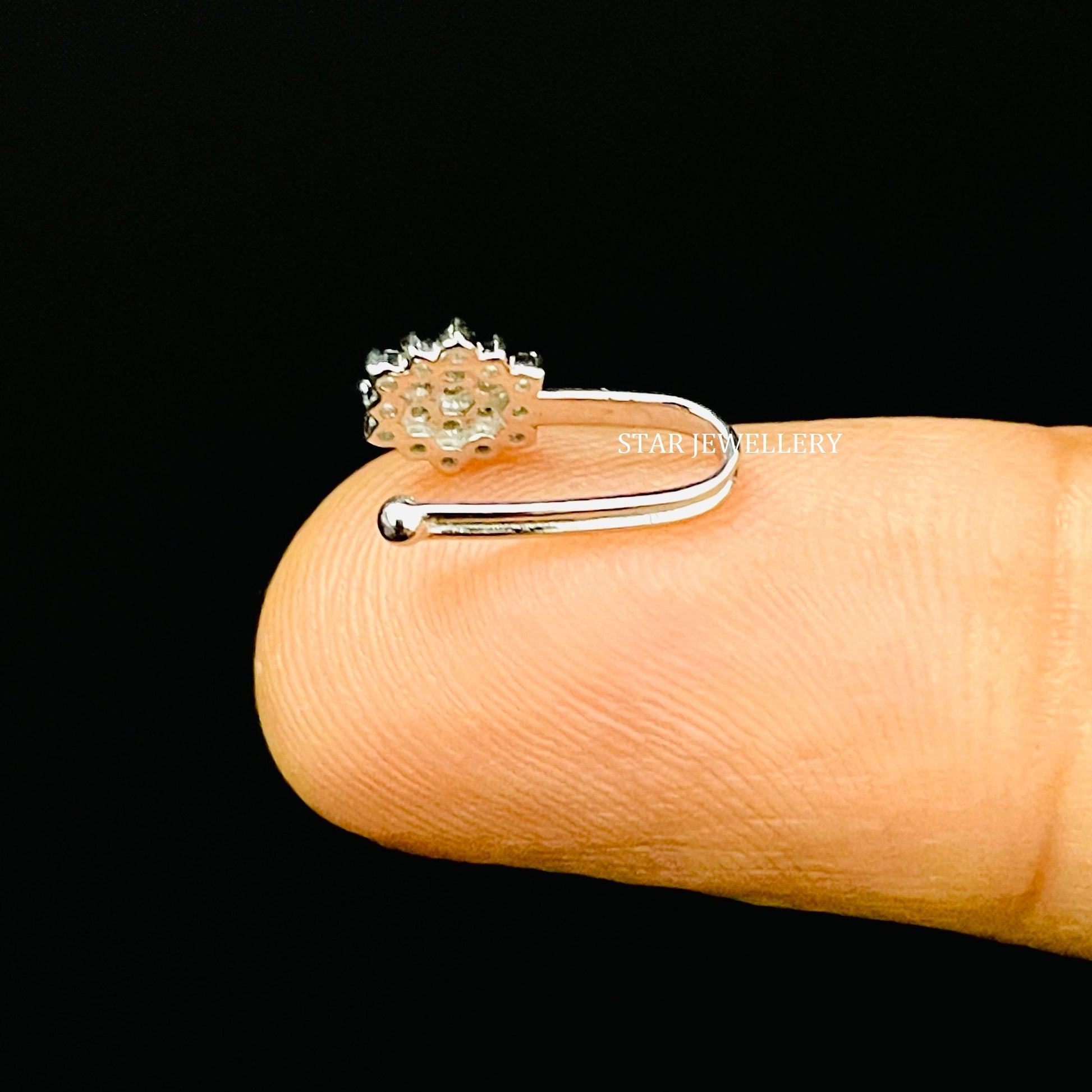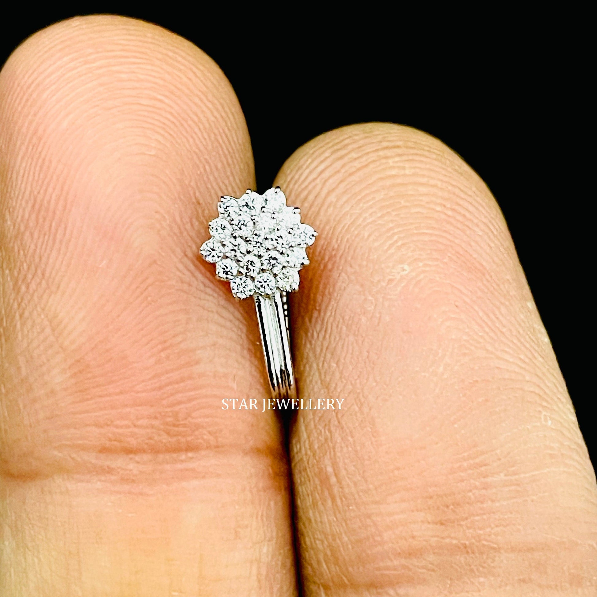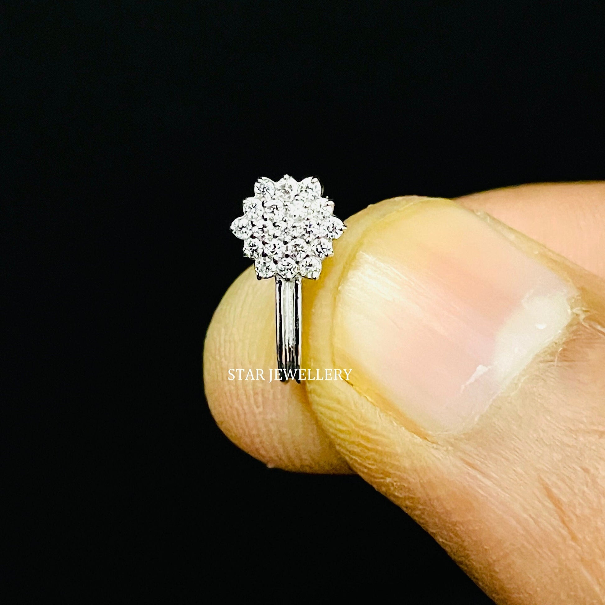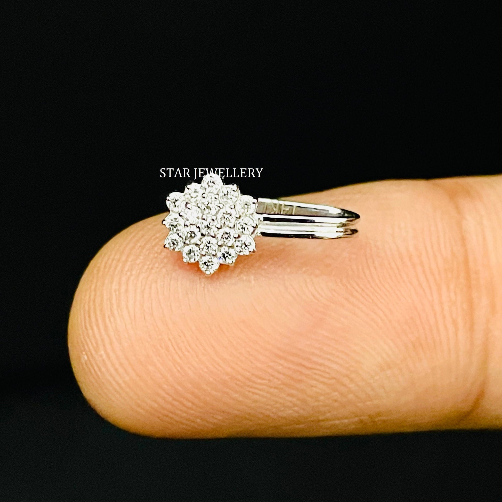 14K Solid Gold Diamond Nose Clip on No Piercing Ear Cuff, Diamond Cluster Nose Clip on, No Piercing Diamond Flower Nose Clip on, Piercing Jewelry
