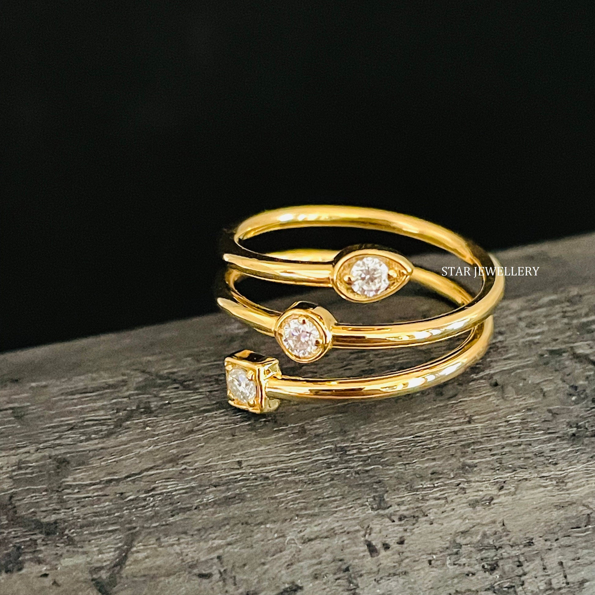 Diamond Open Wrap Around Ring, Diamond Swirl Ring, Coil Gold Ring, Solid Gold Wrap Around Diamond Coil Ring for her, Graduation Gift