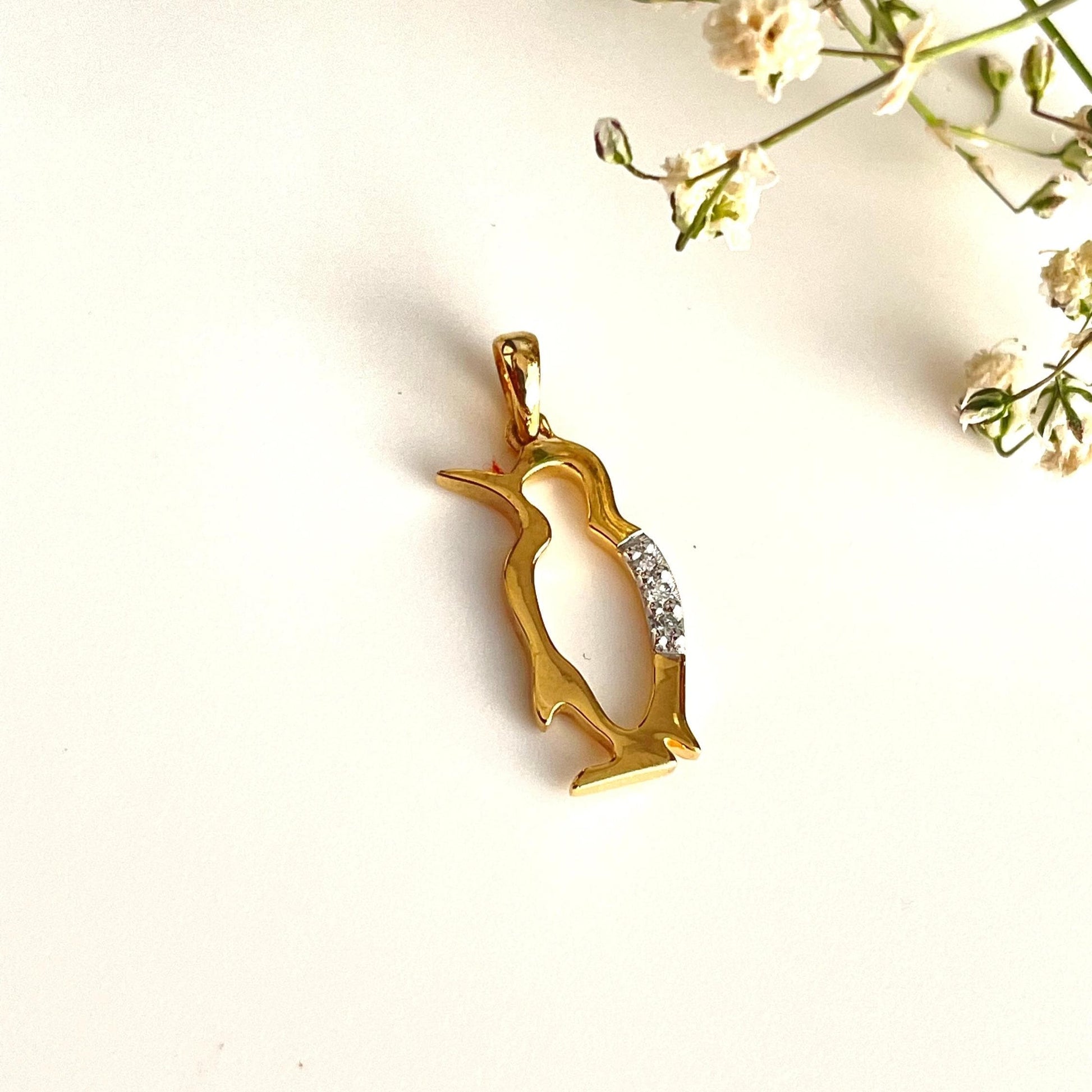 Diamond Penguin Pendant, Penguin Charm, Gold Penguin Pendant, Penguin Diamond Necklace, Diamond Pendant for Men