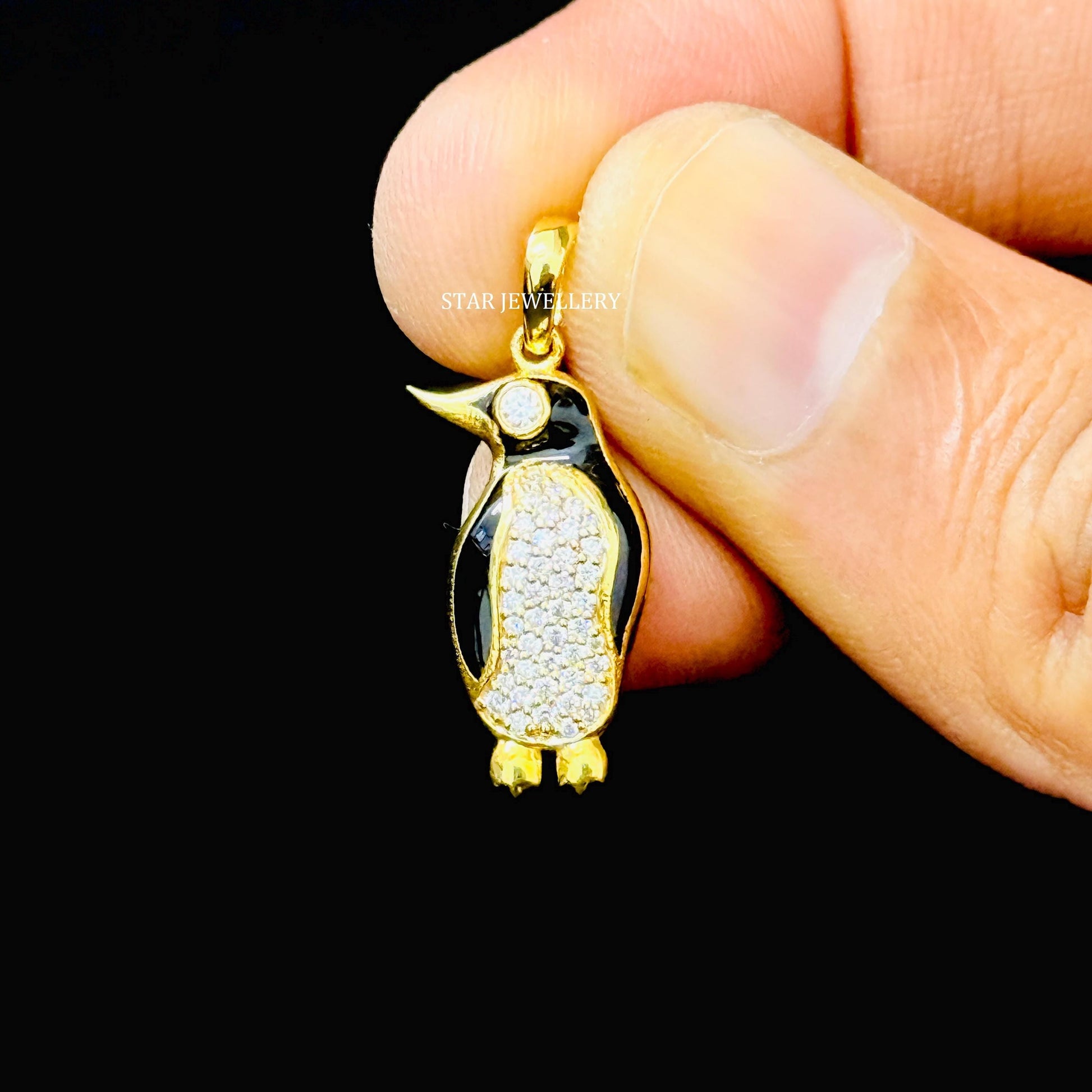 Diamond Penguin Pendant, Penguin Charm, Solid Gold Penguin Pendant, Penguin Diamond Necklace, Diamond Pendant for Men, Gift for Mom
