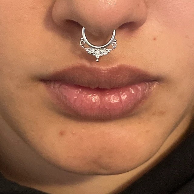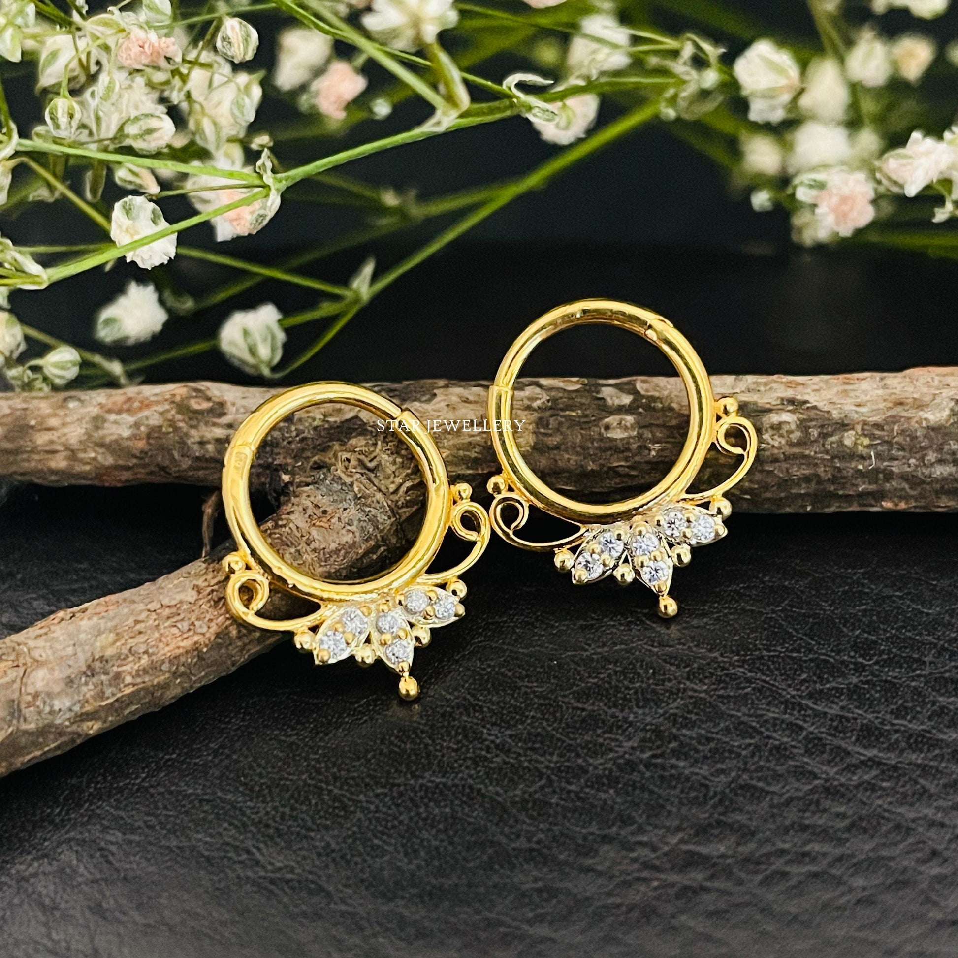 Diamond Septum Clicker, 14K Solid Gold Marquise Diamond Daith Piercing, Solid Gold Daith Jewelry, Diamond Helix Piercing, Septum Nose Ring