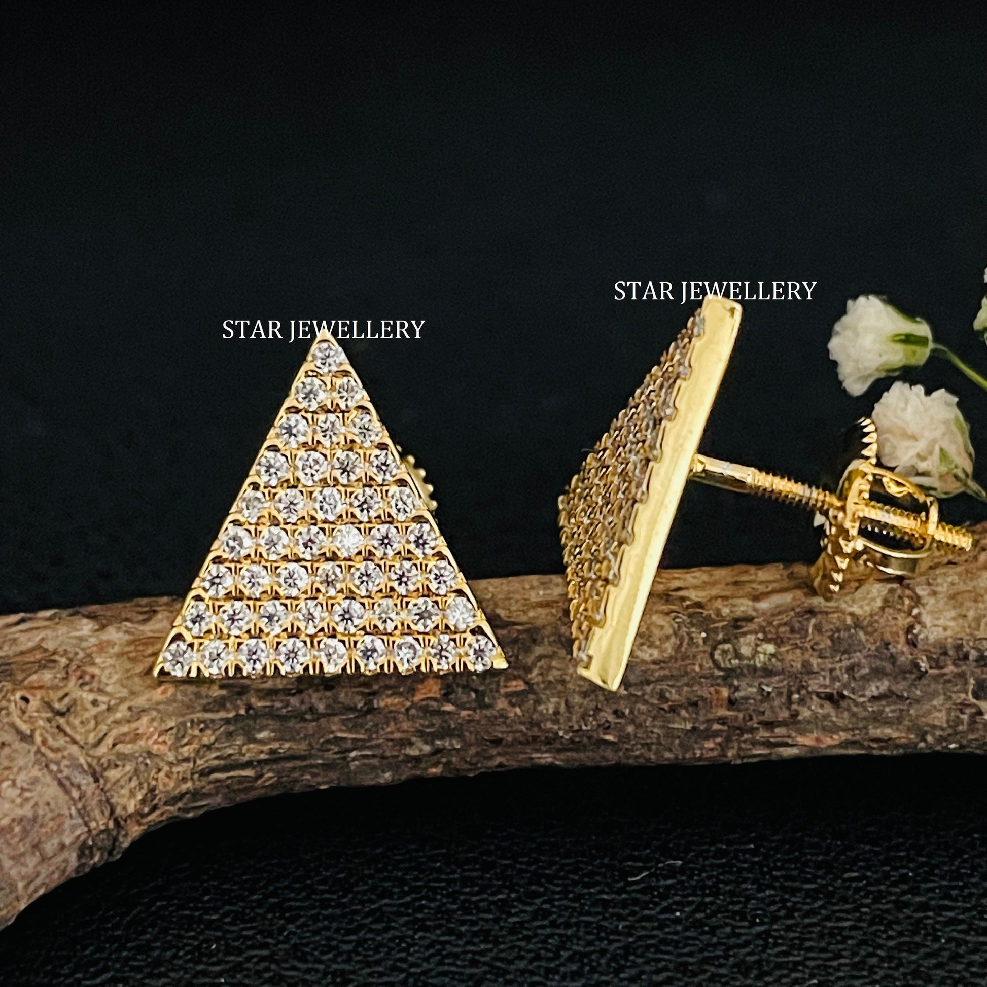 Diamond Triangle Earring, 14K Solid Gold Pave Set Diamond Triangle Earring, Graduation Gift Earring for her, White Gold Bridal Earring, Solid Gold Geometric Earrings.
